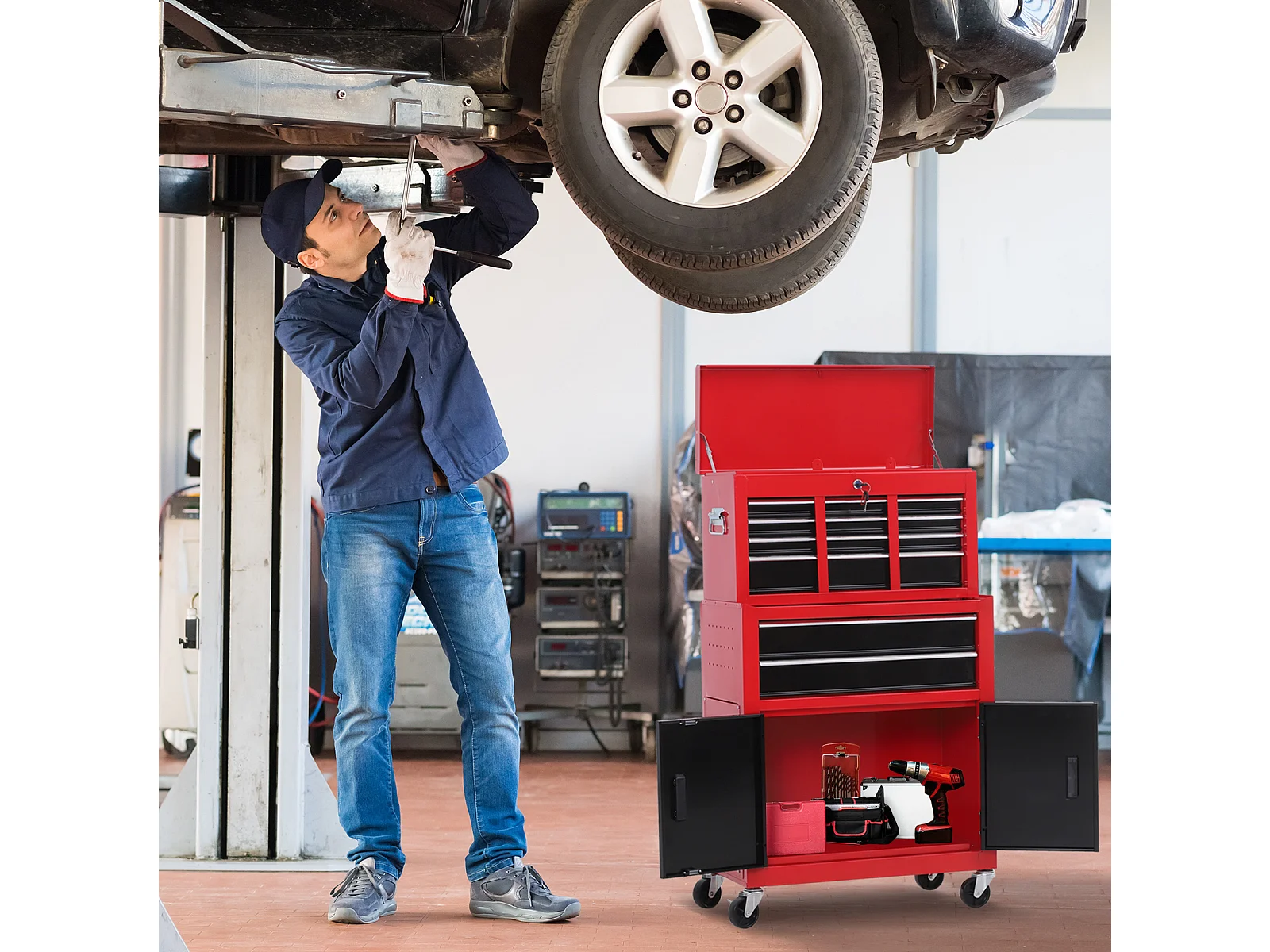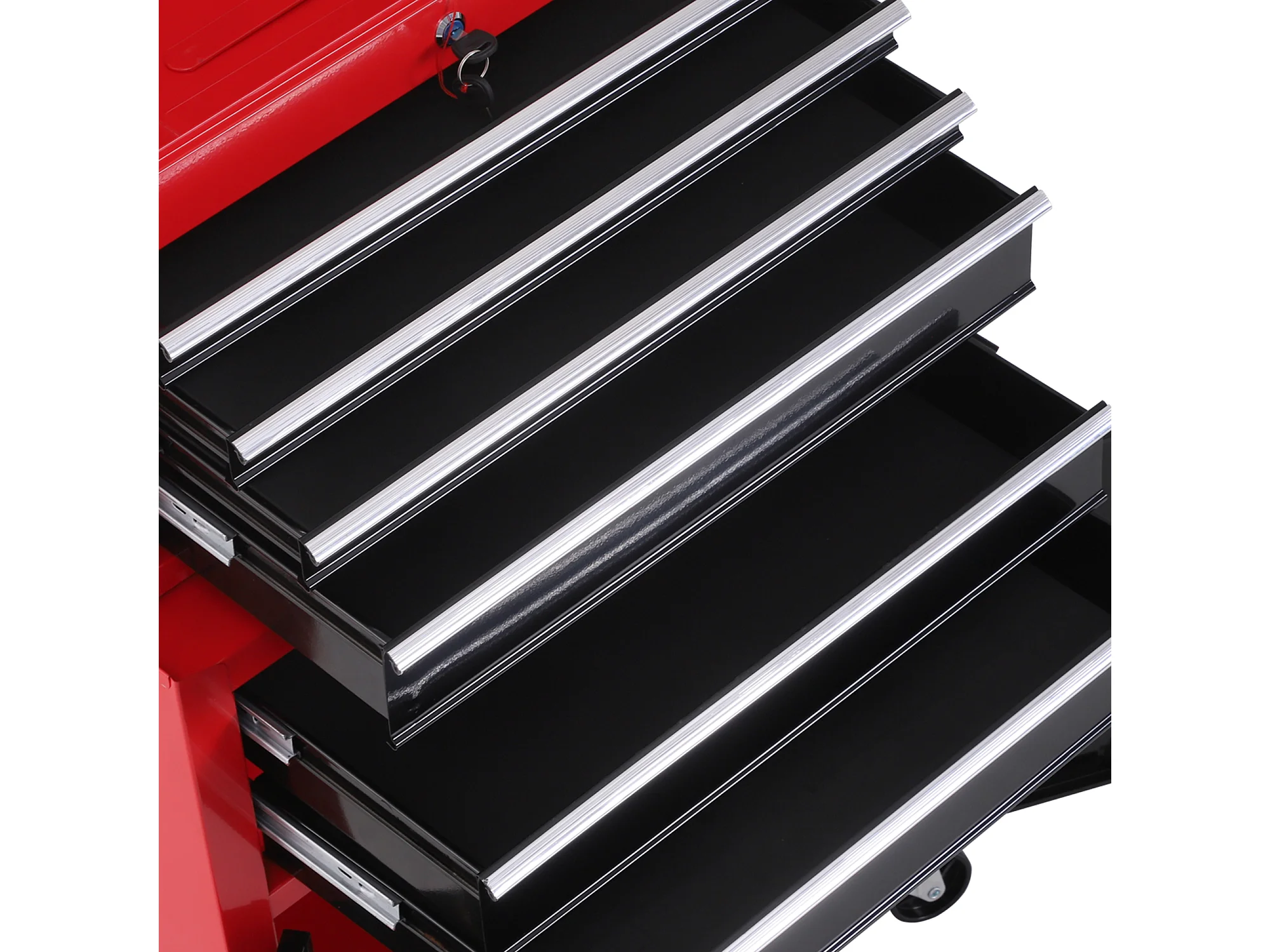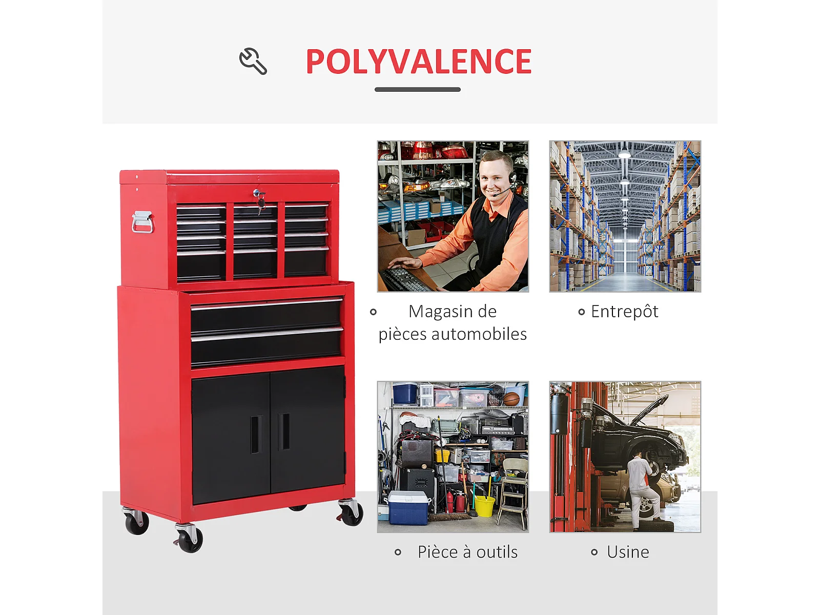 Servante d'atelier - caisse à outil 6 tiroirs + coffre amovible - chariot d'atelier tôle métal rouge noir