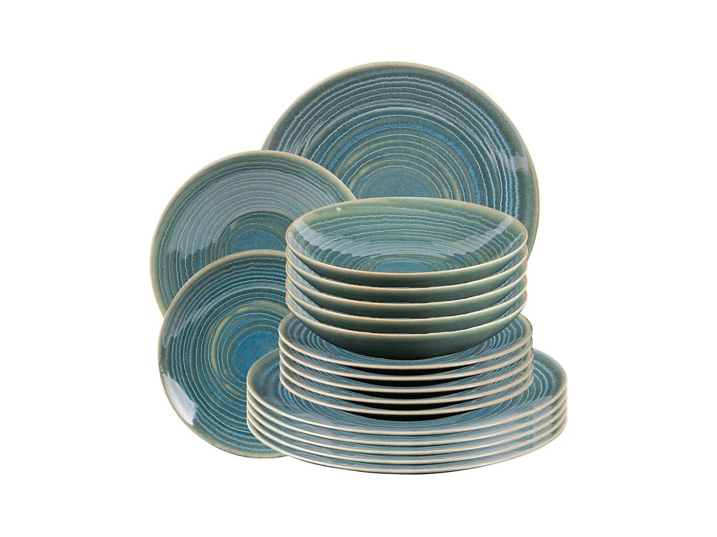 Set de 16 couverts de table JUNIPER Grès Bleu clair