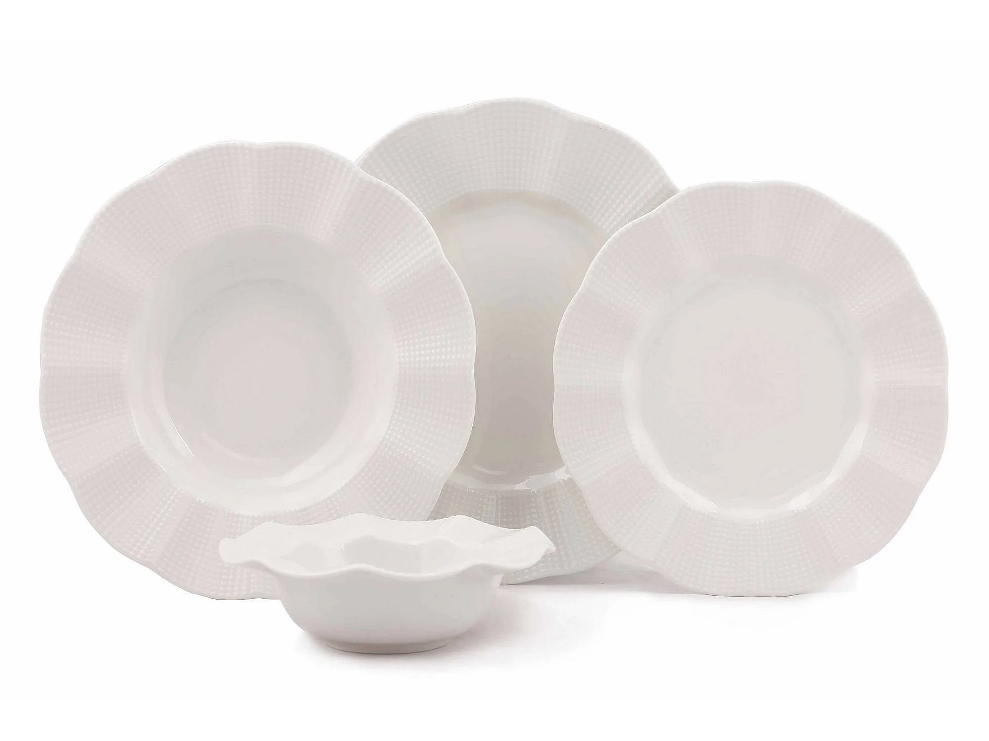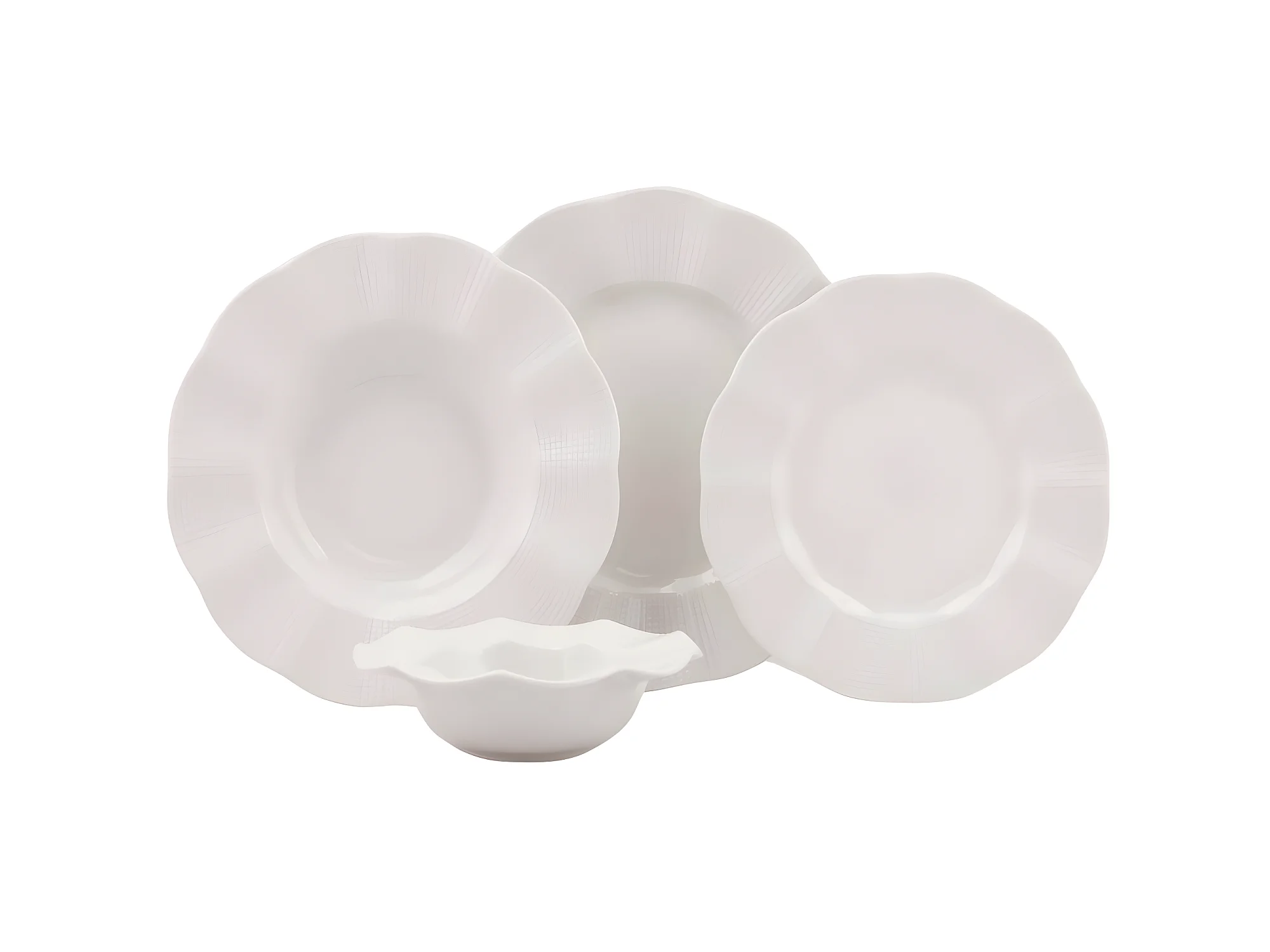 Service de table 24 pièces Campari Porcelaine fond Blanc et bordure pliée avec écaille