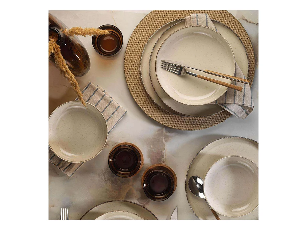 Service Vaisselle 12pcs Gres Du Temps Beige Beige