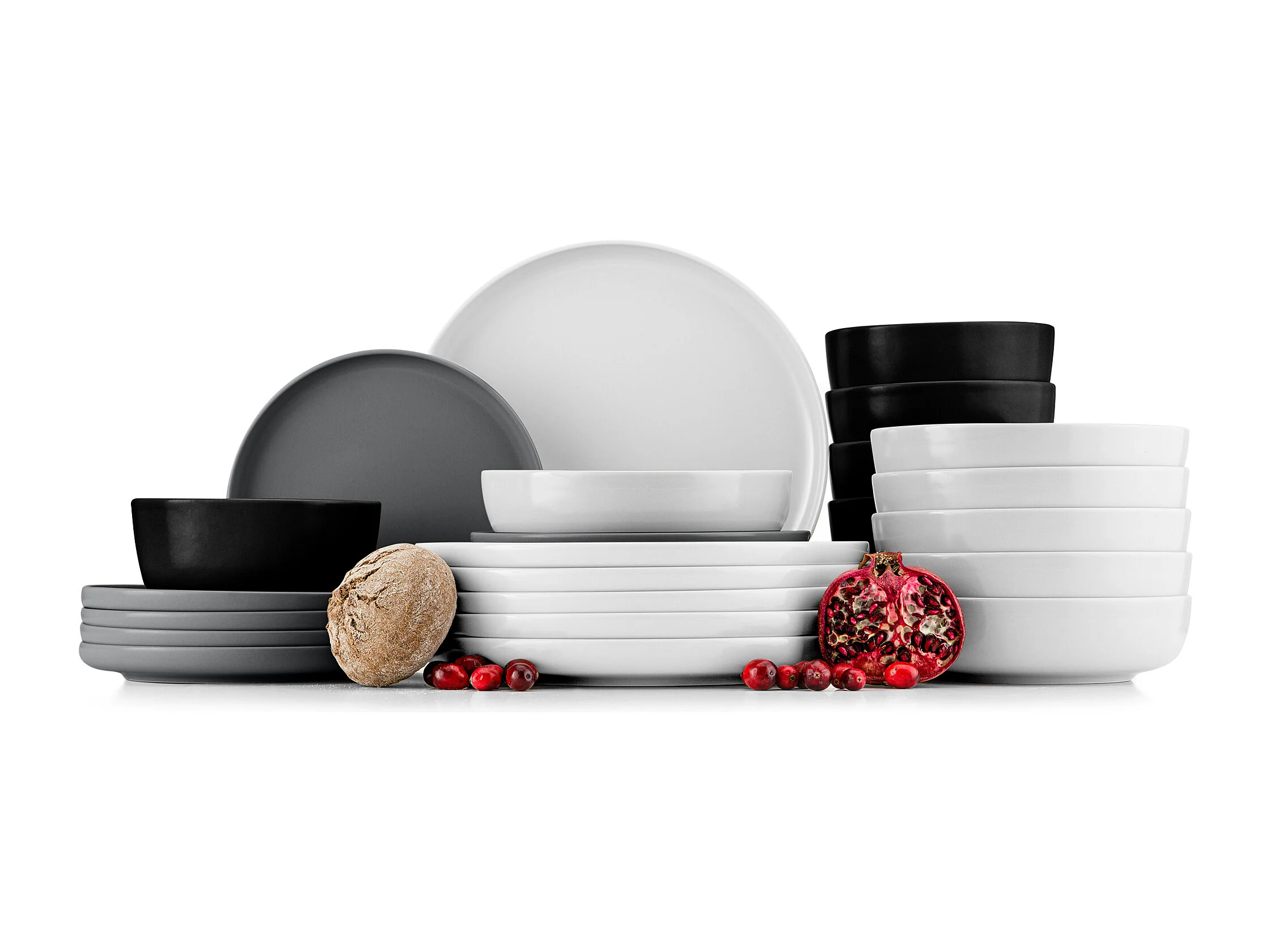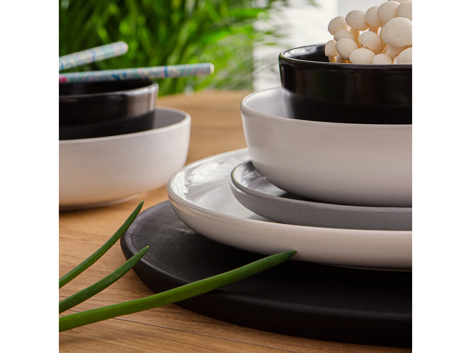 Service de table - Service vaisselle - avec Bol 18 pièces - Blanc, Noir, Gris - VICTO