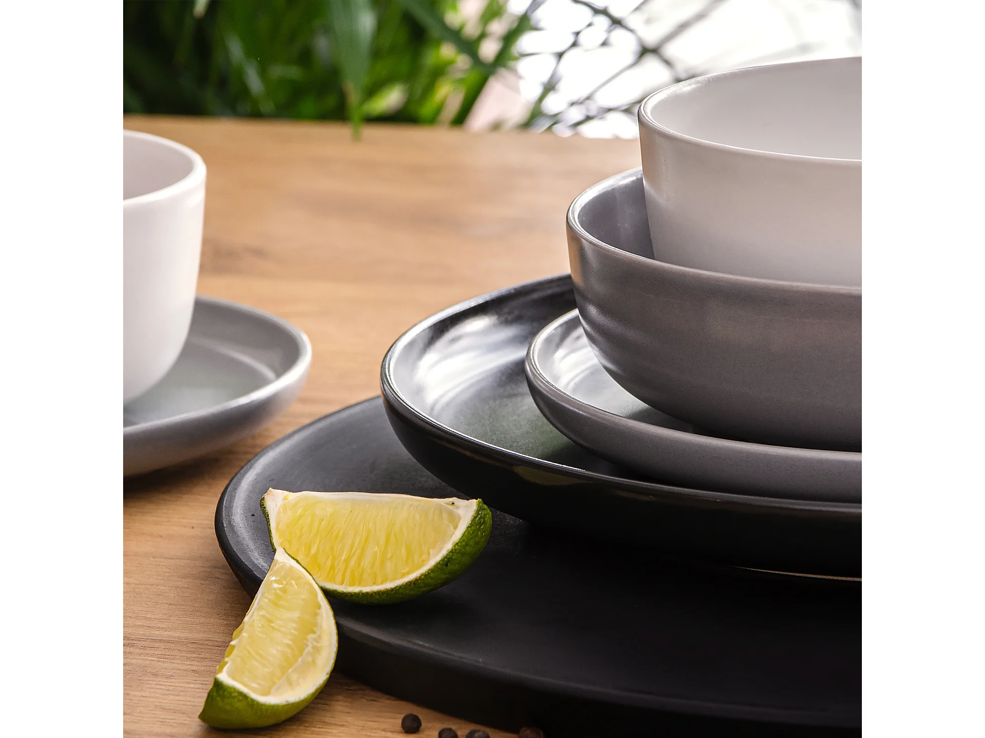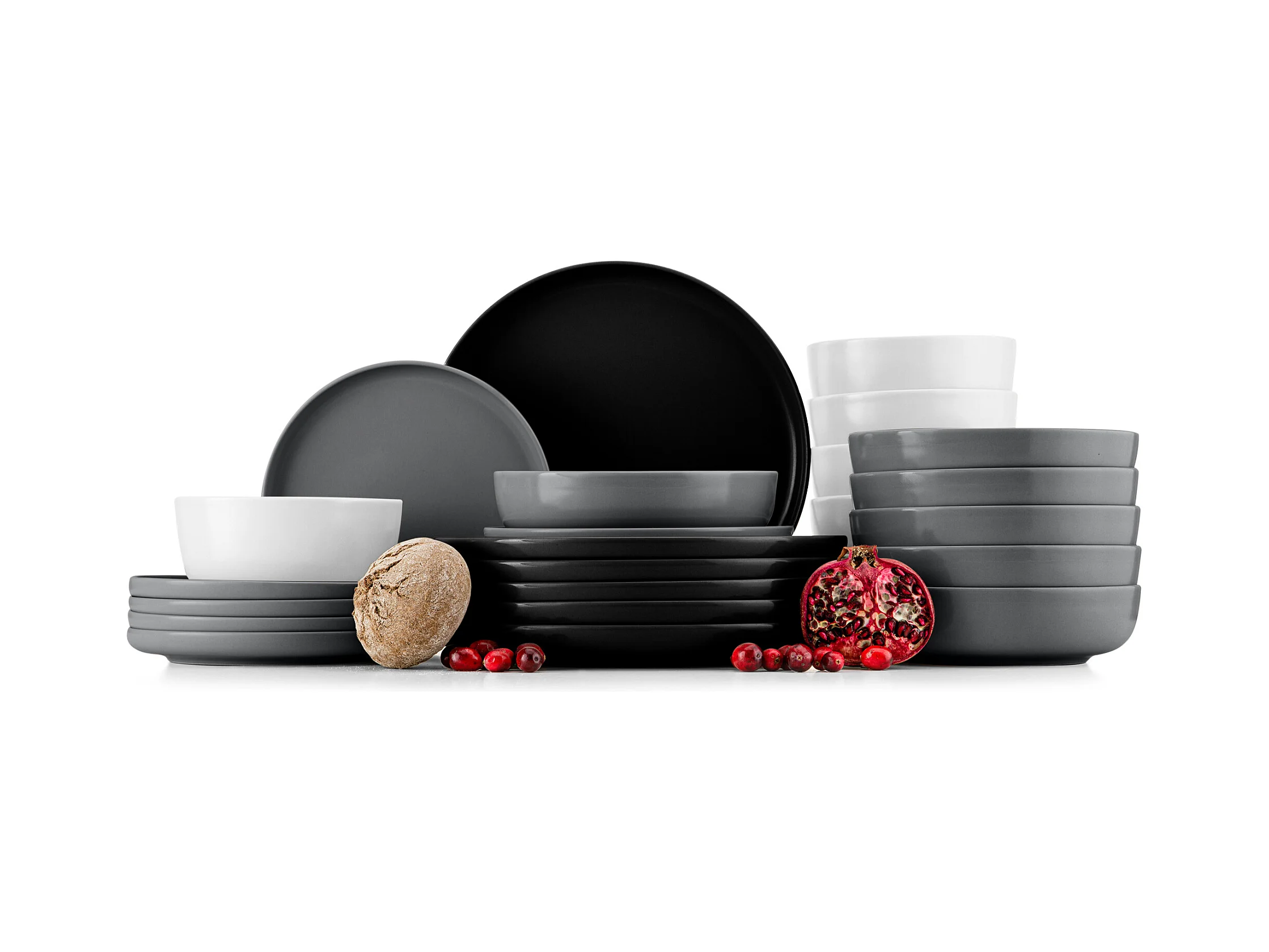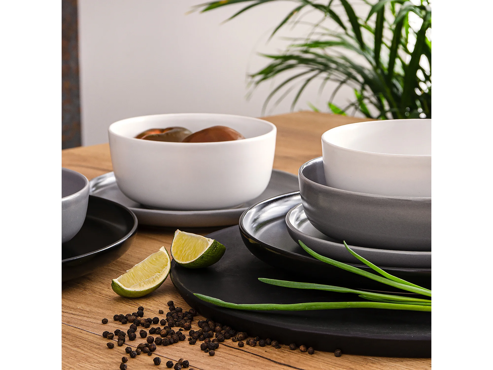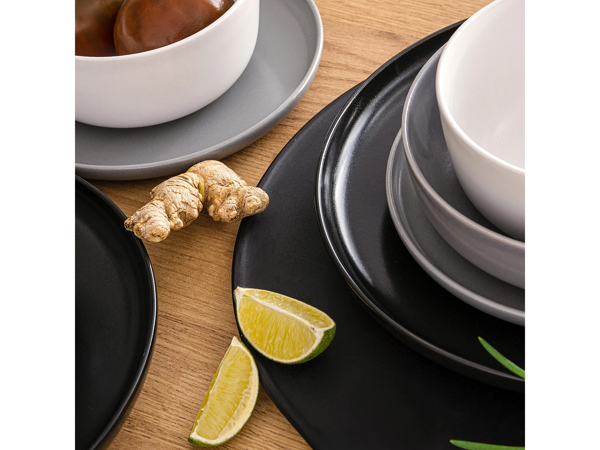 Service de table - Service vaisselle - avec Bol 18 pièces - Blanc, Noir, Gris - VICTO