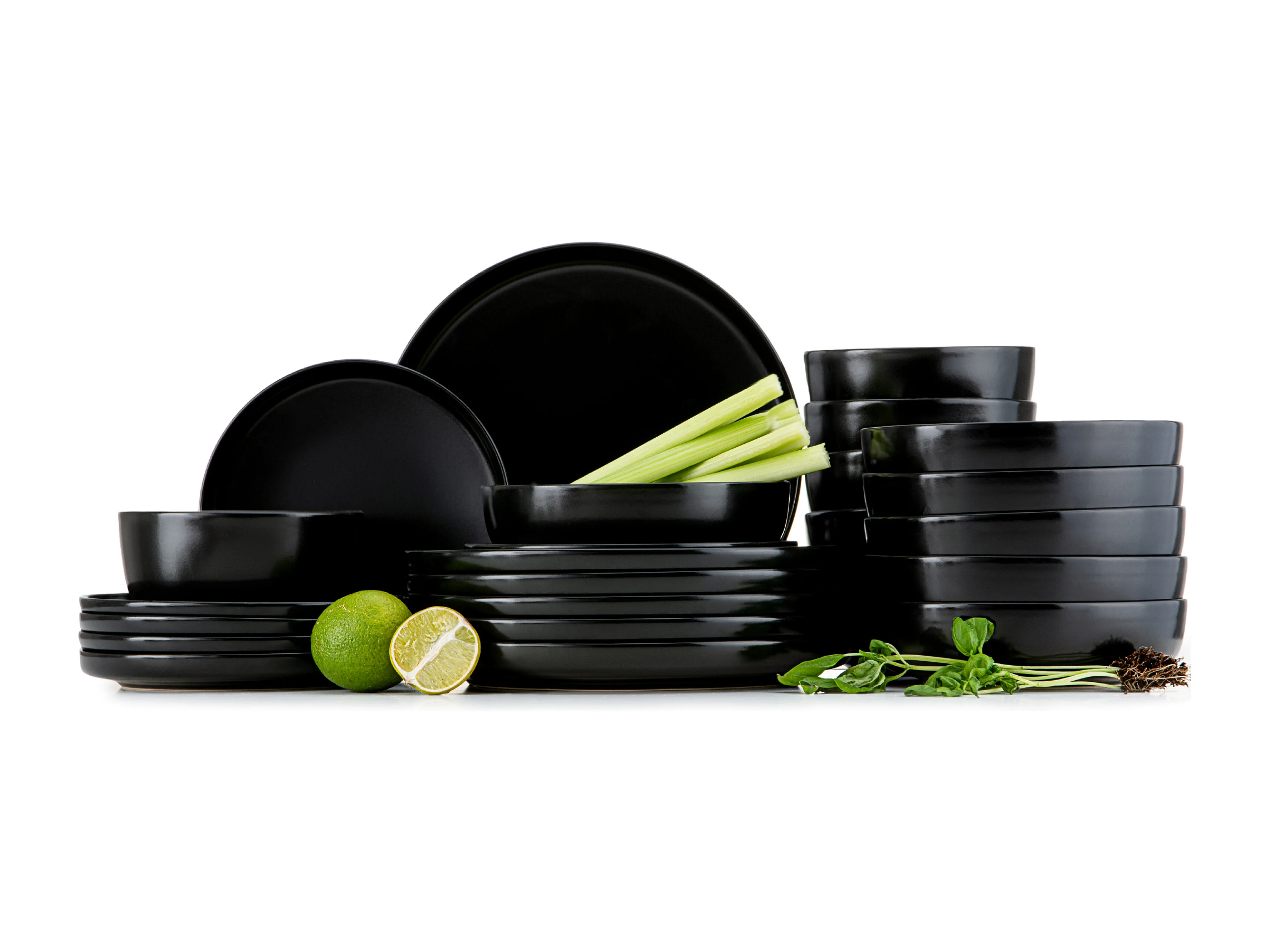 Set de plats pour 2 personnes, 7 pièces, en porcelaine noir D24 cm, La Boule
