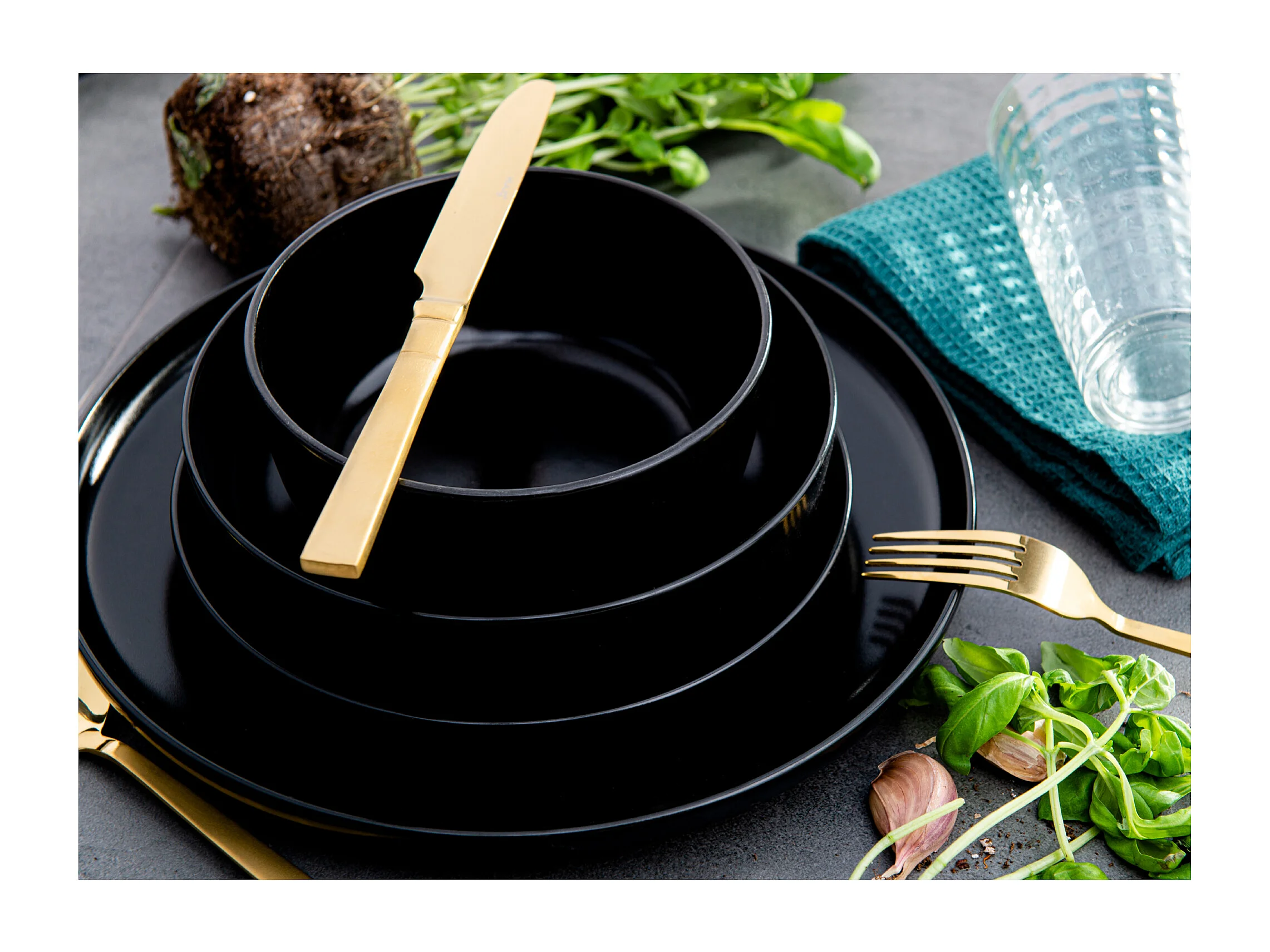 Service de table - Service vaisselle - 6 personnes 24 pièces - Noir - VICTO