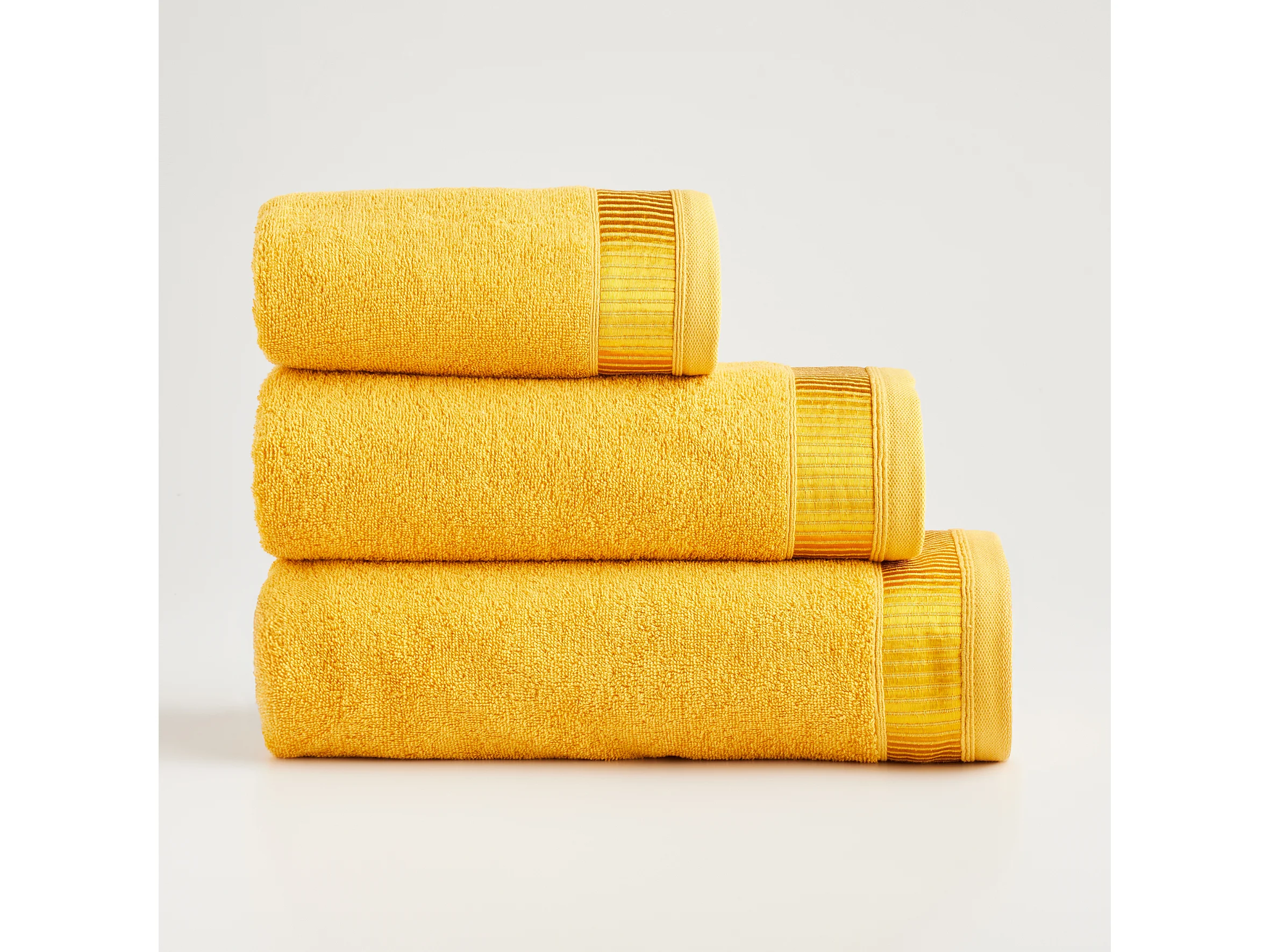 Serviette de toilette en Coton Jaune Ocre tissu éponge 50 x 90 cm