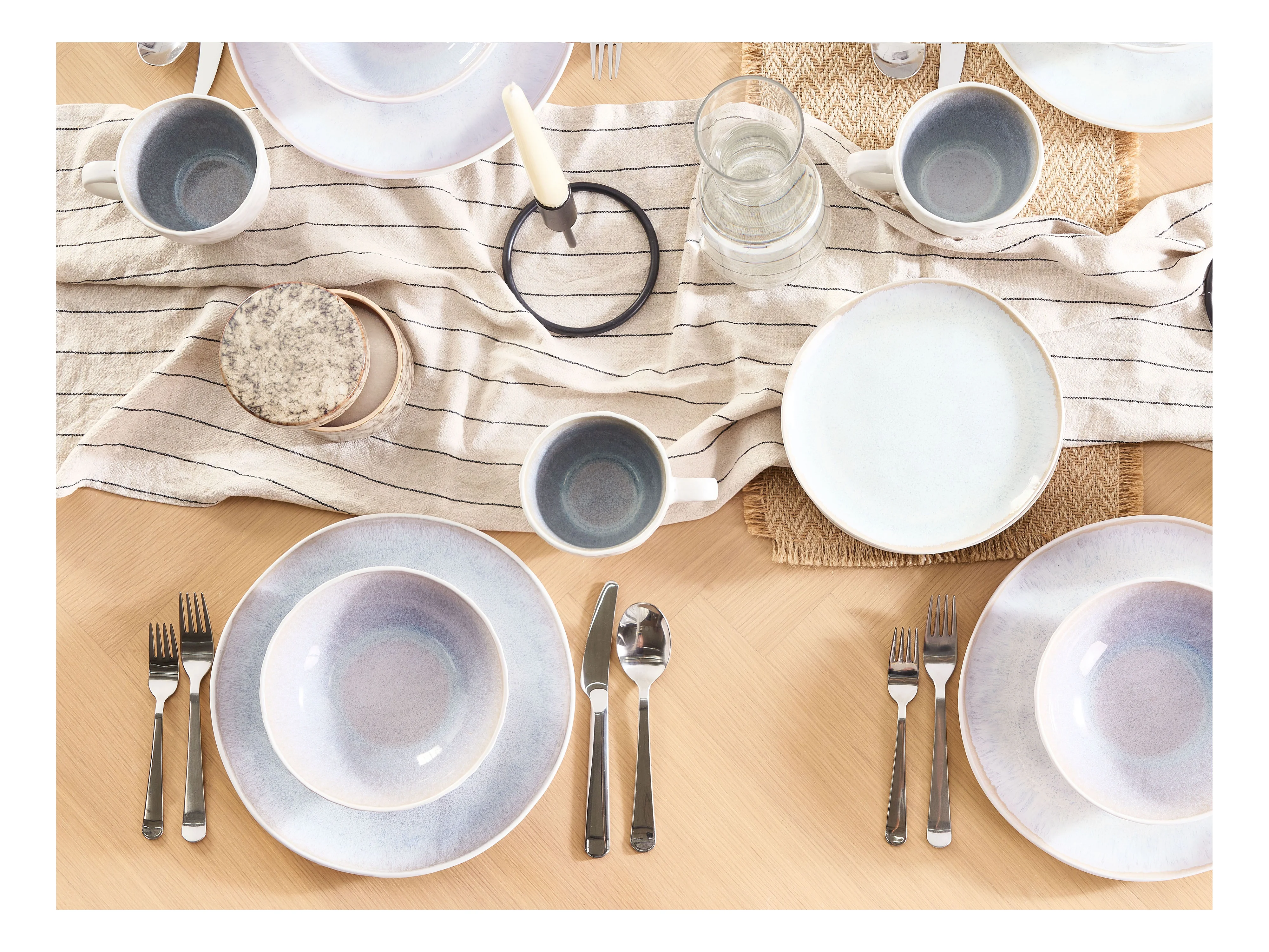 Set de 12 couverts de table CHIVES Grès Gris clair