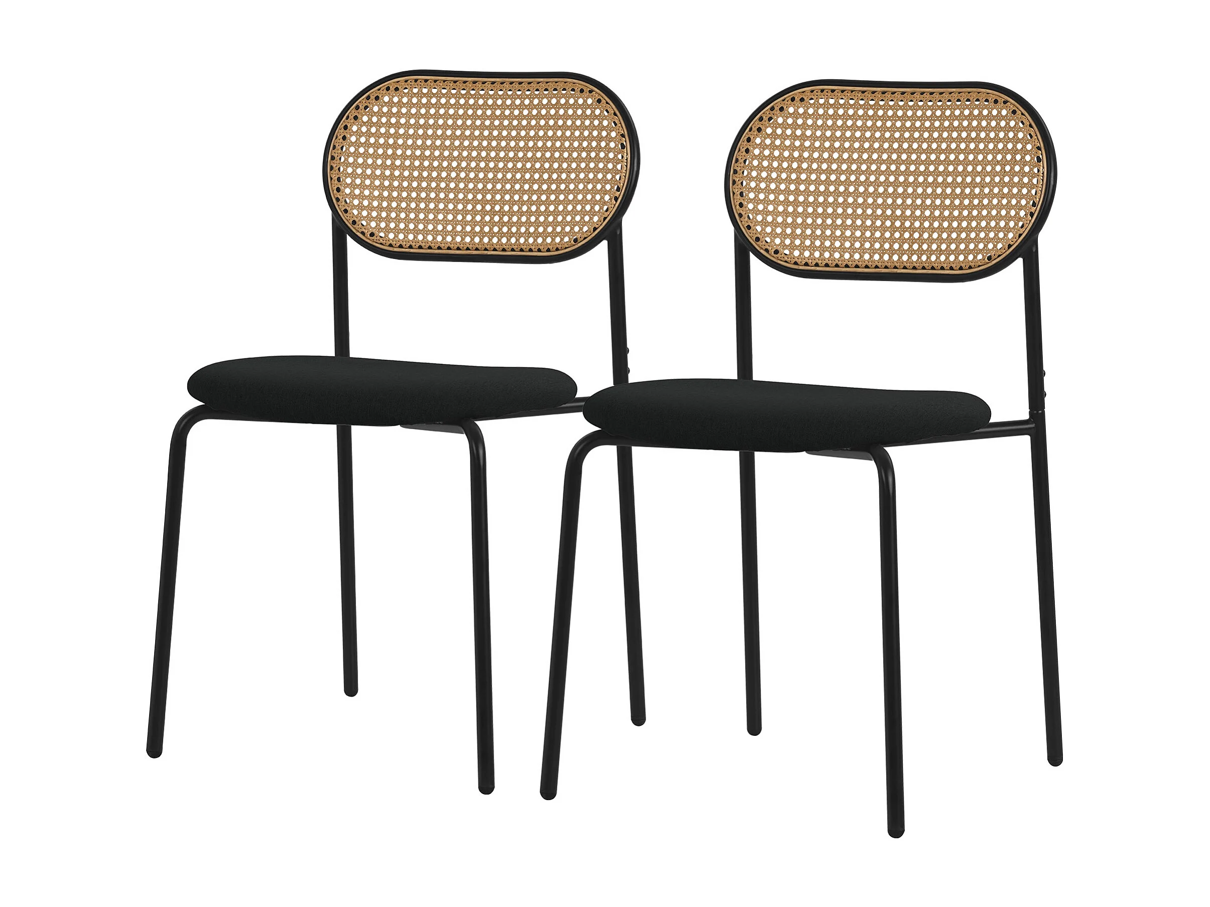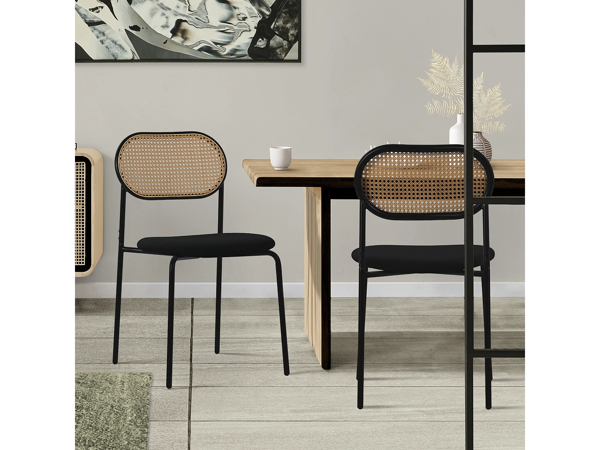 Set 2 chaises salle à manger salon cuisine dossier en rotin pieds en acier noir