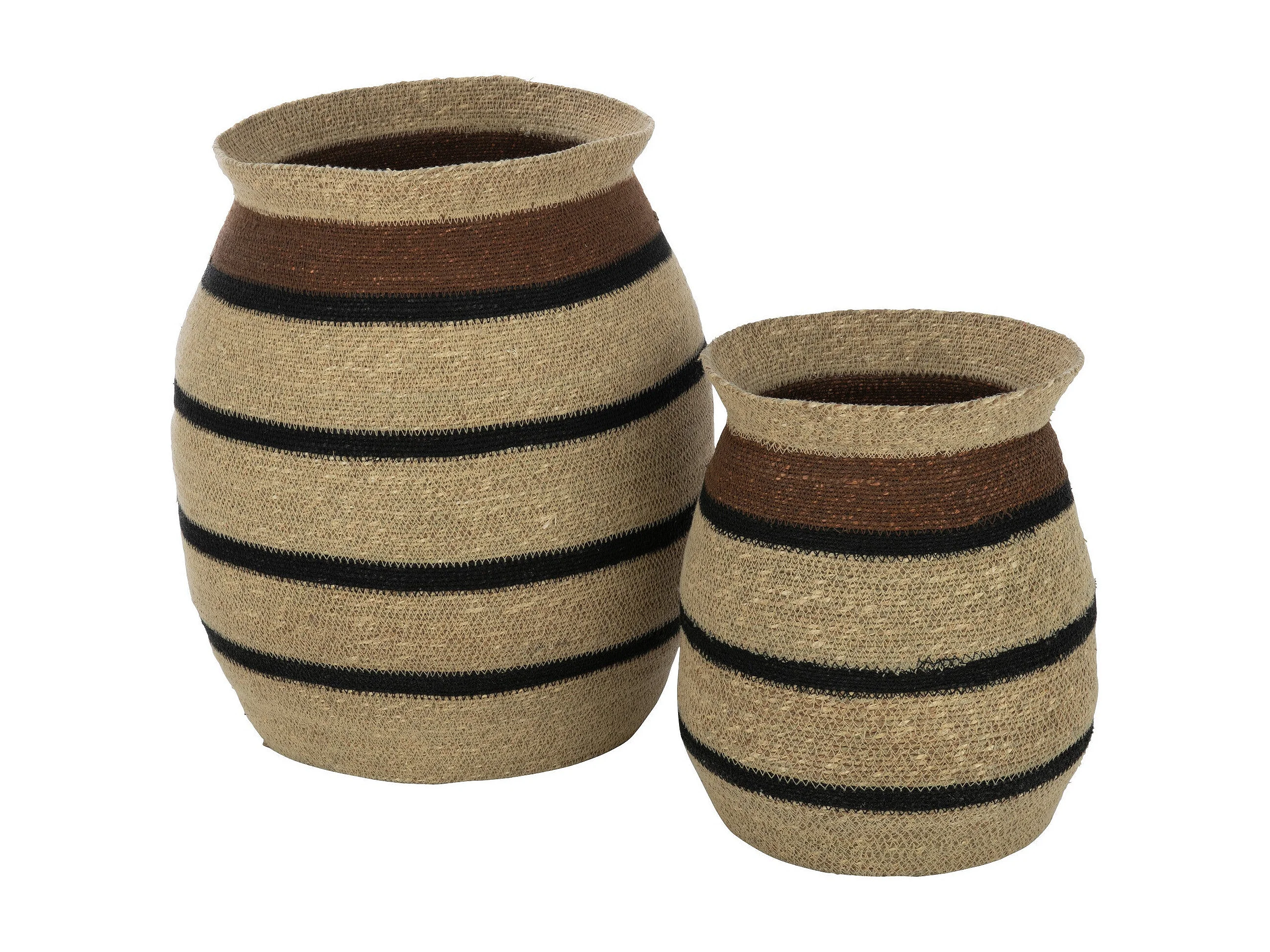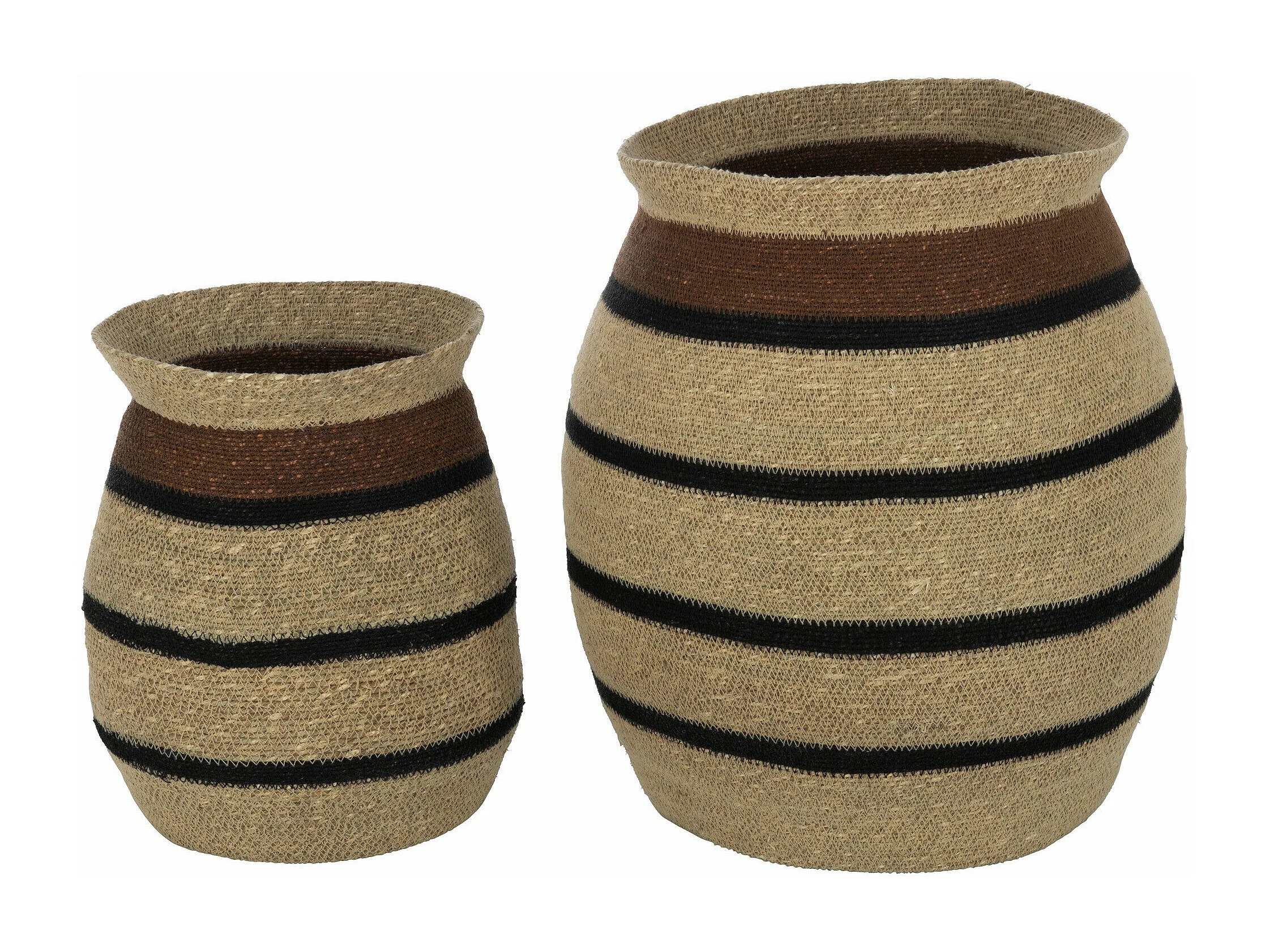 Lot de 2 Cache-Pots Paniers Rayures "Herbes Marines" 48cm Marron