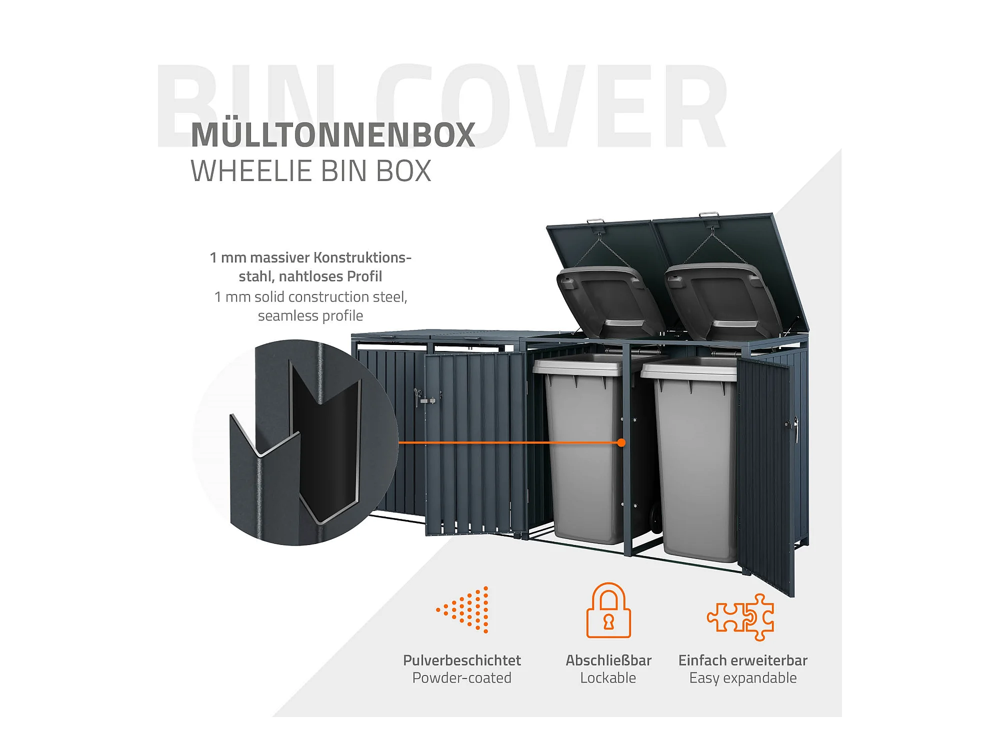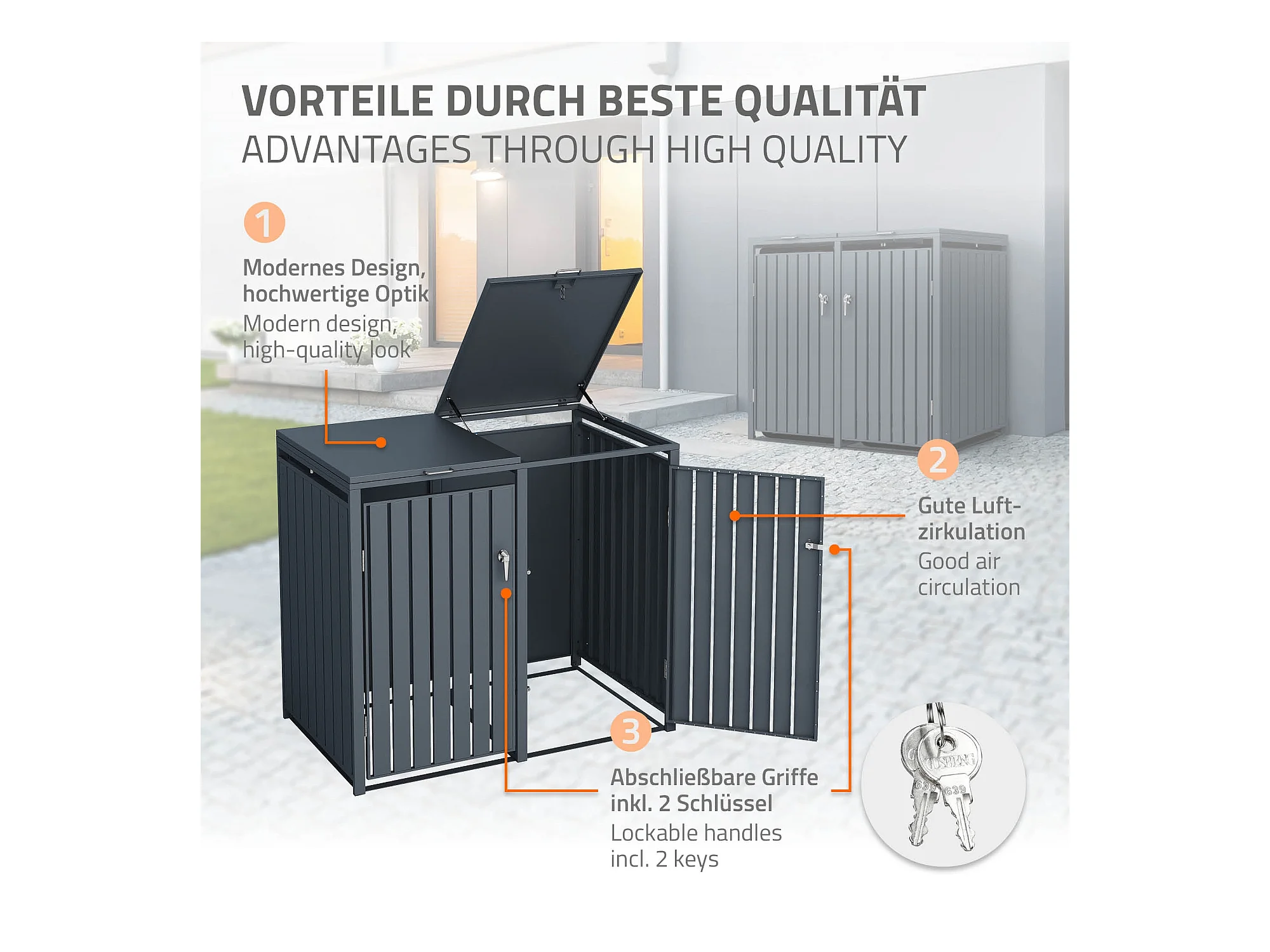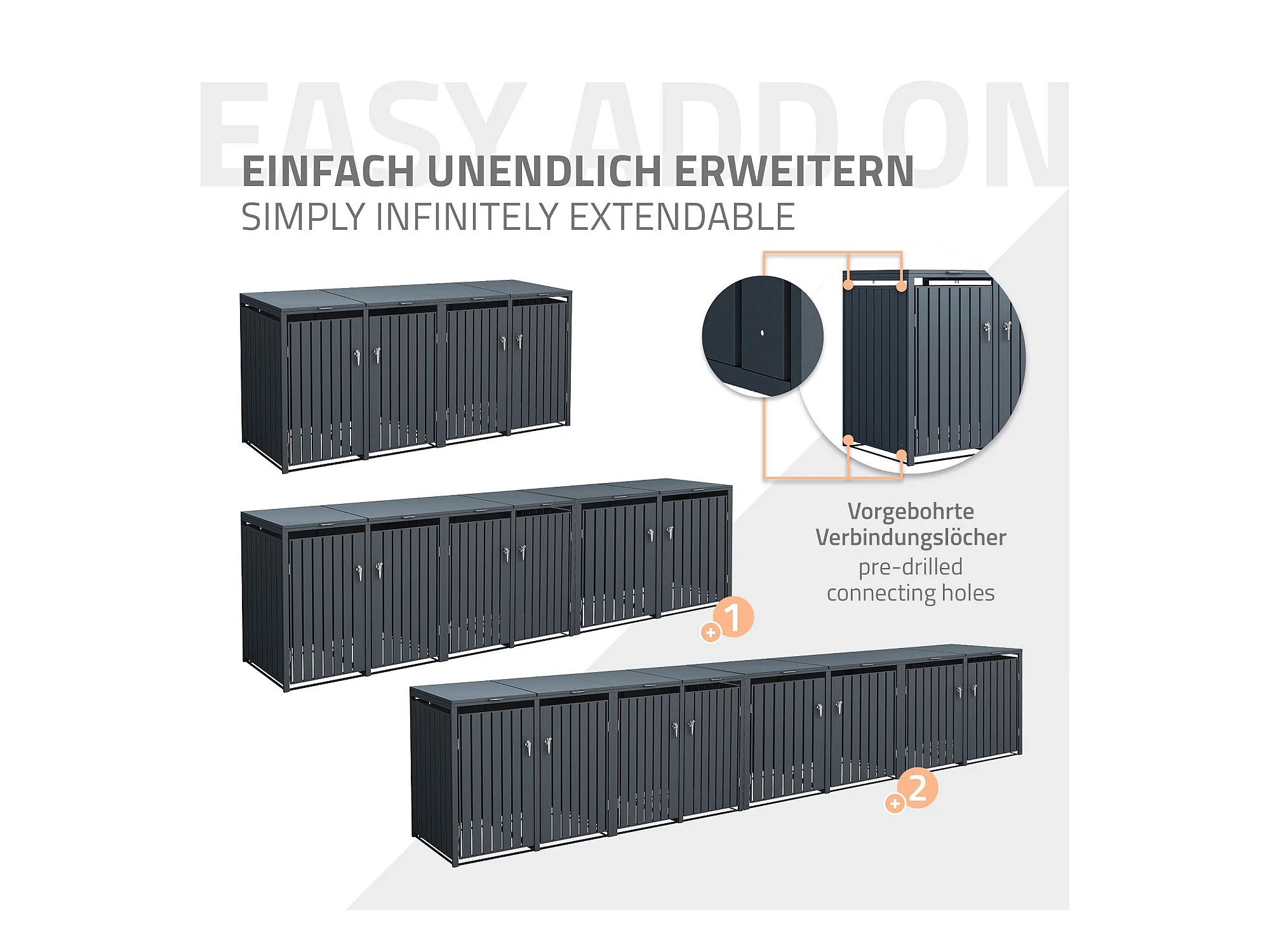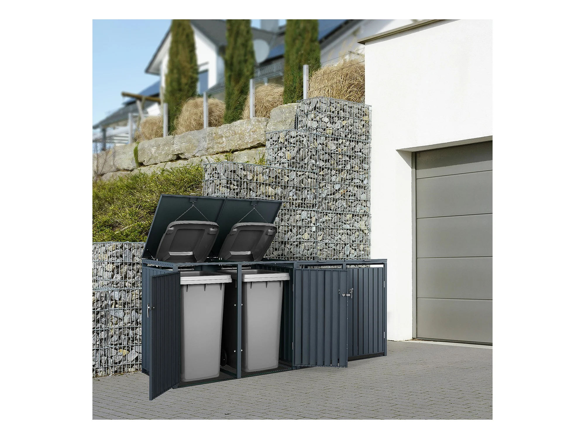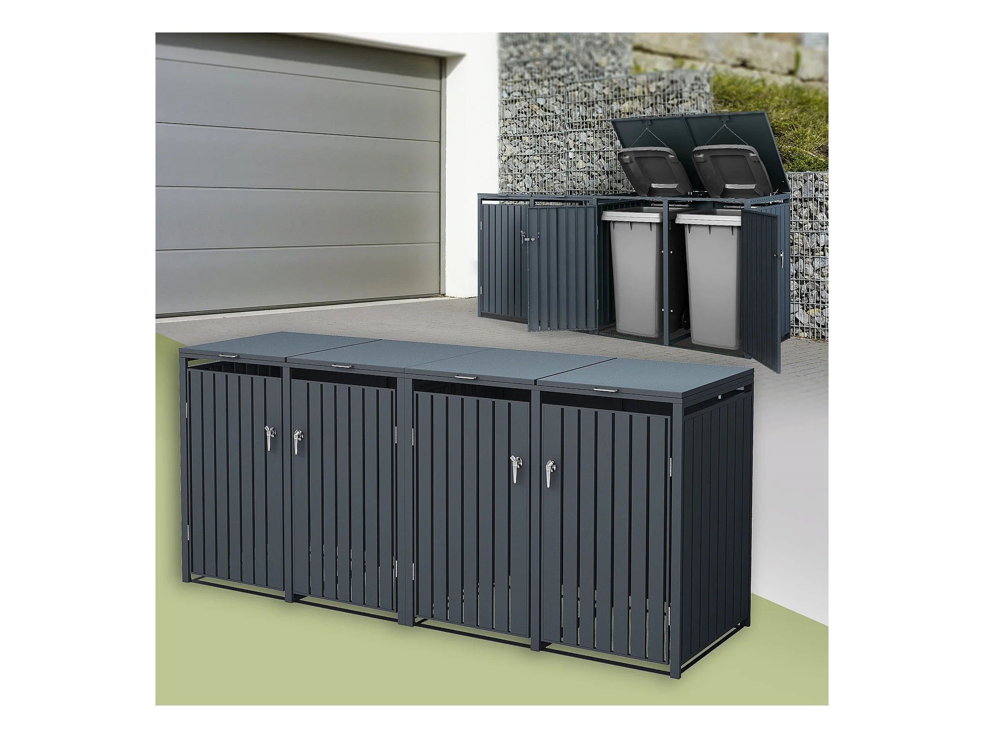 Abri pour 4 poubelles 264x80x116,3 cm 60 à 240 litres par compartiment anthracite acier couvercle rabattable et 4 portes résistant aux intempéries