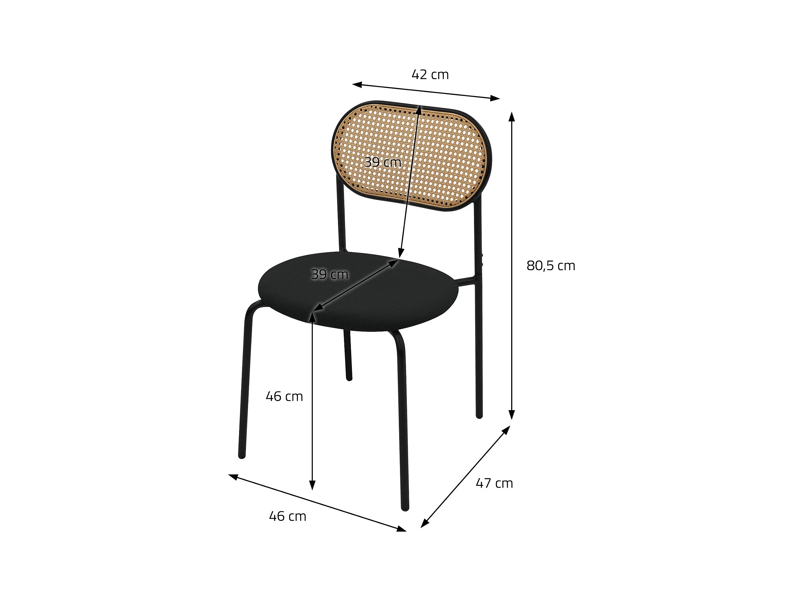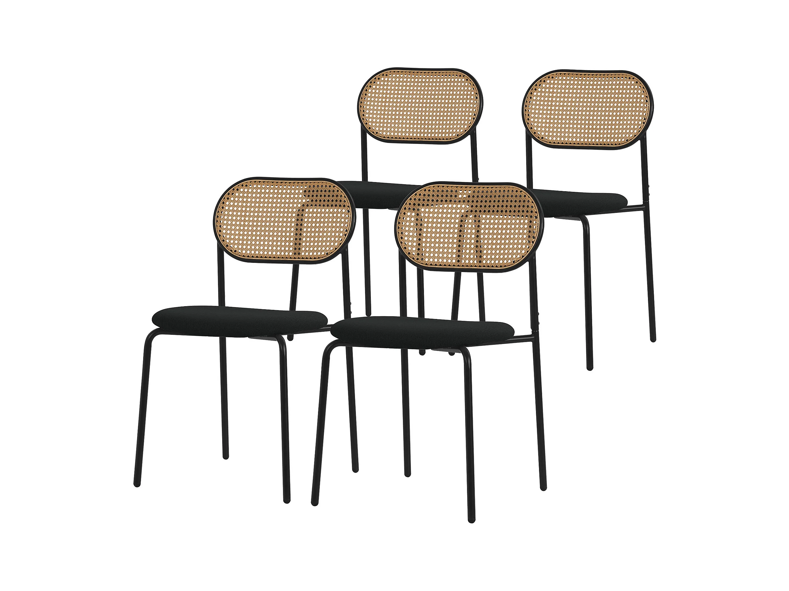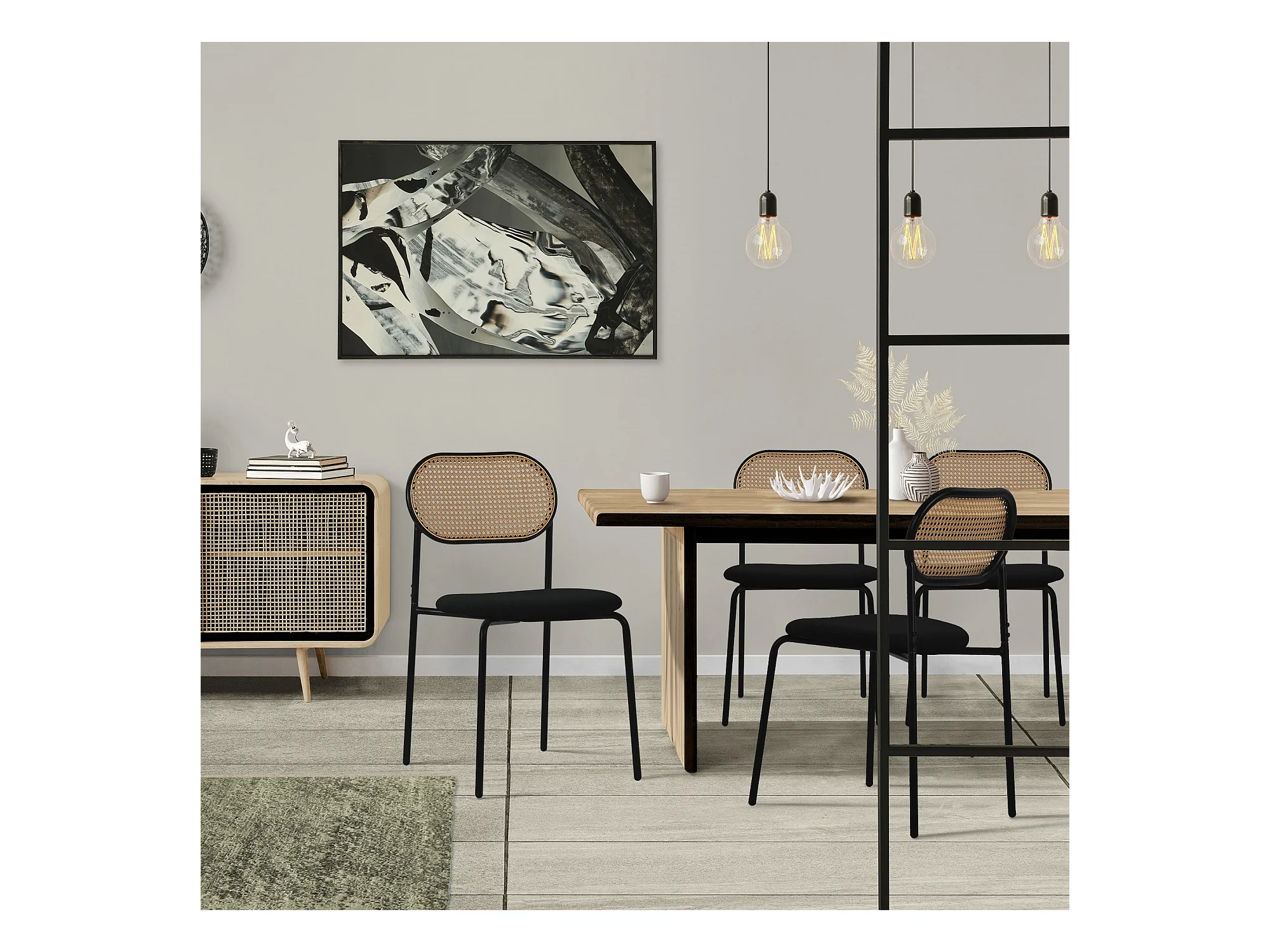 Set 4 chaises salle à manger salon cuisine dossier en rotin pieds en acier noir