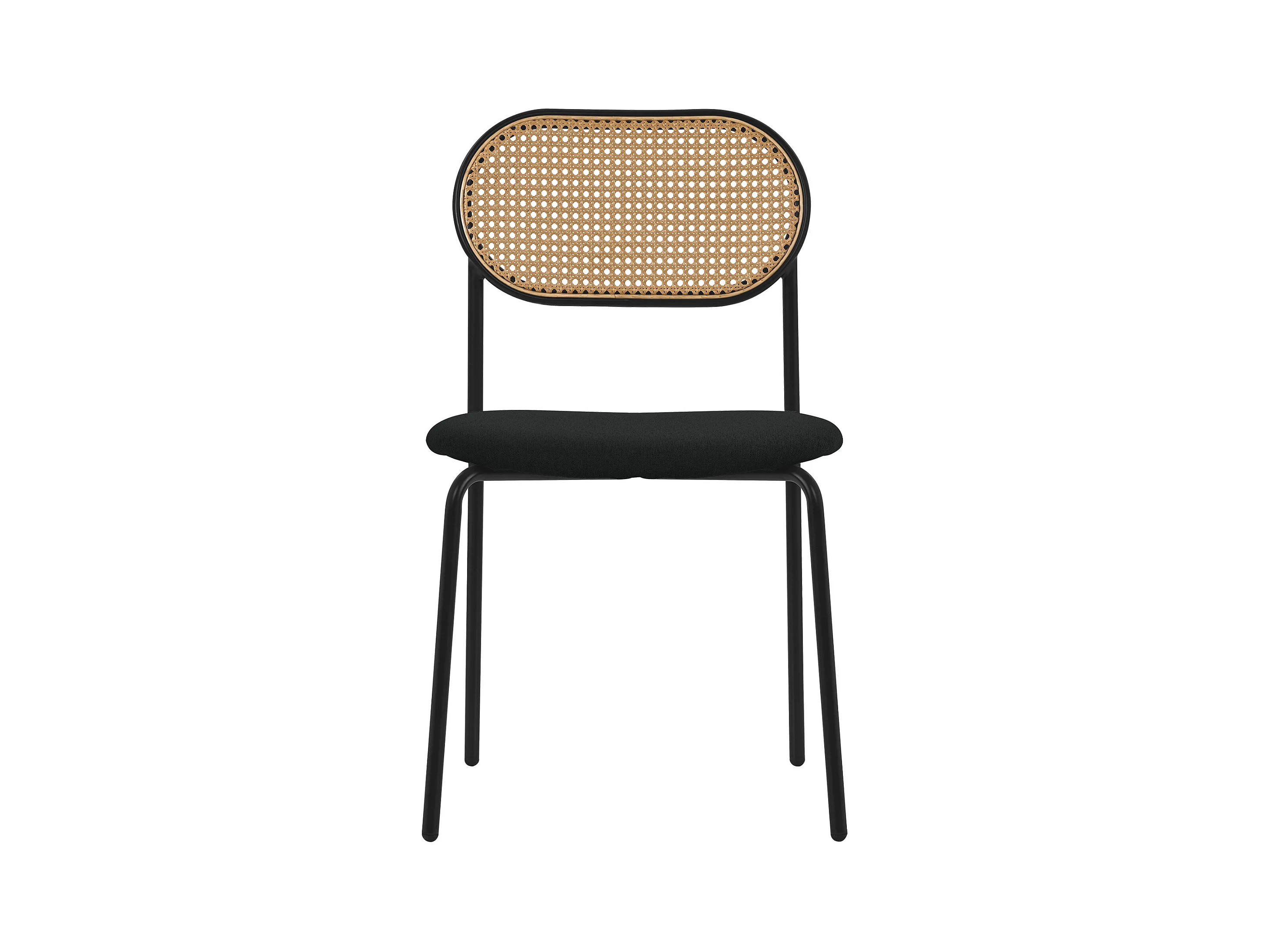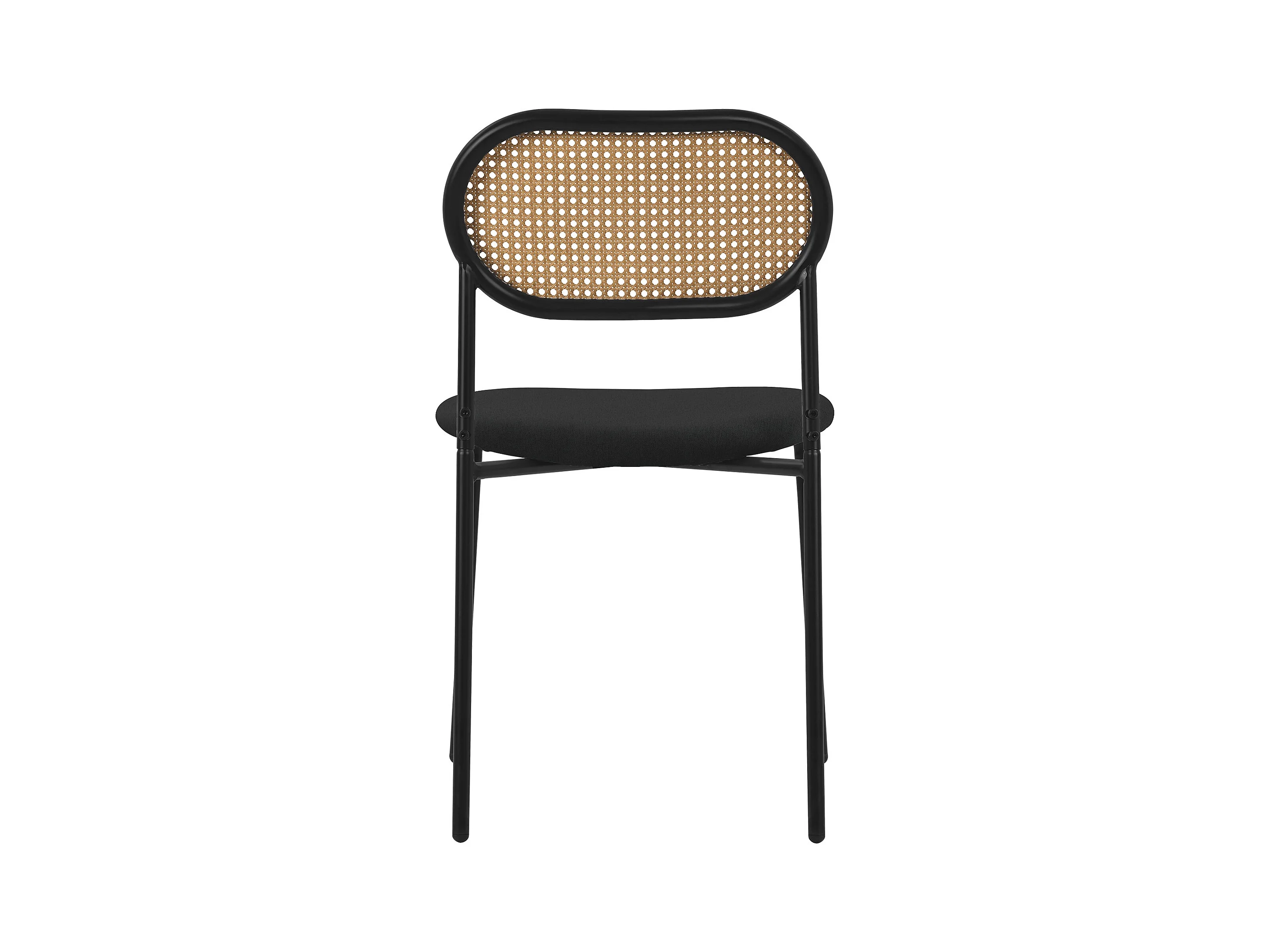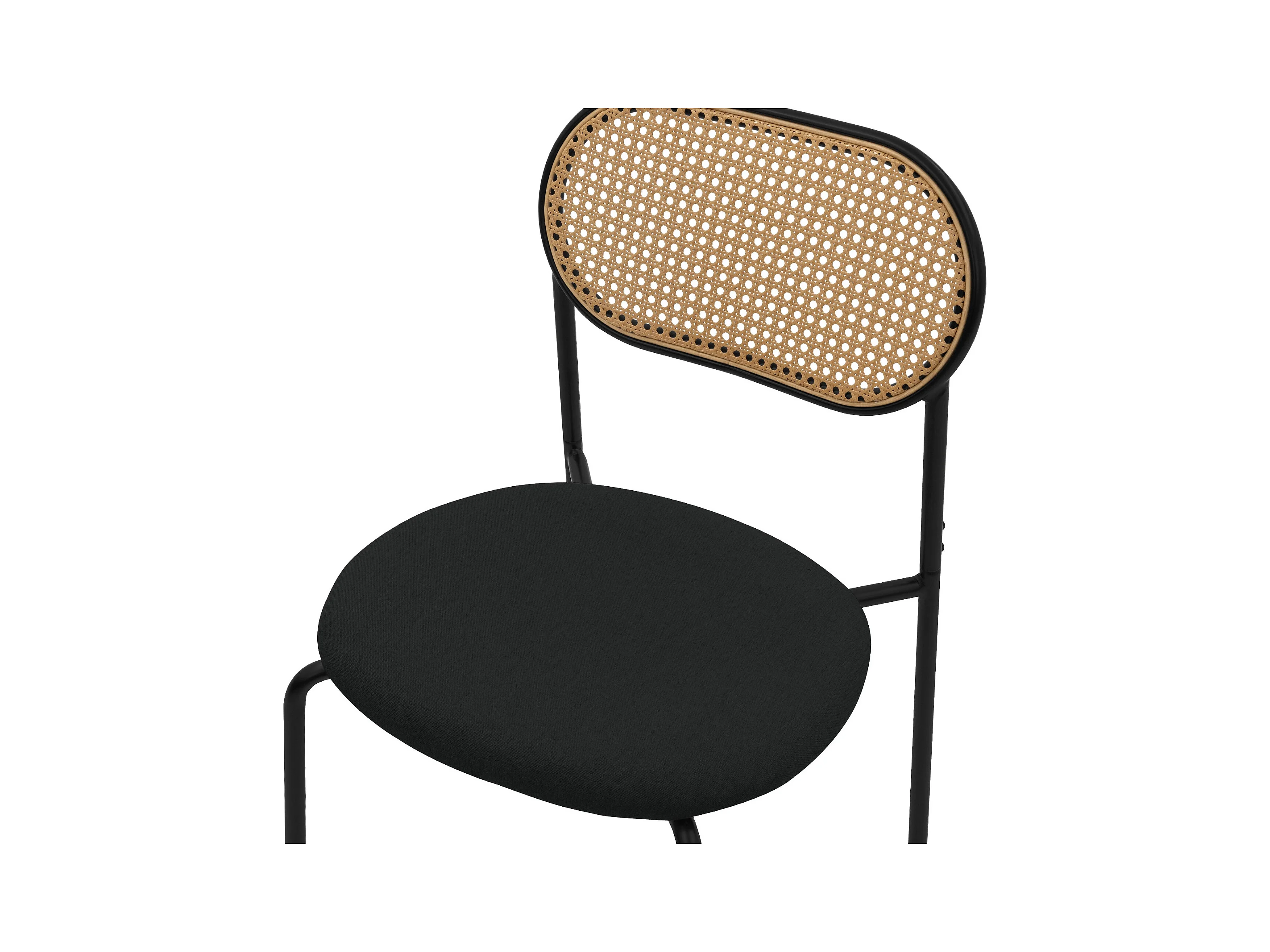 Set 4 chaises salle à manger salon cuisine dossier en rotin pieds en acier noir