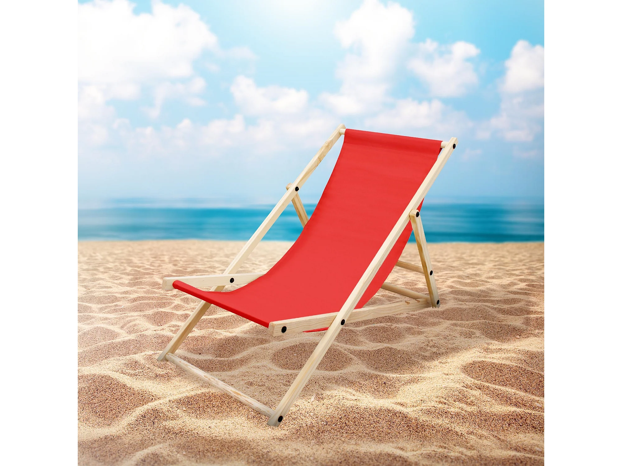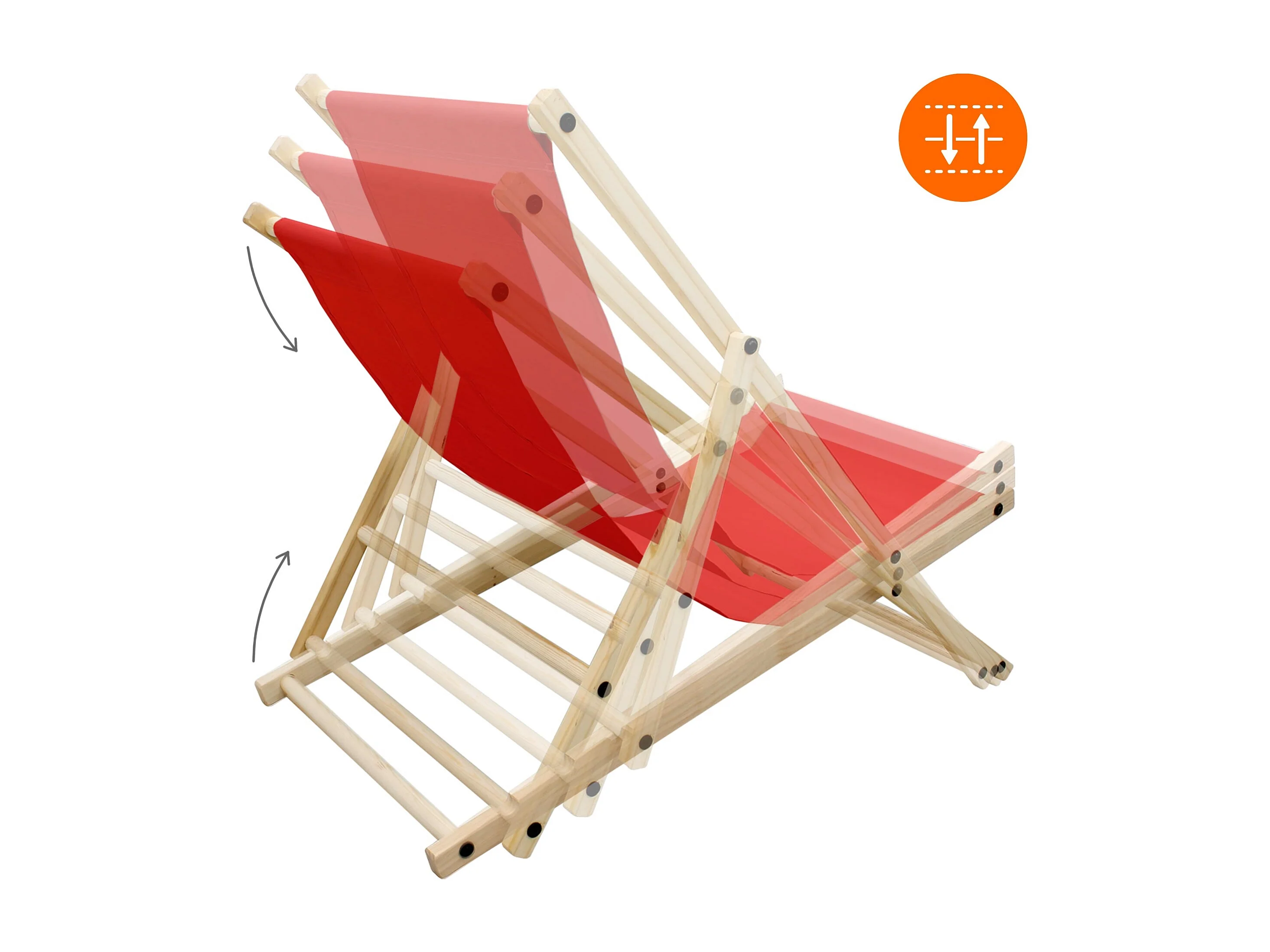 Set 4x Chaise longue de jardin pliable rouge en bois chiliennes 3 positions de couchage jusqu'à 120 kg usage intérieur et extérieur balcon terrasse