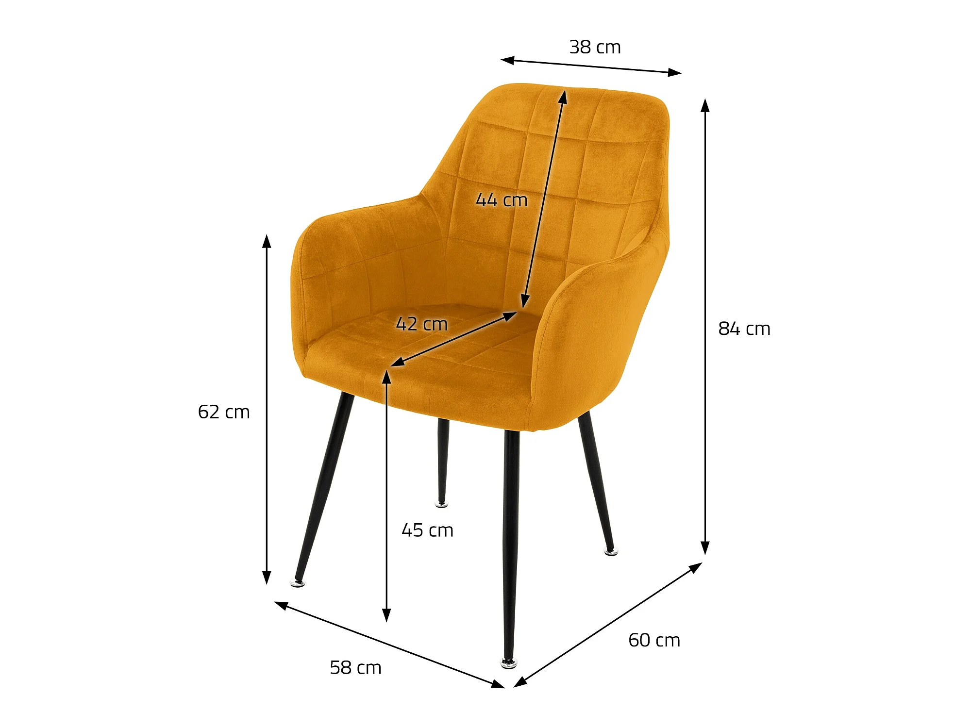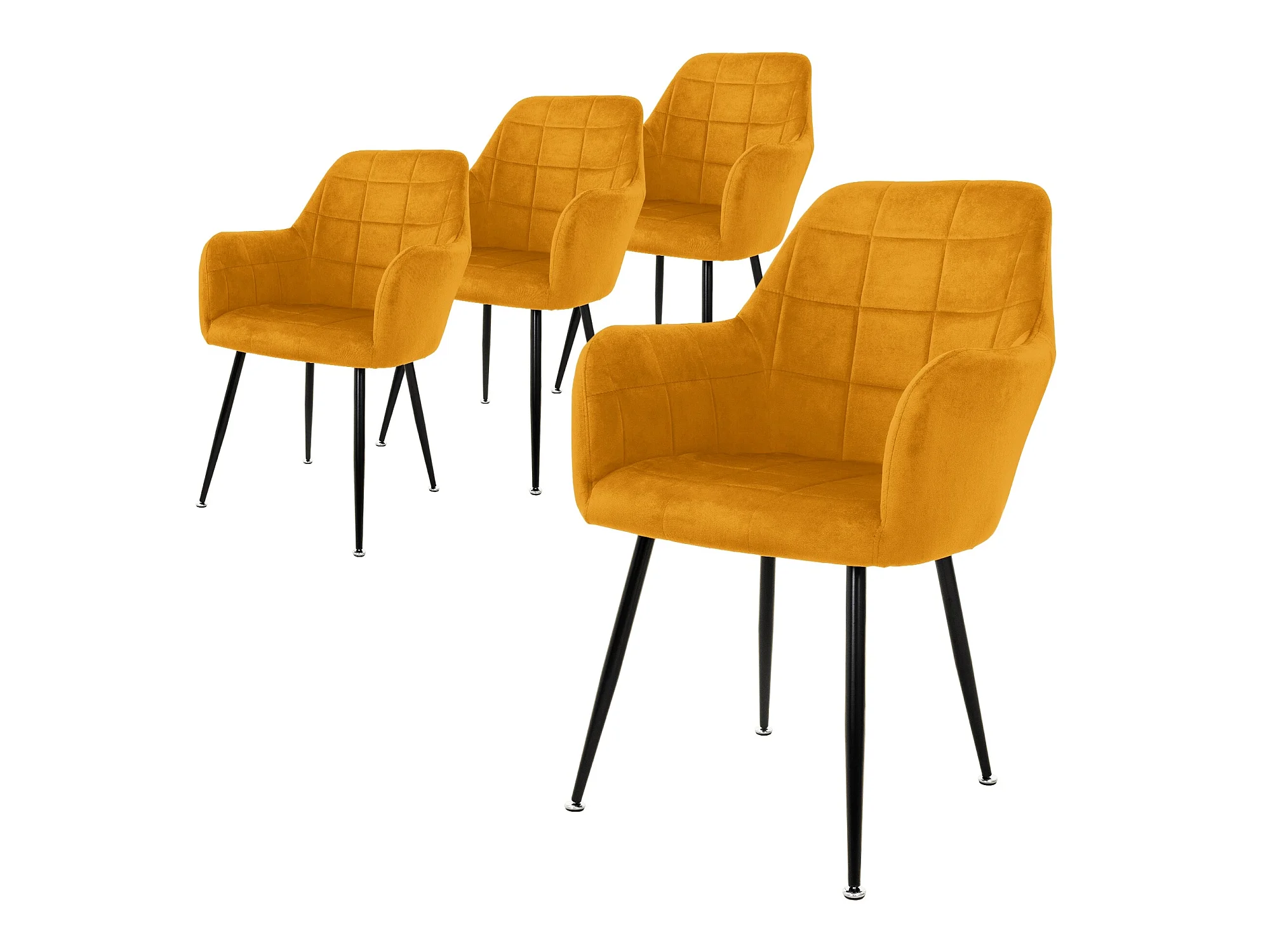 Set 4x chaises de salle à manger rembourré velours ocre fauteuils retro/moderne