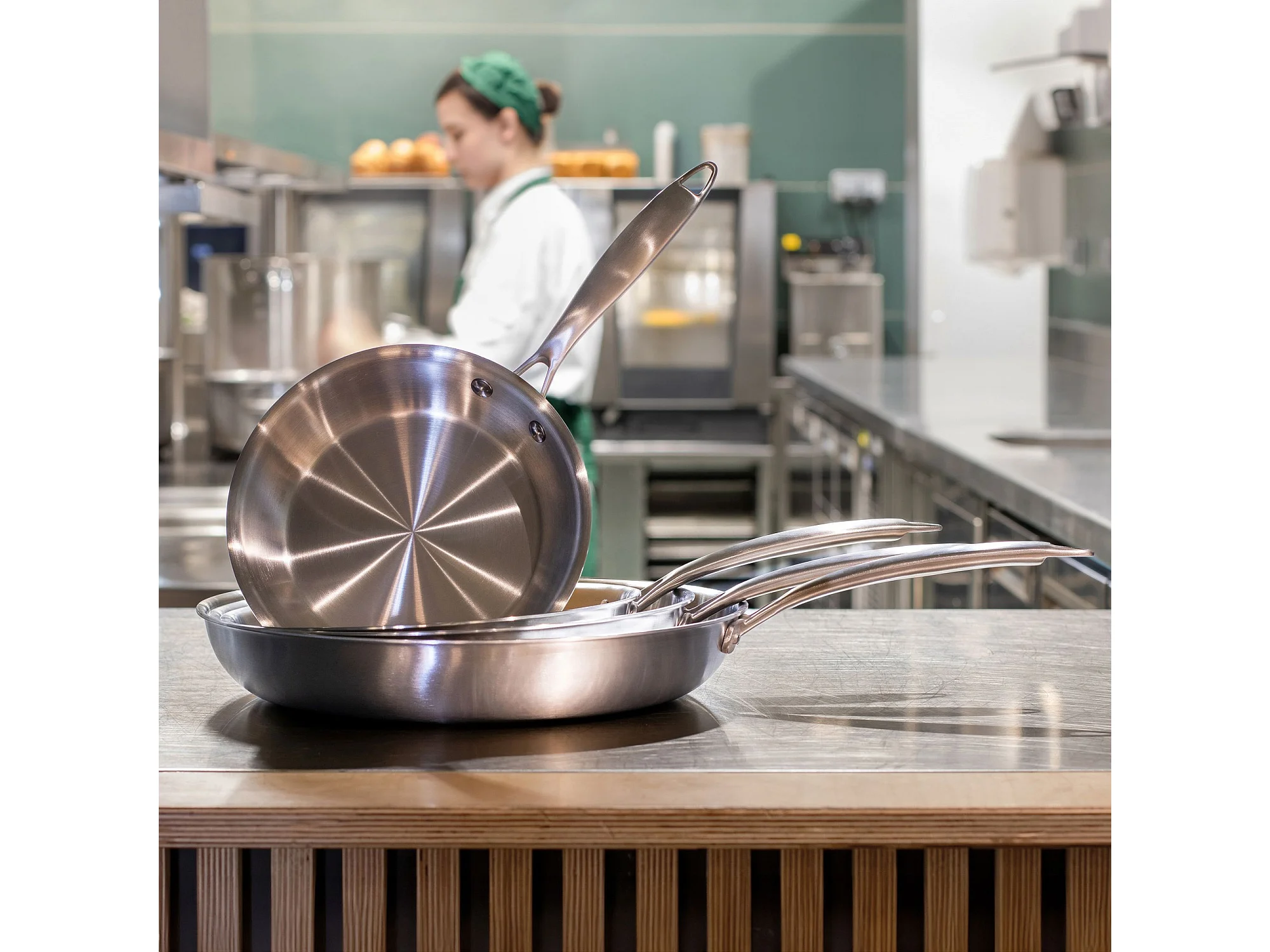 Menastyl - Set 5 Pieces Triply Wok Casserole Poele En Acier Inoxydable Induction - Made In France