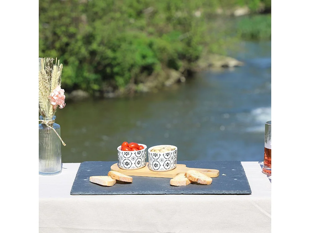 Service Apéritif Ardoise "17 Pièces" 32cm Gris & Blanc