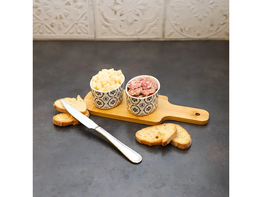 ~ Set apéritif tapas 2 verrines en bambou et céramique blanc et marron 26 x 9.5cm