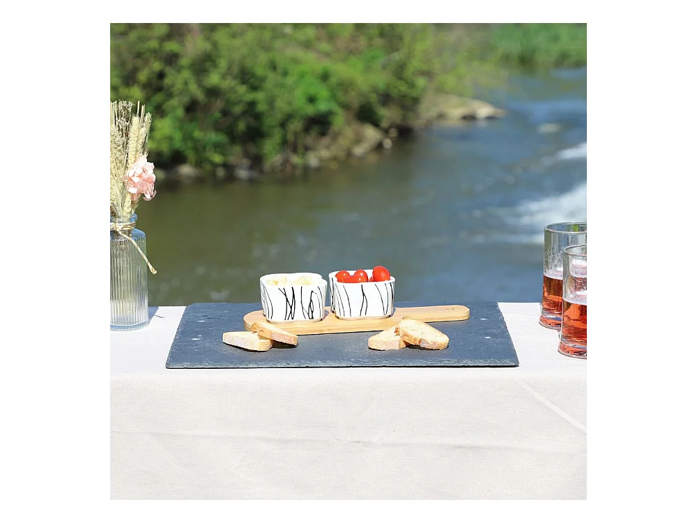 Service Apéritif Ardoise "17 Pièces" 32cm Gris & Blanc