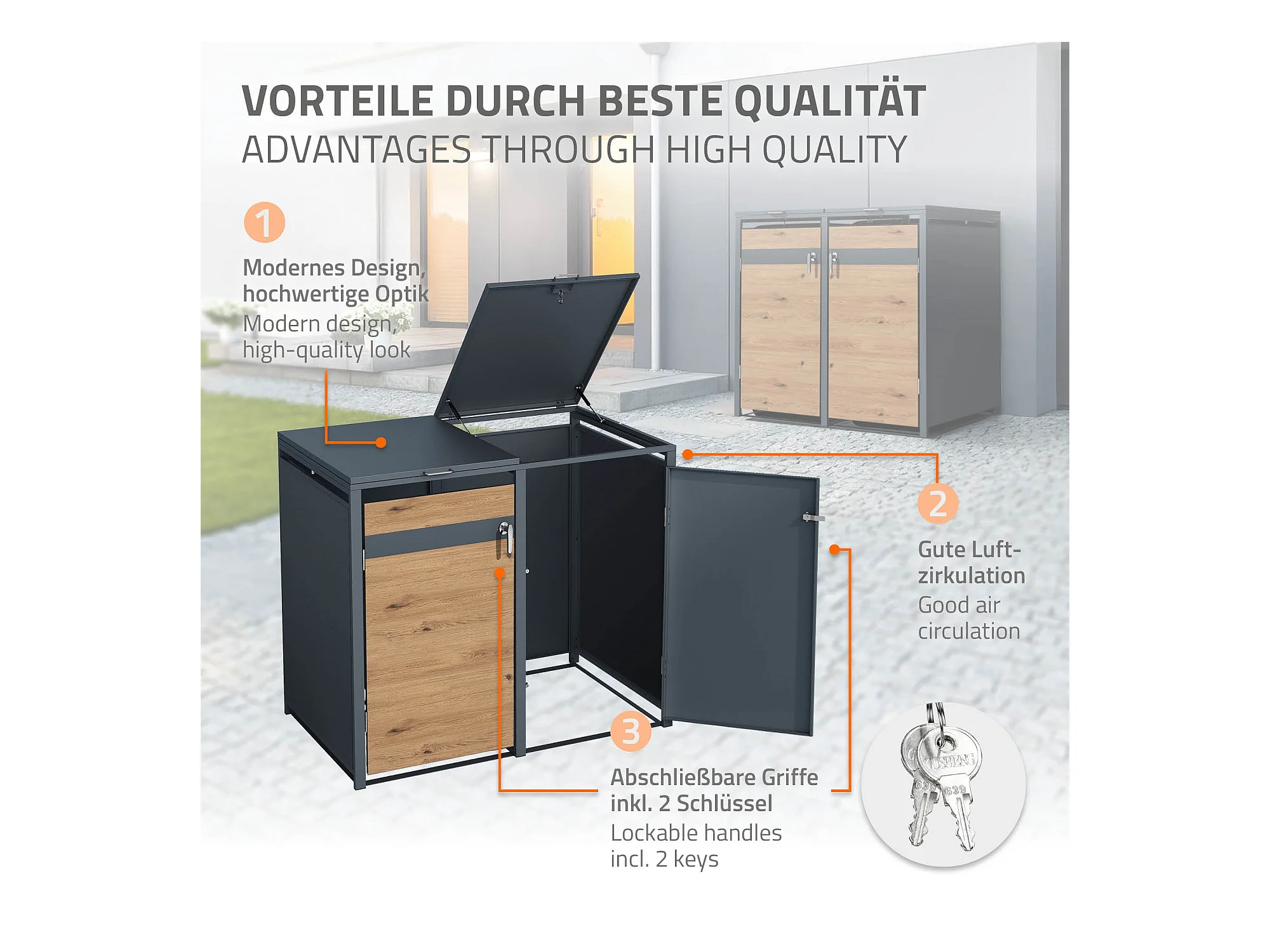 Set de 2 abris de poubelles Habillage de poubelle pour 4 poubelles 240L