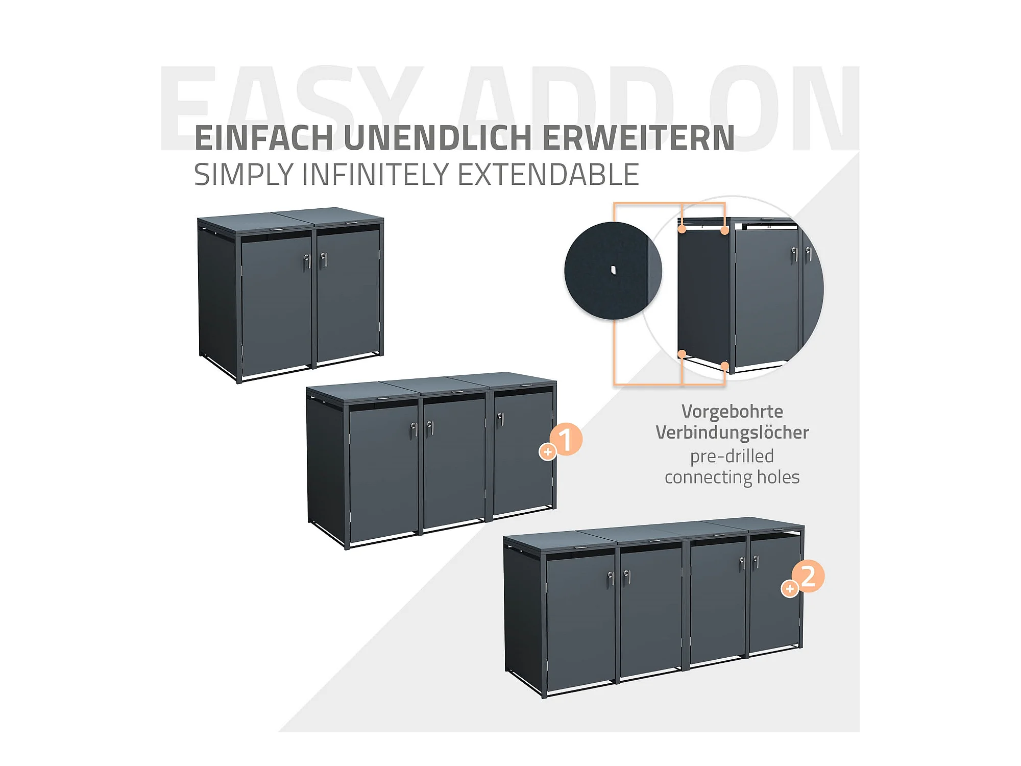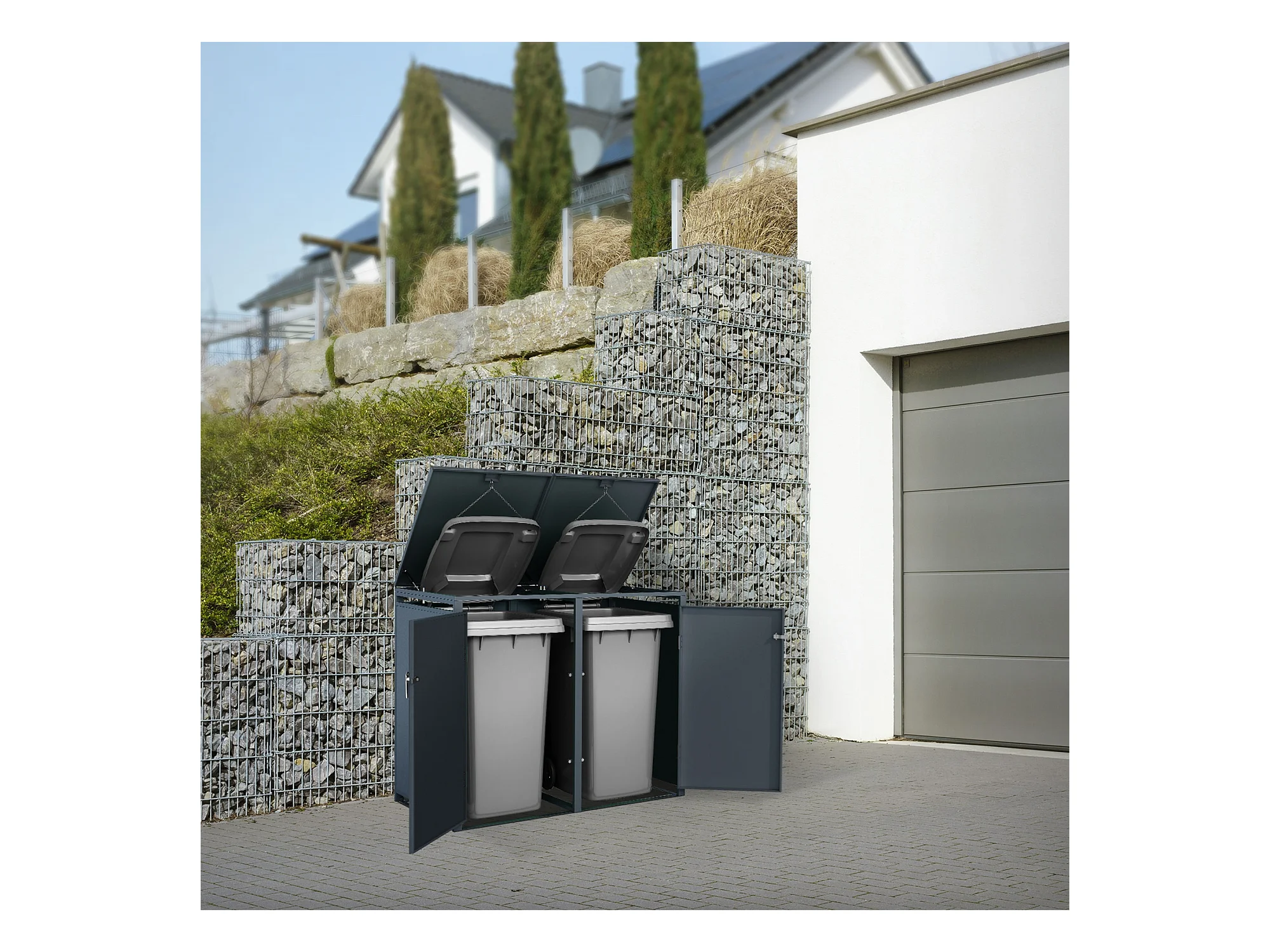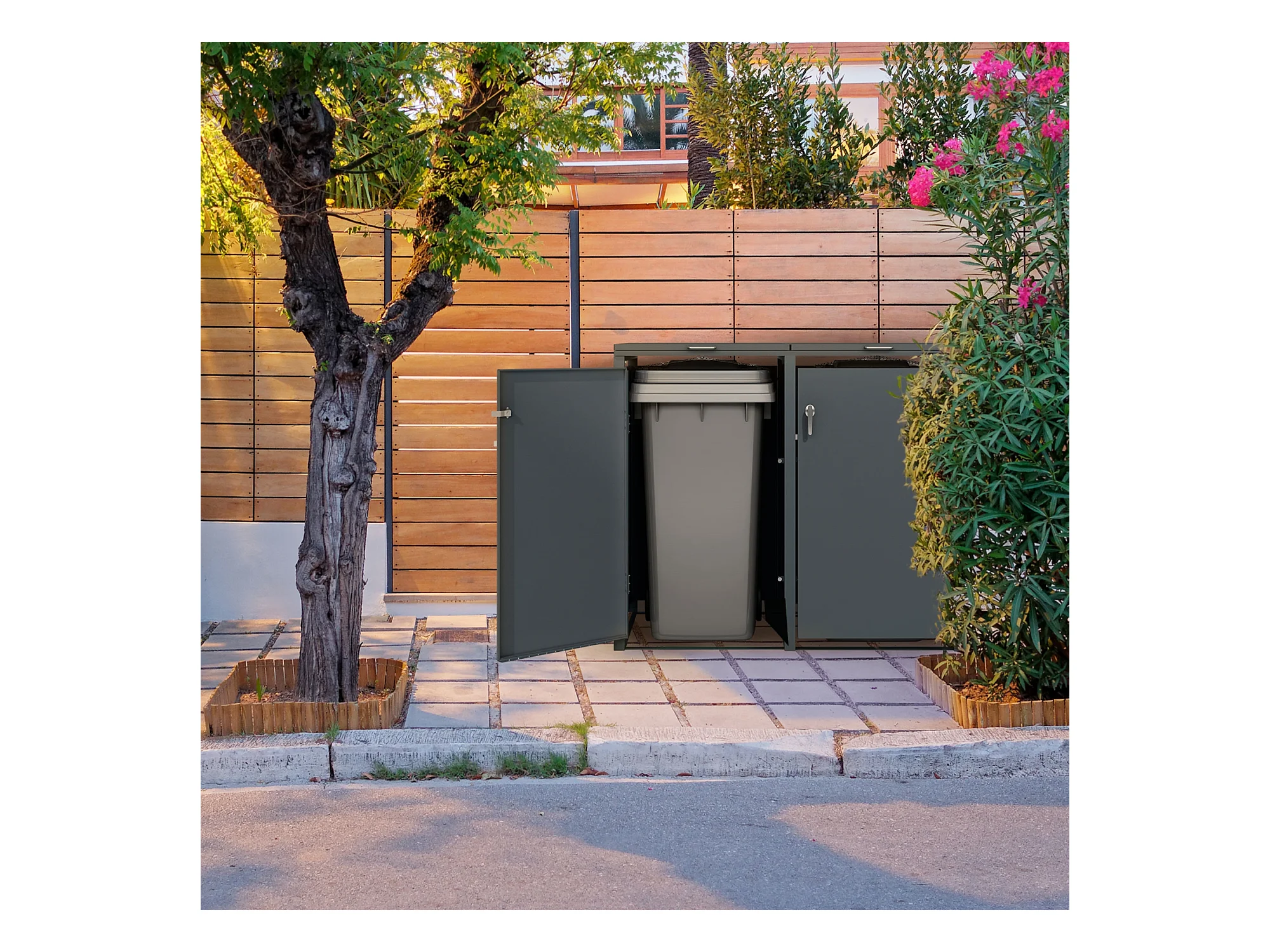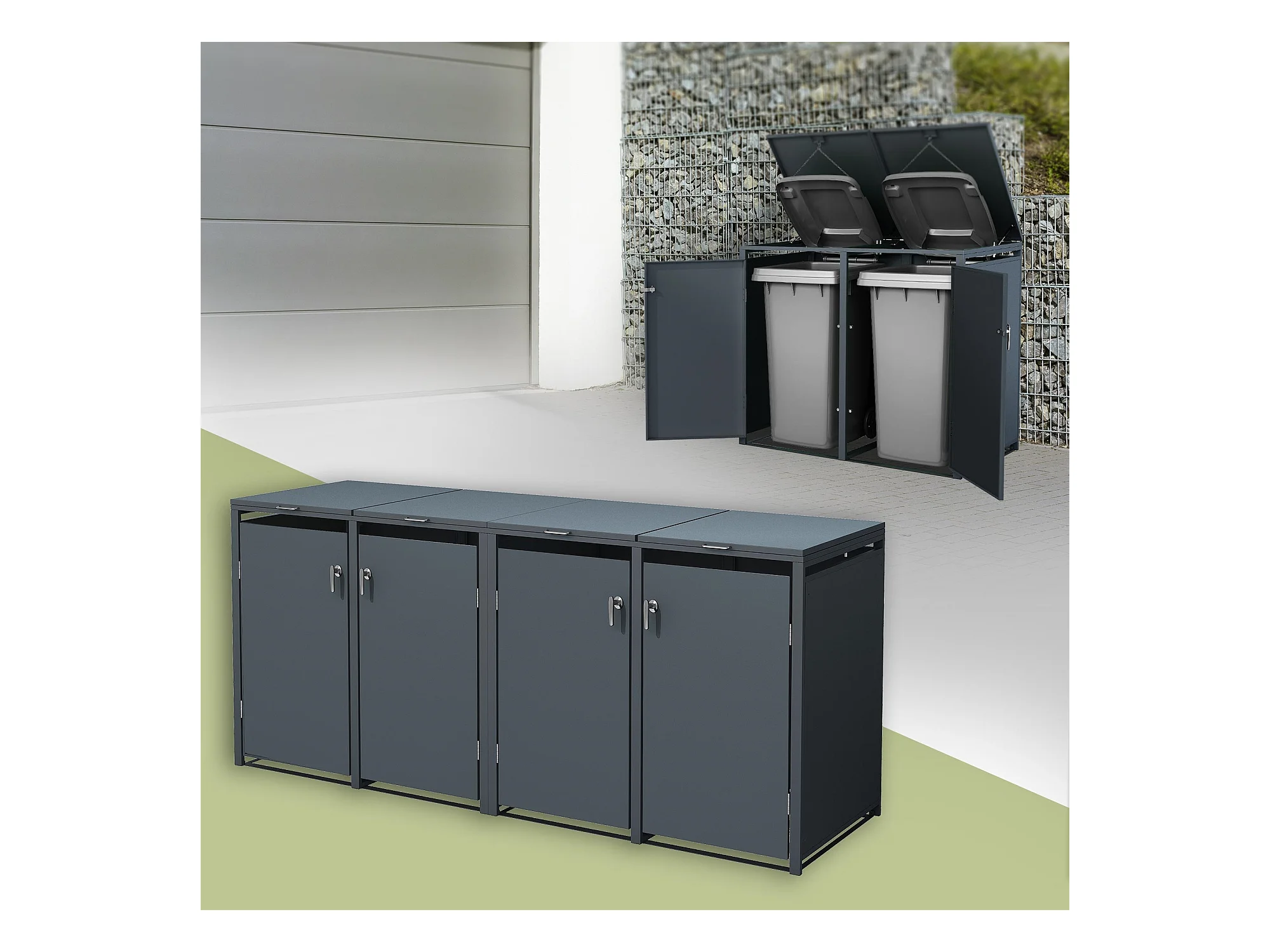 Abri pour 4 poubelles 264x80x116,3 cm capacité de 60 à 240 litres anthracite en acier avec couvercle rabattable et 4 portes résistant aux intempéries