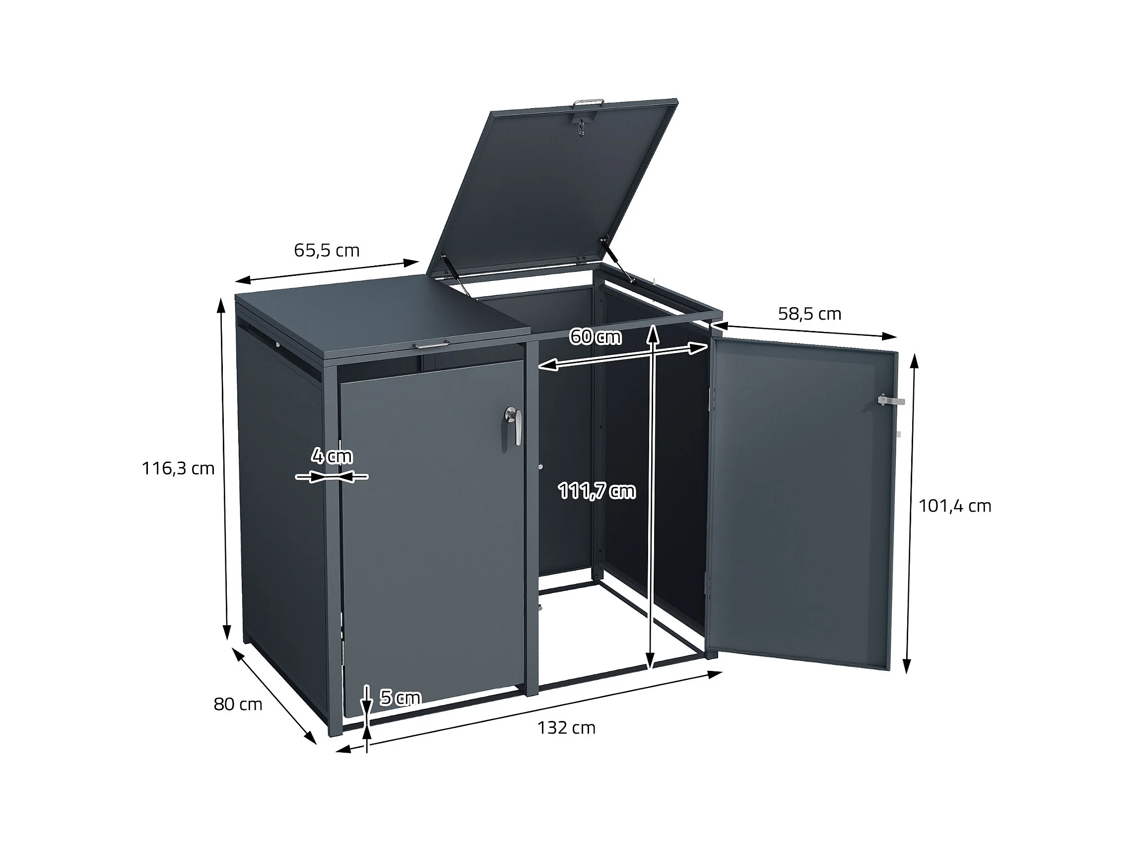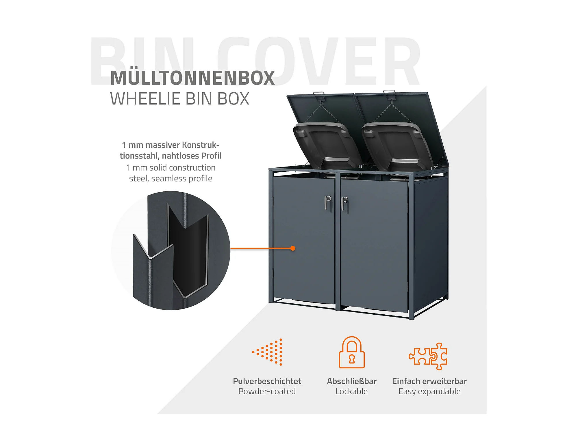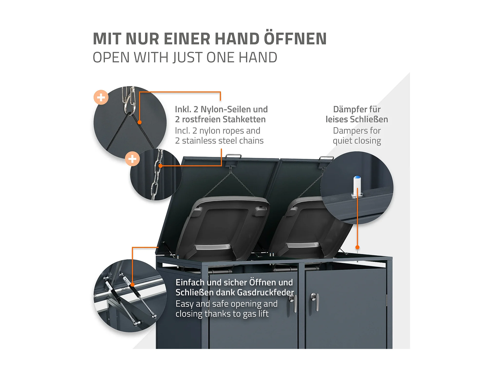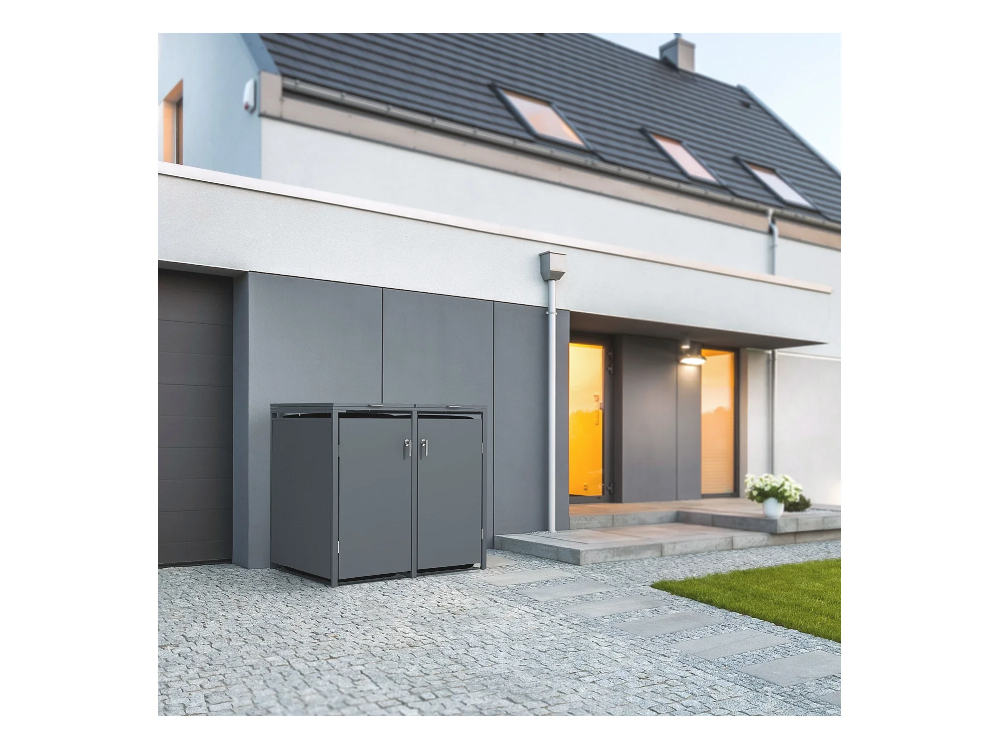 Abri pour 4 poubelles 264x80x116,3 cm capacité de 60 à 240 litres anthracite en acier avec couvercle rabattable et 4 portes résistant aux intempéries