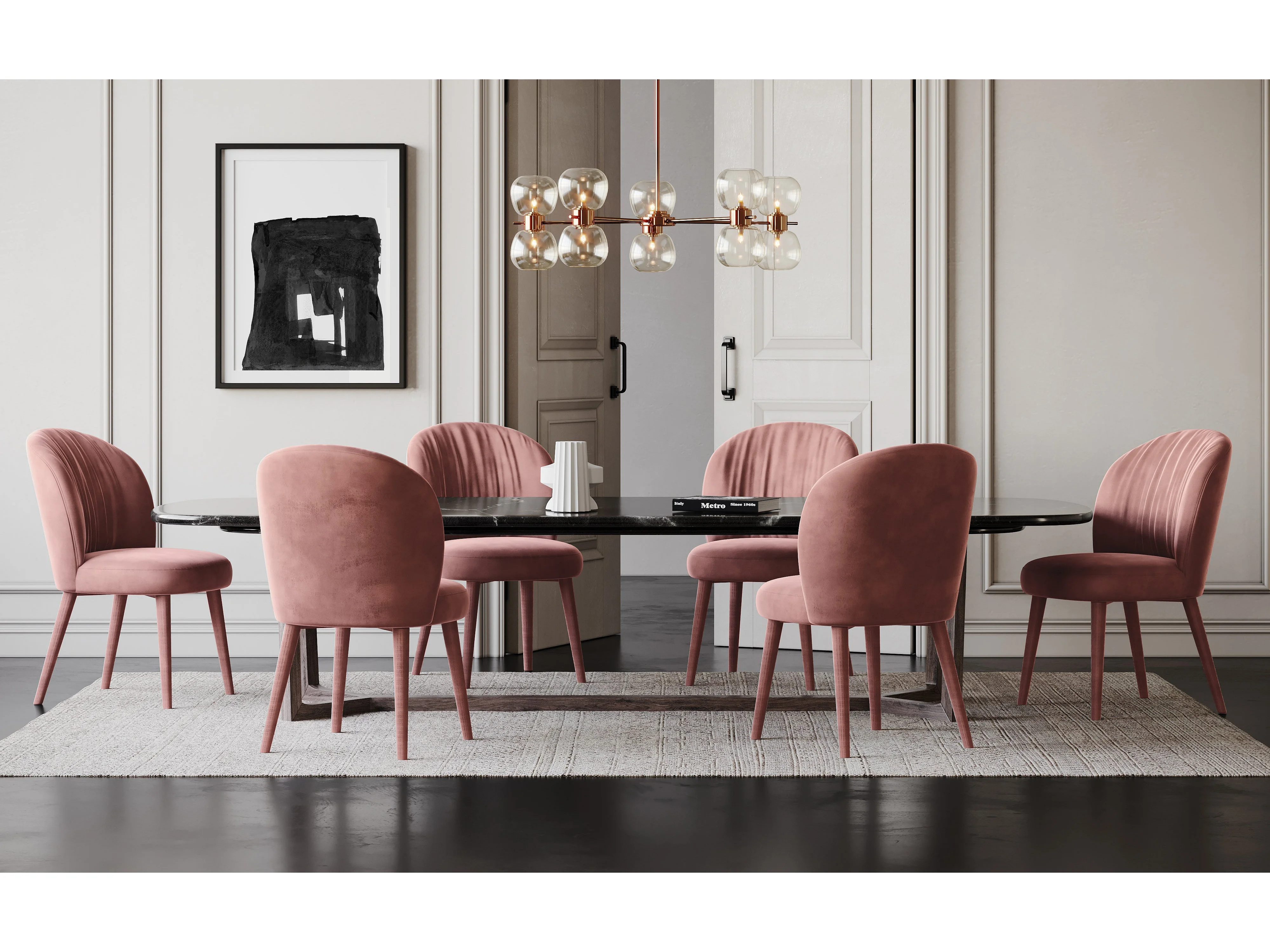 Lot de 2 chaises velours rose pieds velours
