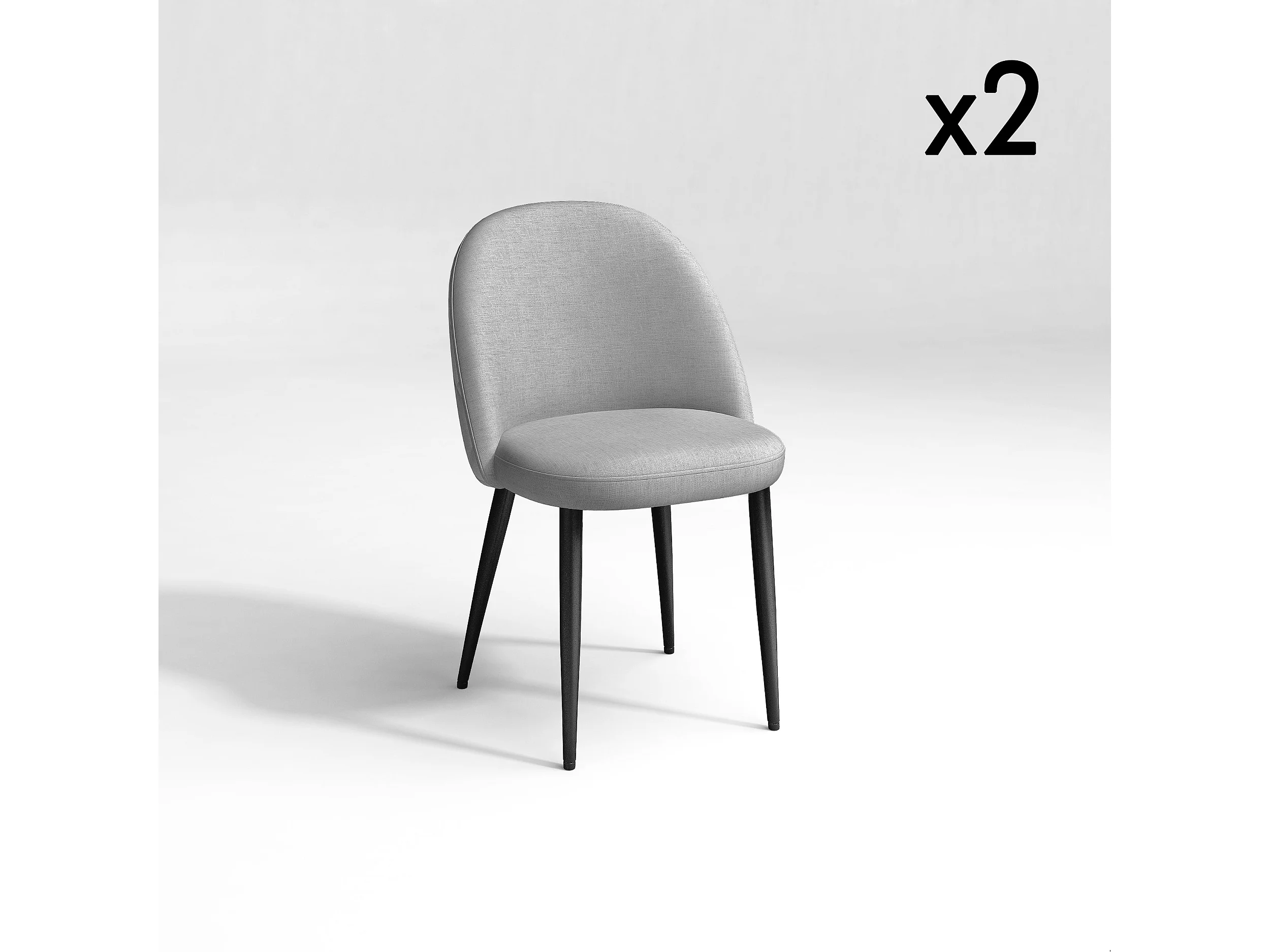 Lot de 2 chaises tissus gris clair passepoil gris clair pieds noir mat