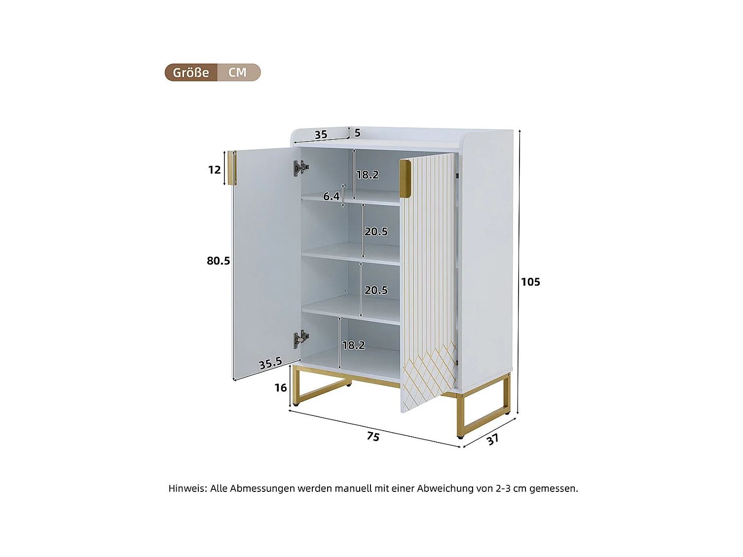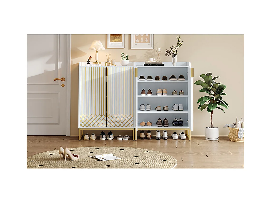 Meuble à chaussures moderne avec pieds métalliques dorés meuble de rangement avec portes blanc