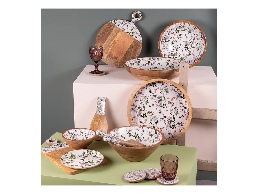 Plateau en manguier et émail Colibri 40 x 19 cm (Lot de 2)