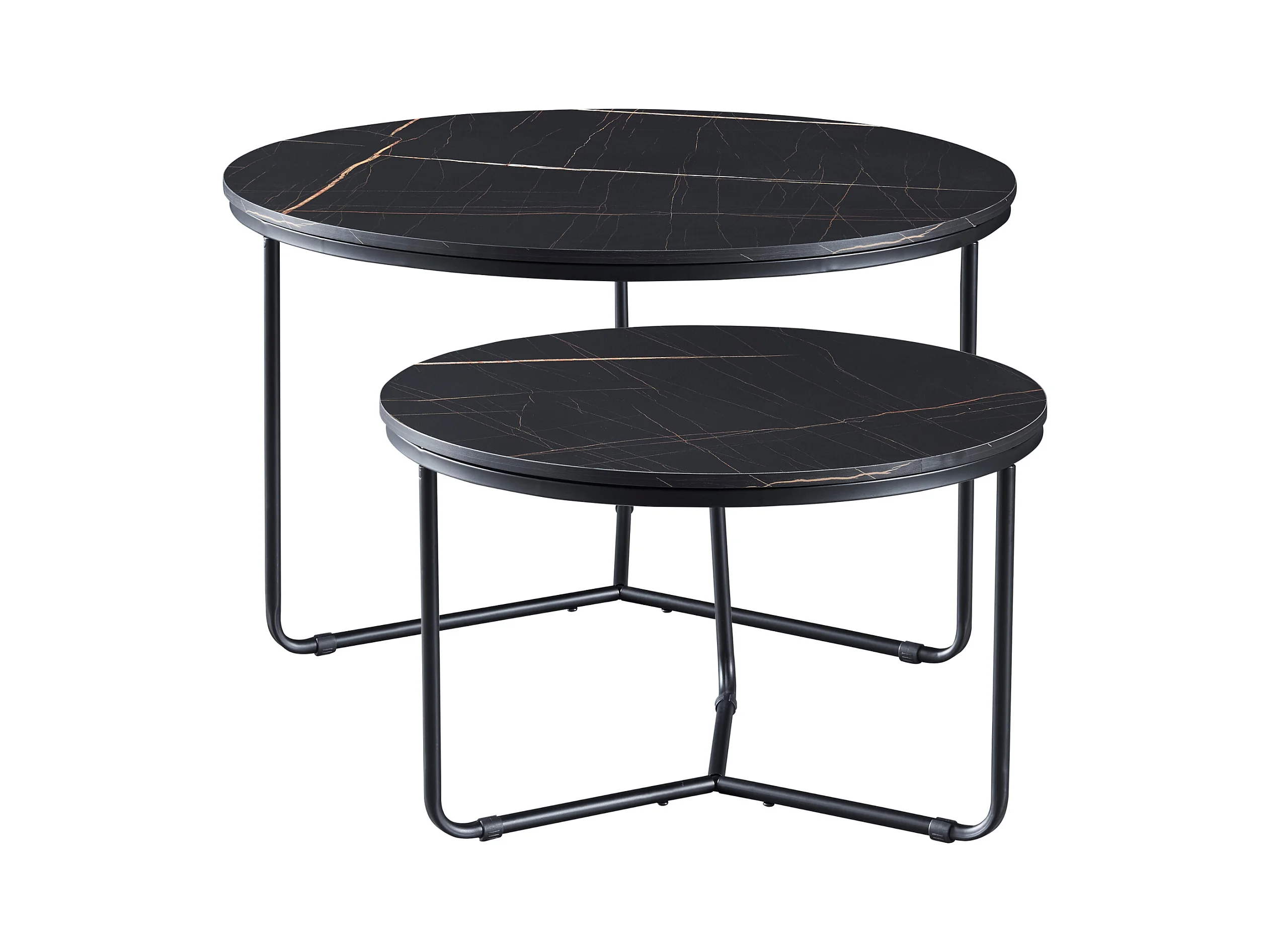 Set de 2 tables basses gigognes Poxdorf effet marbre noir [en.casa]