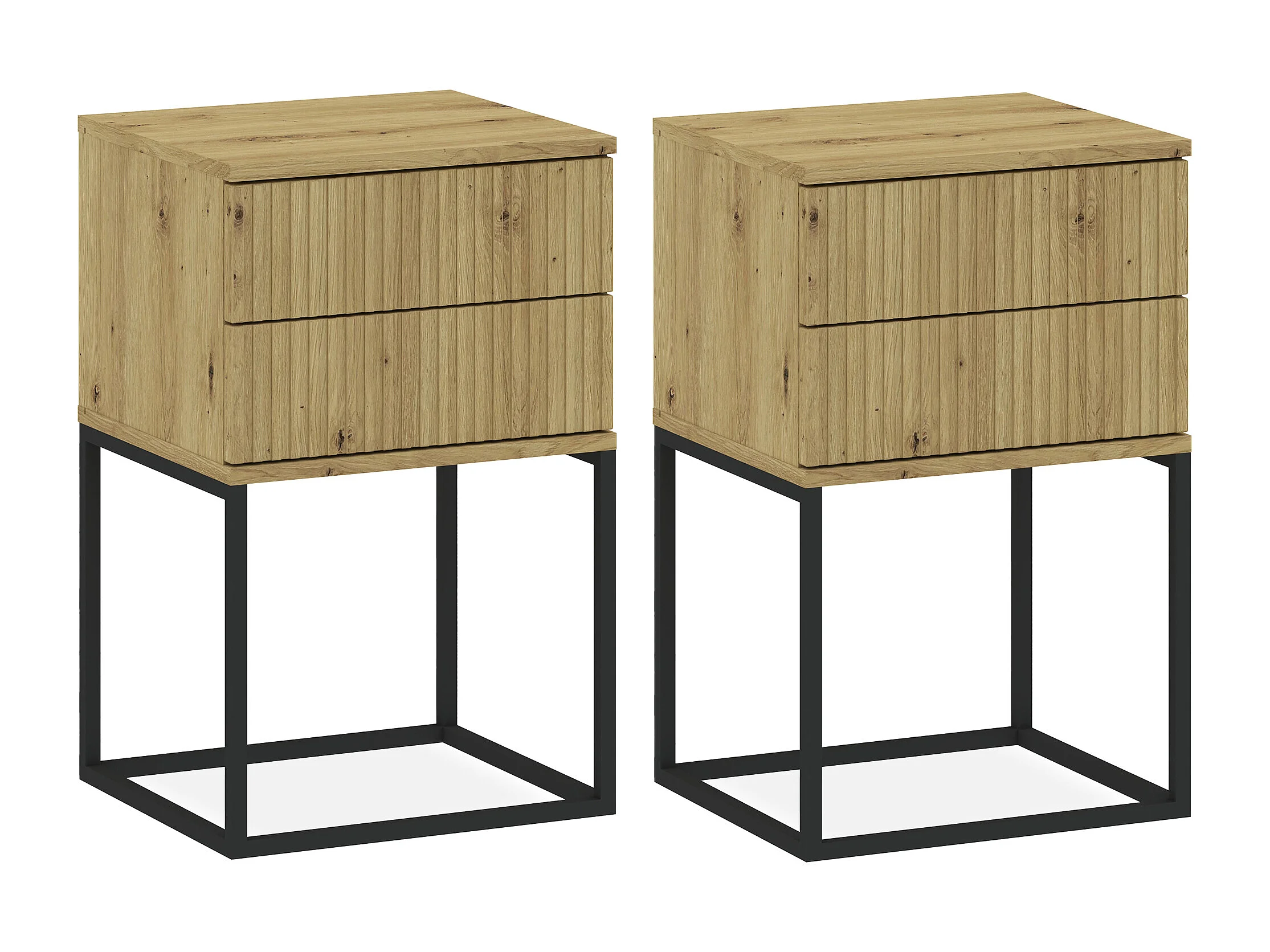 Set de 2 tables de chevet RECTUS couleur naturelle claire, dimensions 39x65x40 cm, design naturel