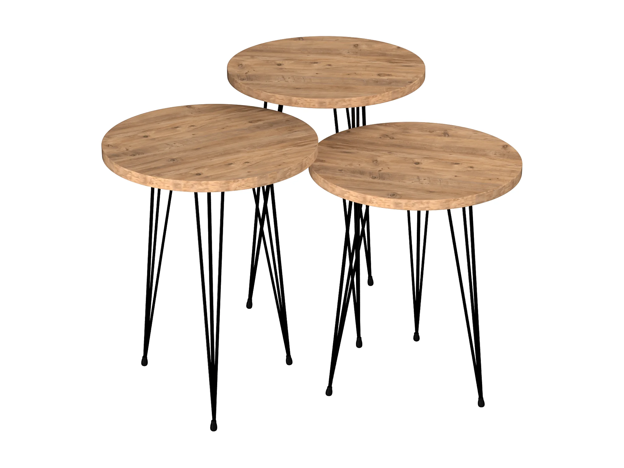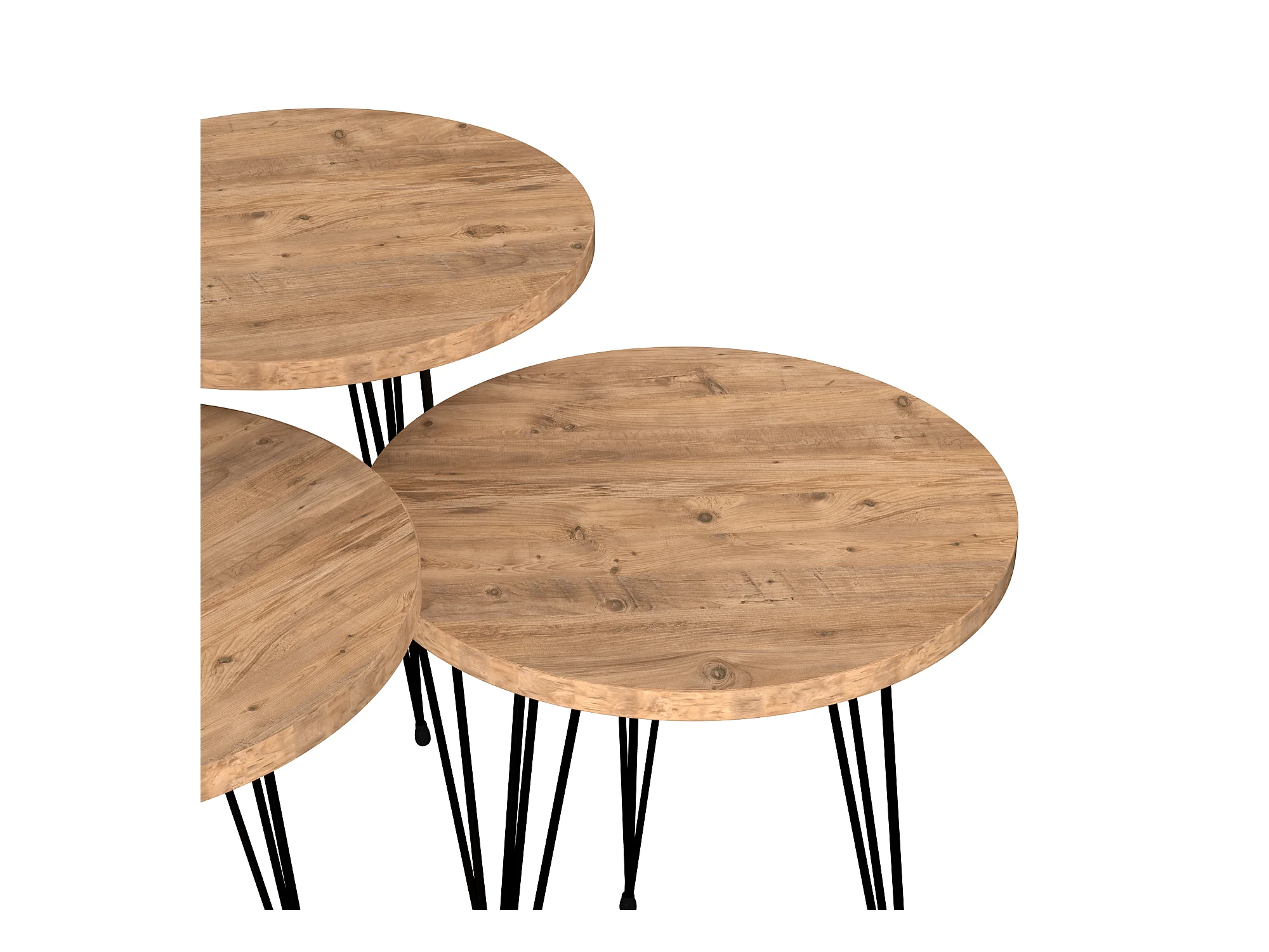 Set de 3 tables d'appoint Ry rondes gigognes naturel noir [en.casa]