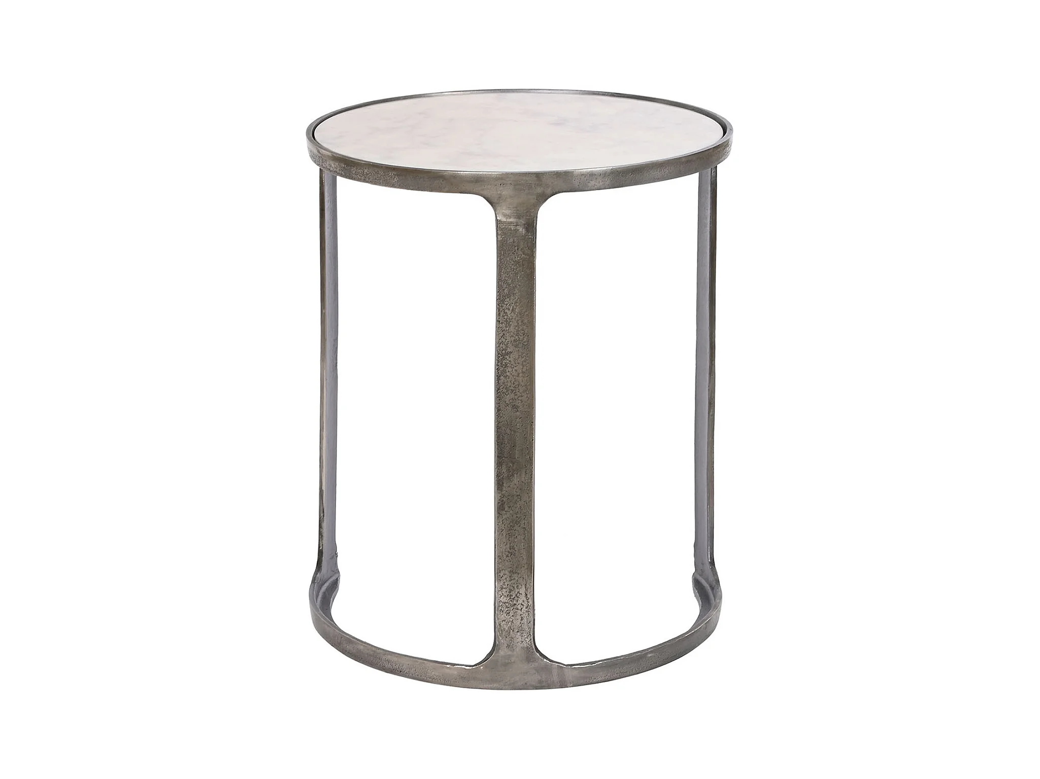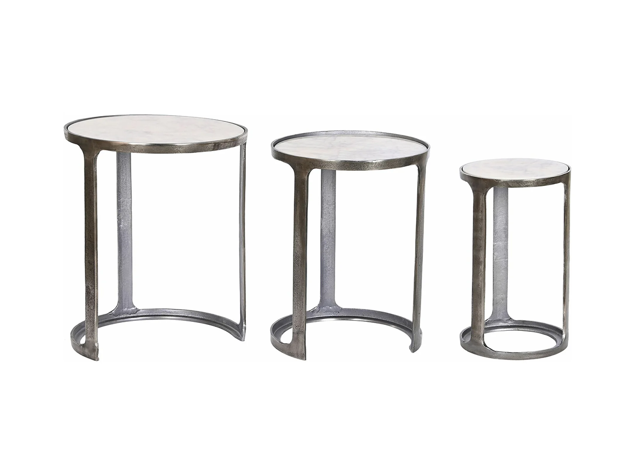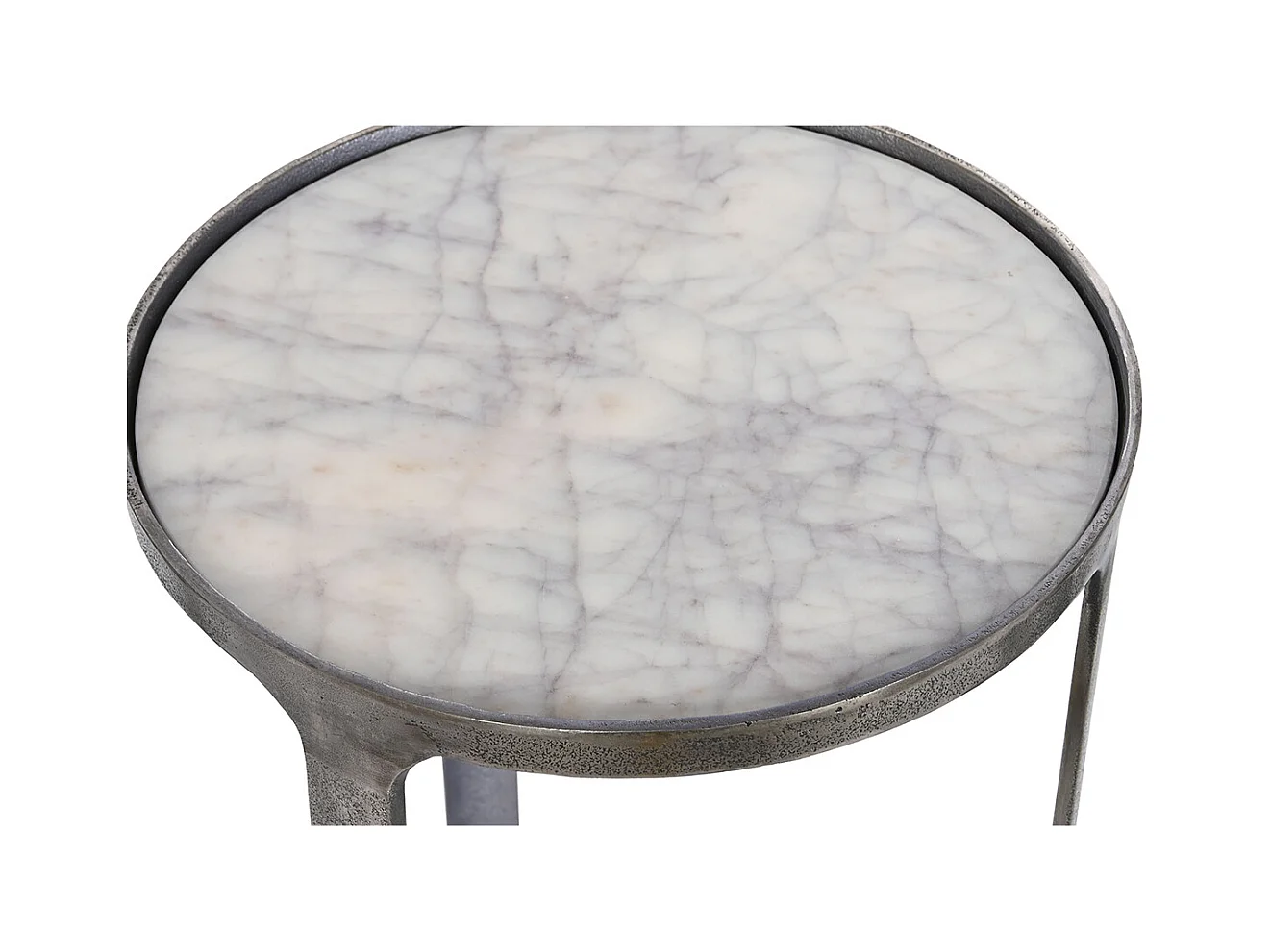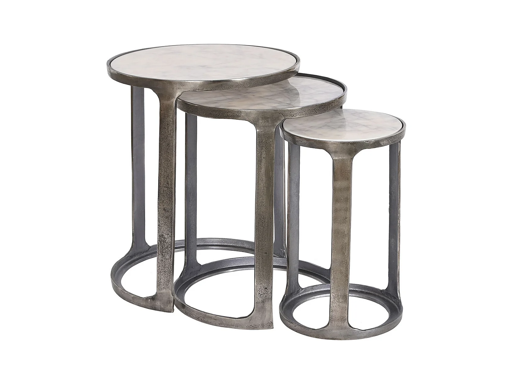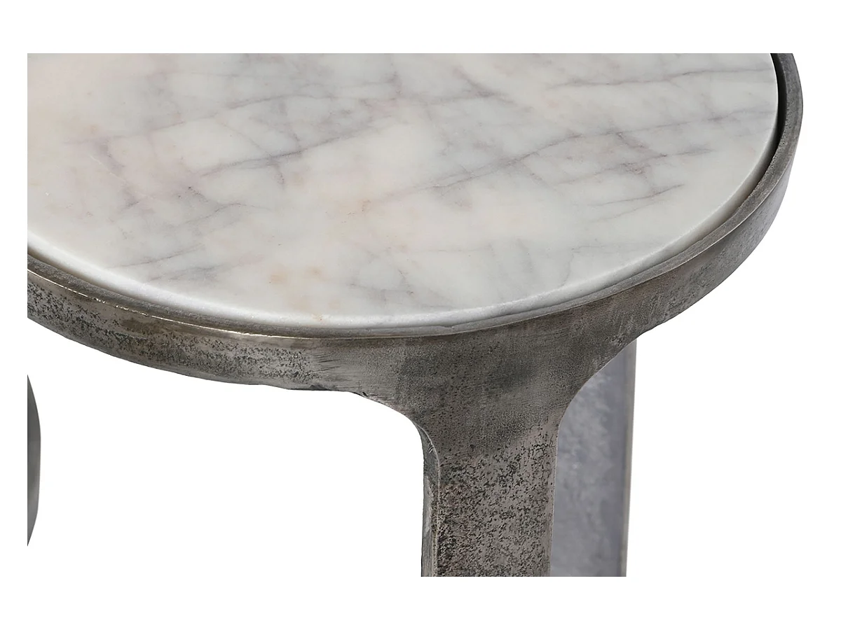Set de 3 tables d'appoints en marbre et aluminium coloris blanc, gris