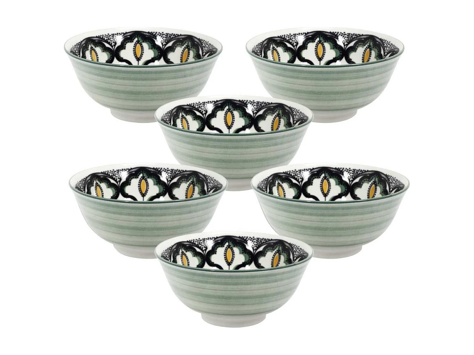 Set de 6 bols en céramique vert motif mandala (65cl) - AKKA