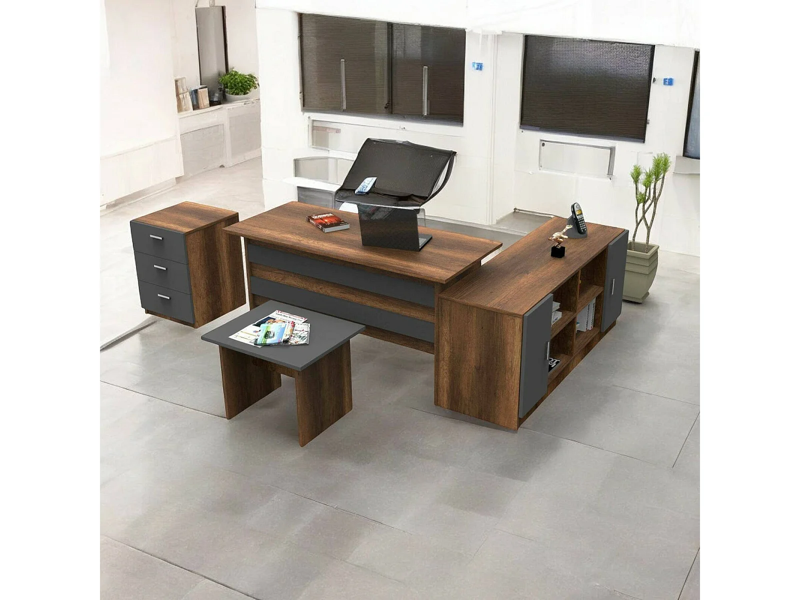 Set de bureau Dgiovannin, Composition du studio, Kit de bureau, Ensemble de bureau et de tiroirs, Noyer et Anthracite