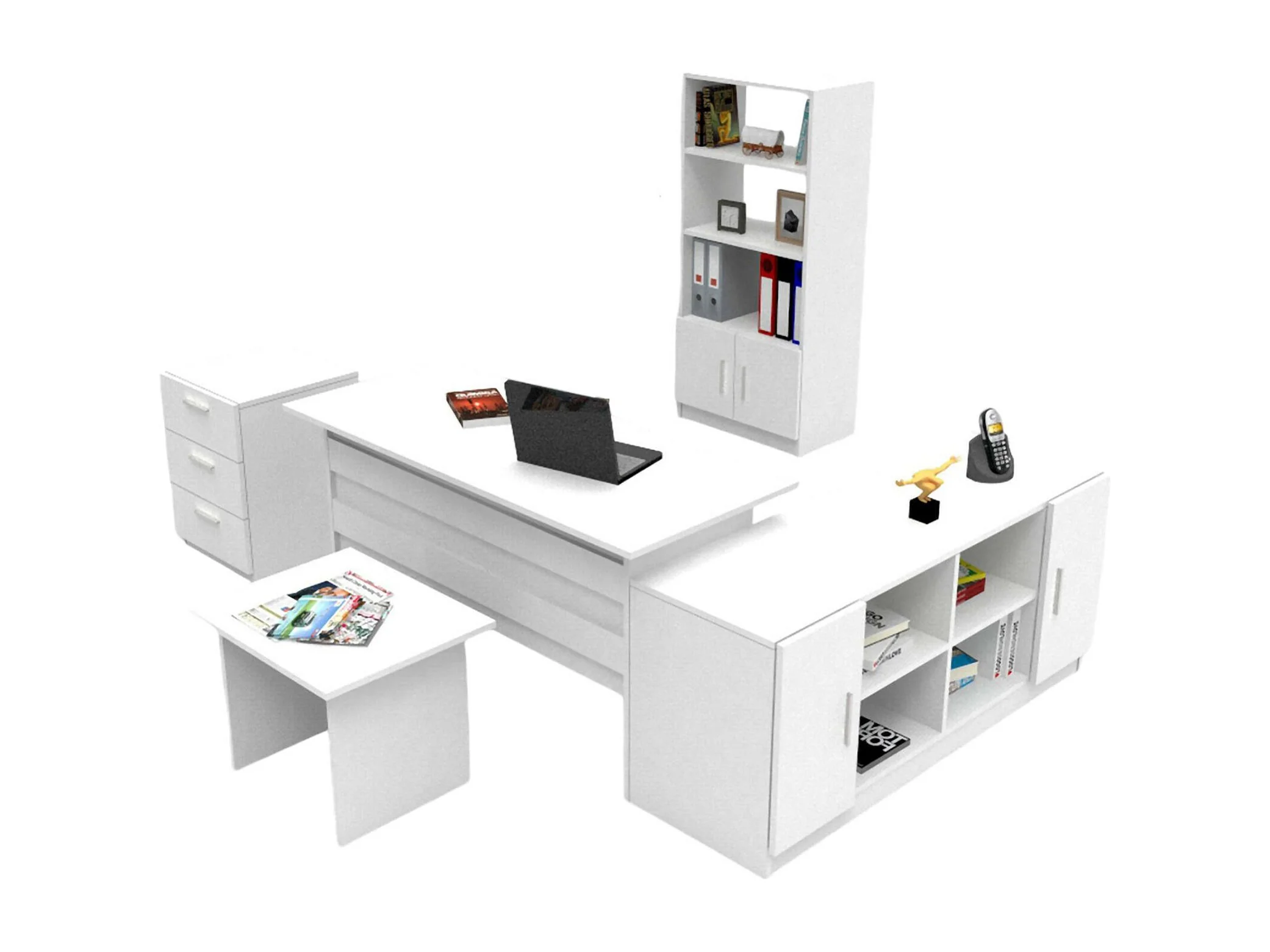 Set de bureau Drasmusse, Composition du studio, Kit de bureau, Ensemble de bureau et de tiroirs, Blanc