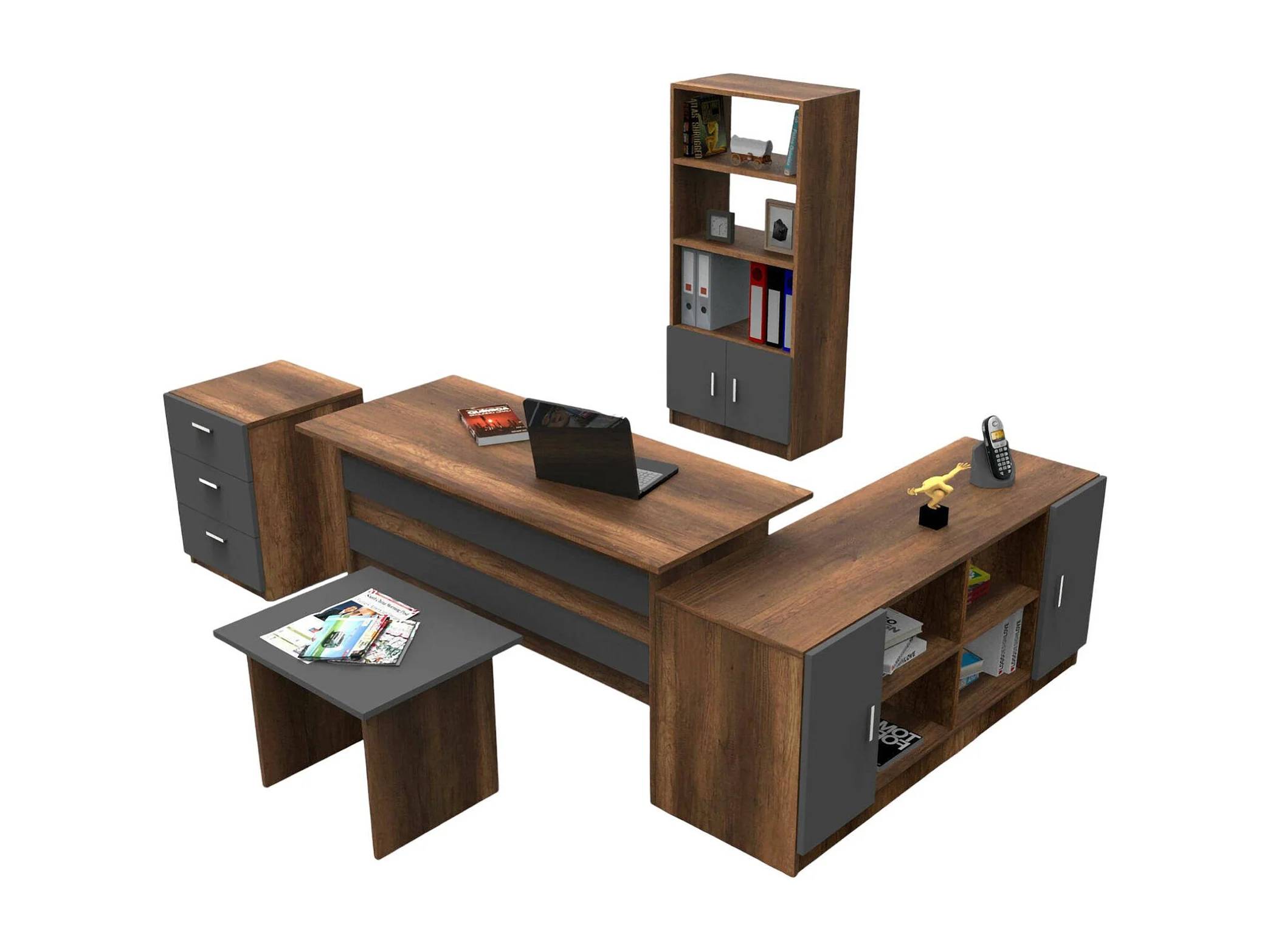 Set de bureau Drasmusse, Composition du studio, Kit de bureau, Ensemble de bureau et de tiroirs, Noyer et Anthracite