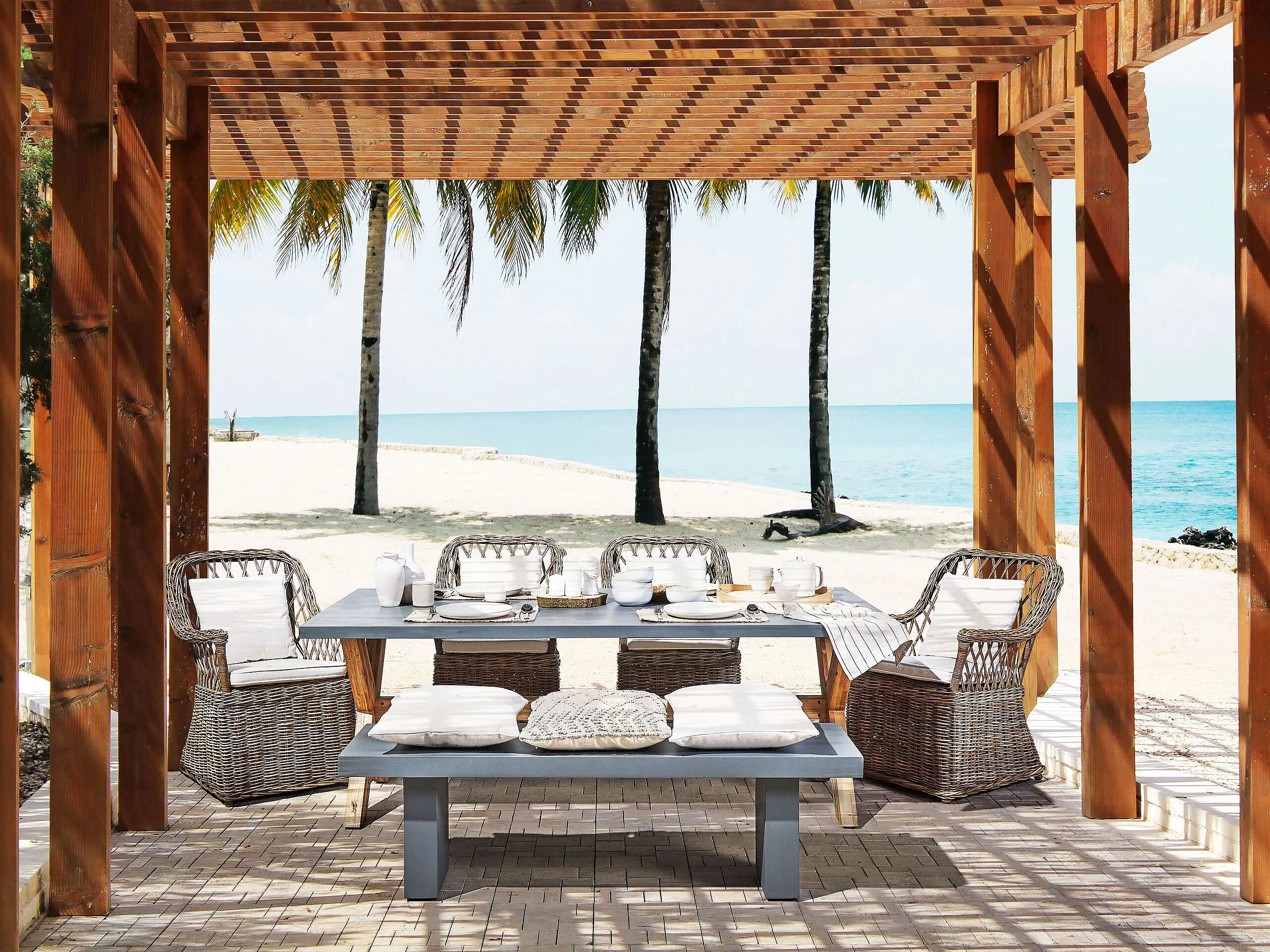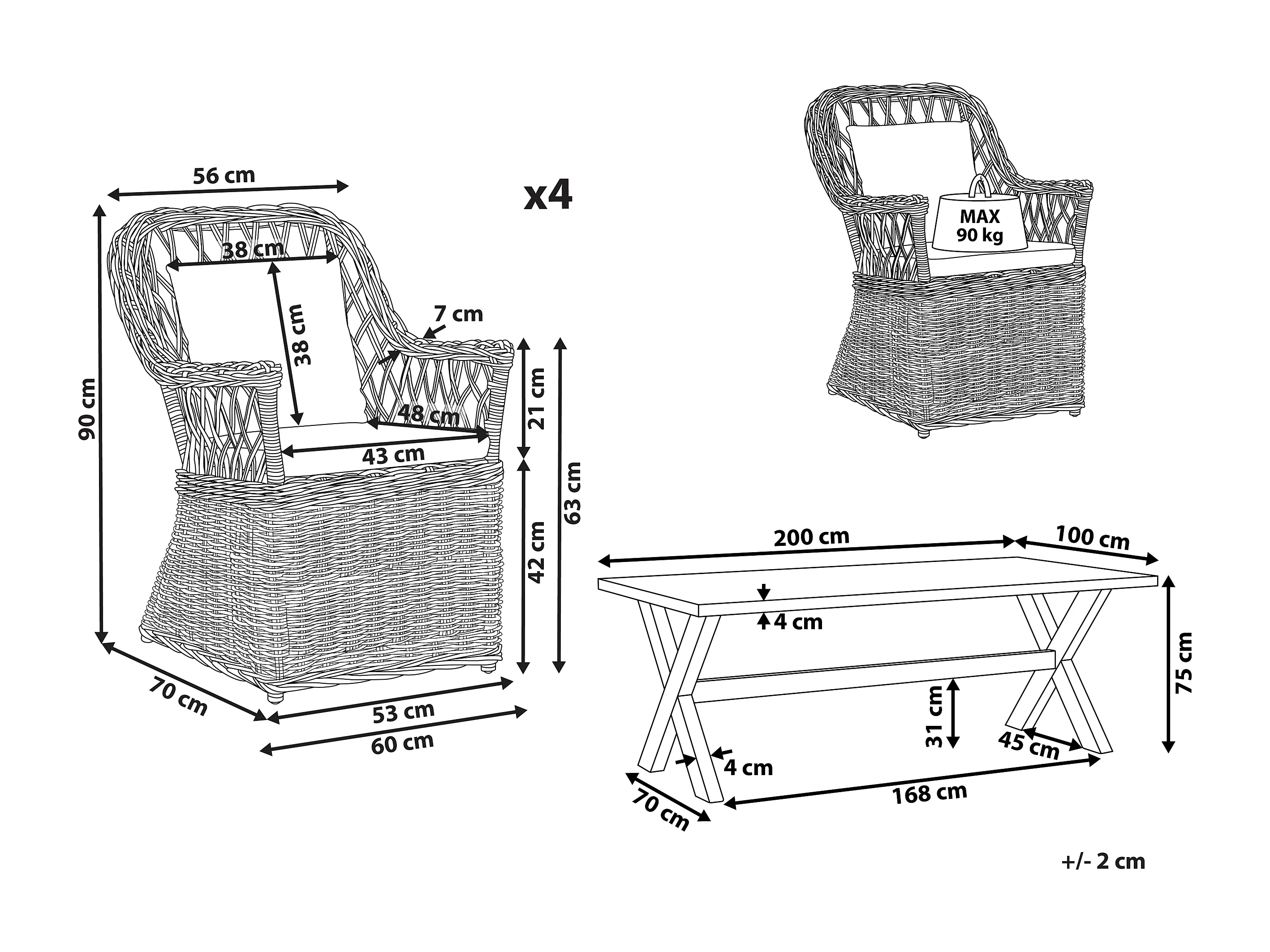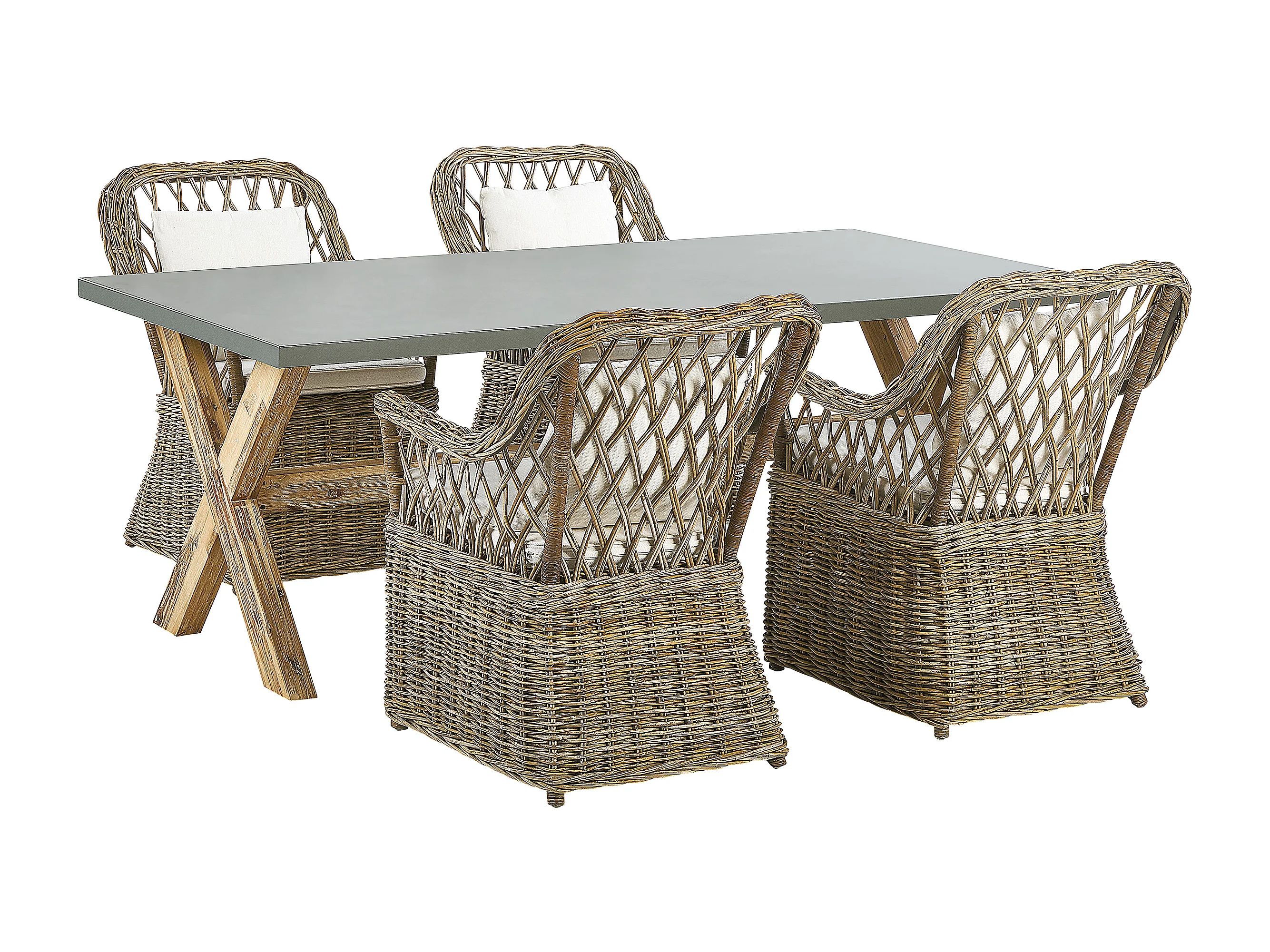 Salle à manger de jardin 4 places MAROS/OLBIA avec coussins Béton Marron clair