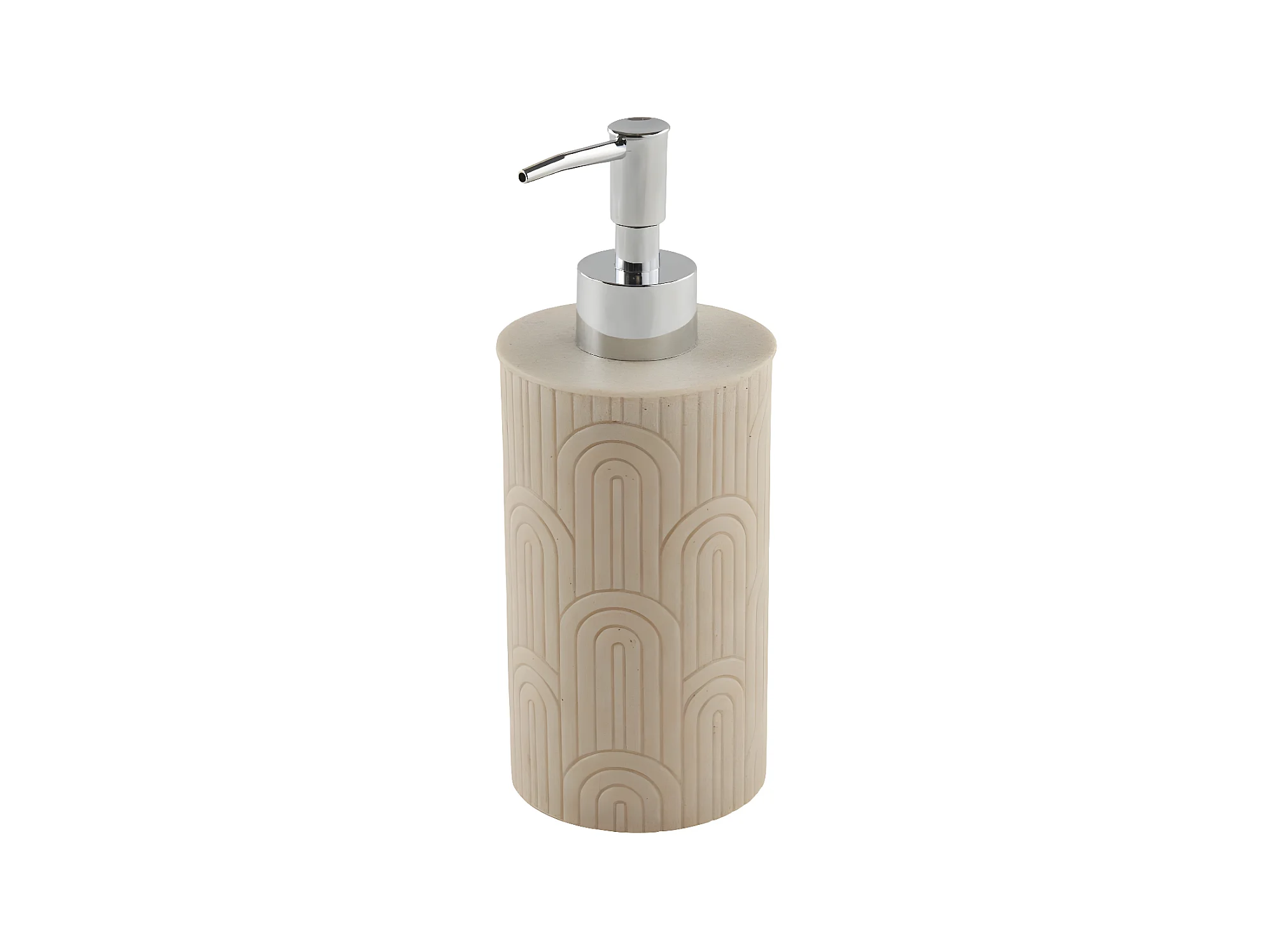 Ensemble d'accessoires salle de bain 3 pièces, set salle de bain avec distributeur de savon en polyrésine/bois coloris beige