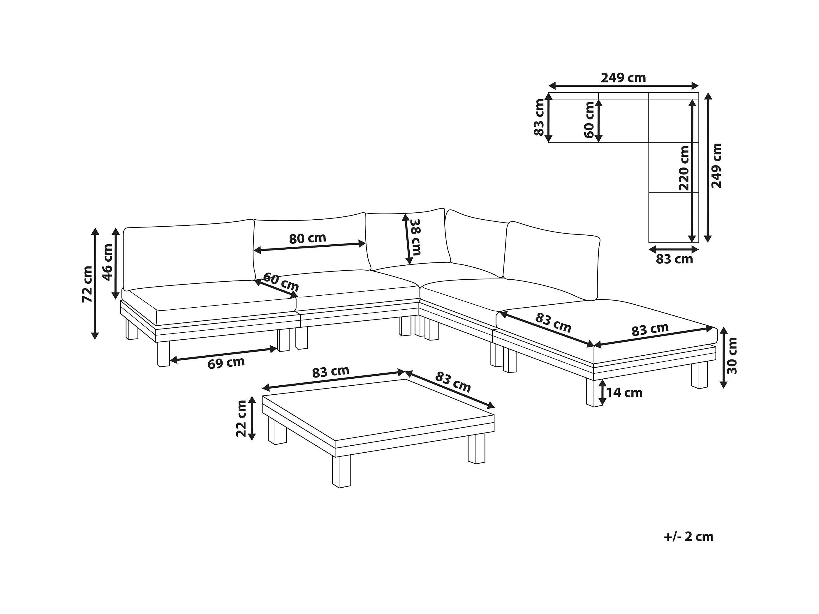 Ensemble de canapés d'angle de jardin 5 places FRAZZANO Bois d'acacia certifié Gris