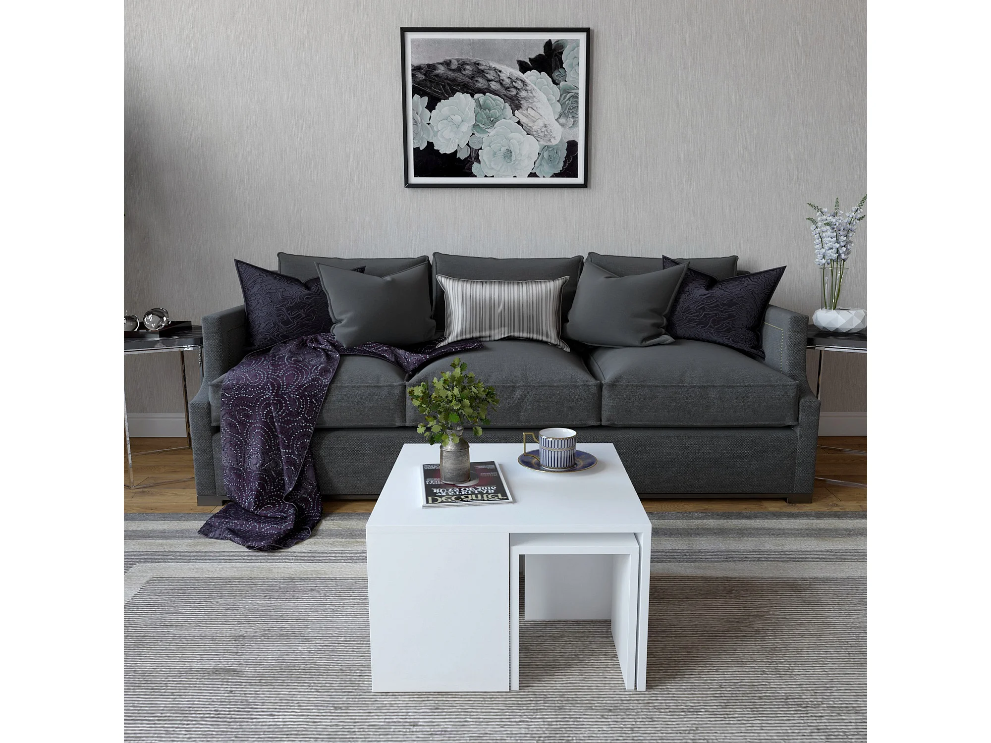 Set table d'appoint sena design 100% panneau de particules plaqué mélaminé en couleur blanc, 60x36,8x60