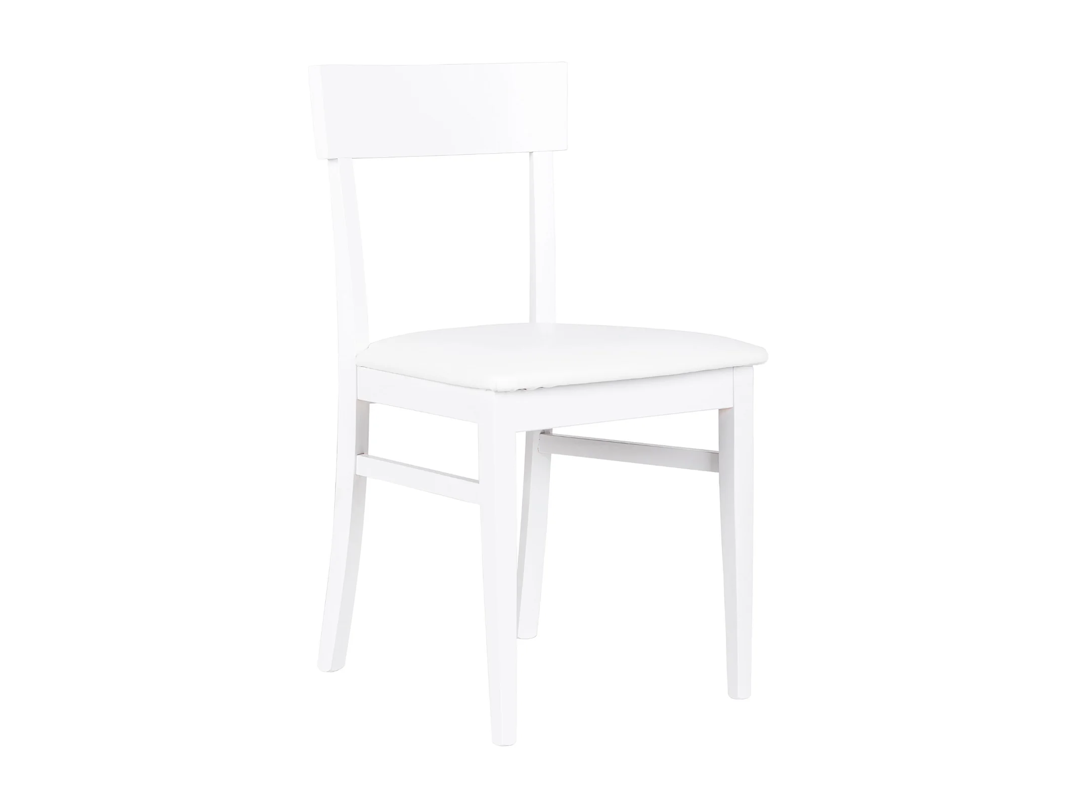 Set van 2 witte "Siena" woonkamerstoelen in gelakt hout, modern gestoffeerd, 44x45 cm, 82h