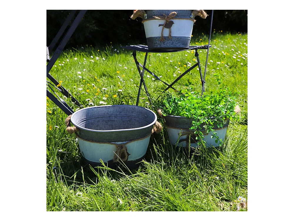 ~Set3 jardinières extérieures bassines sceaux métal gris 21.5-26-29cm