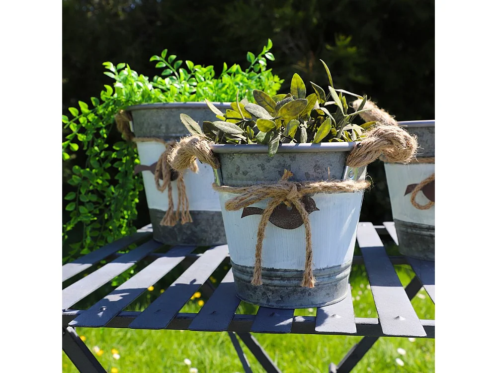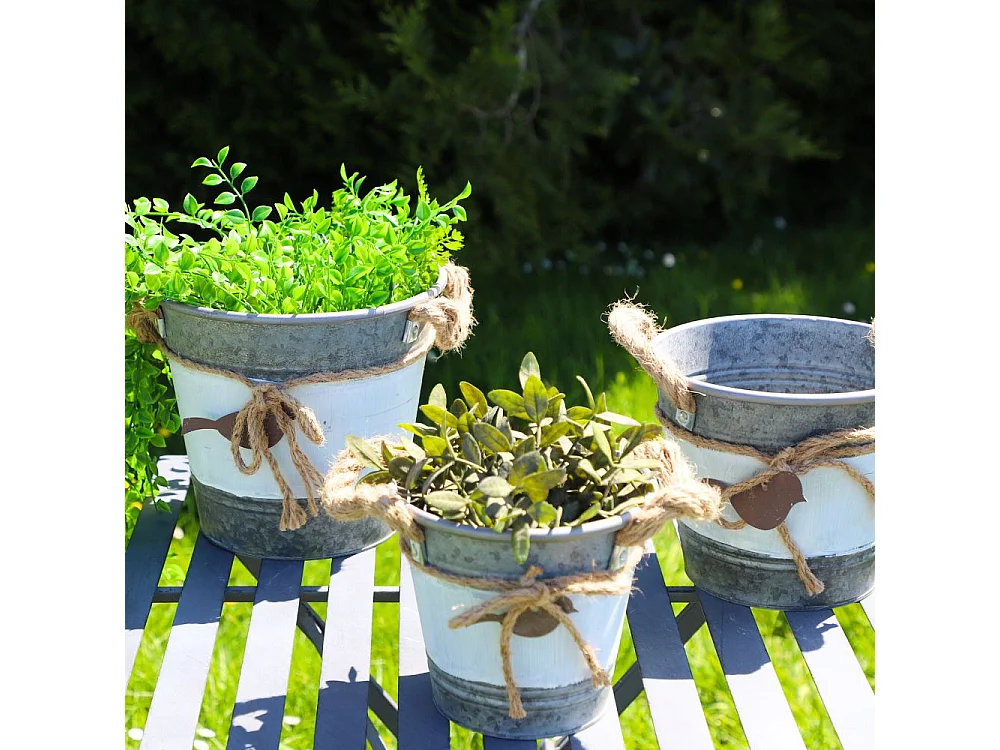 ~Set3 jardinières extérieures sceaux bassines métal gris 11-13.5-15 cm