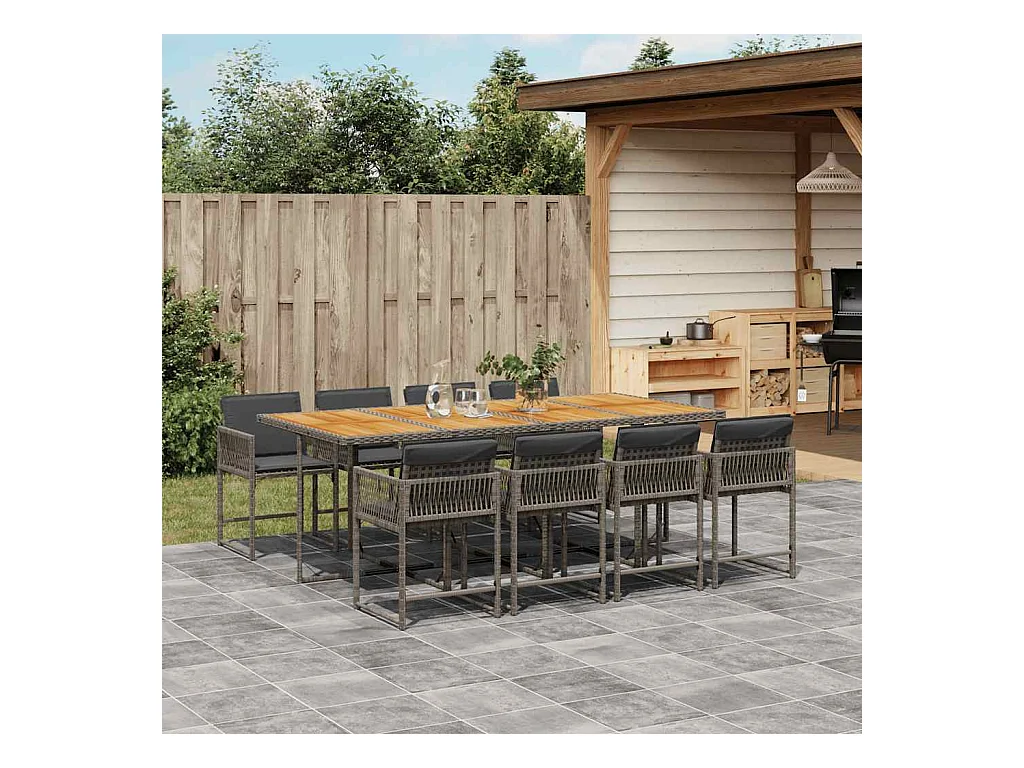 Sharif Ensemble à manger de jardin 9 pcs coussins gris résine tressée