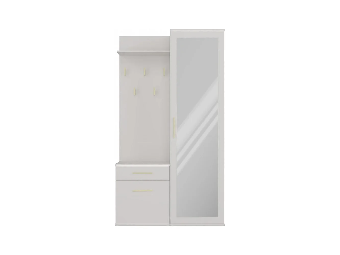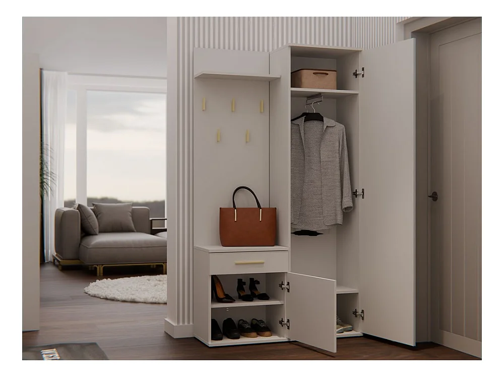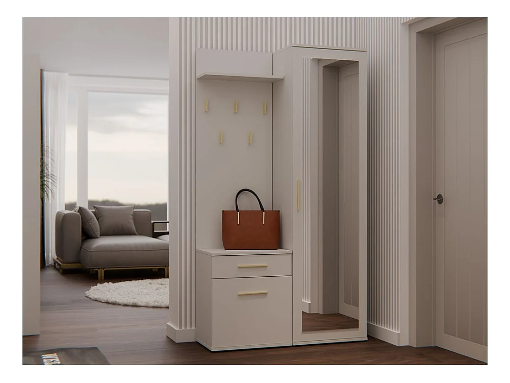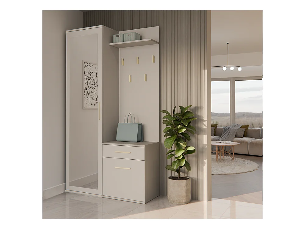 SHEILA - Vestiaire d'entrée avec miroir - Armoire + porte-manteau - Rangements chaussures - Beige