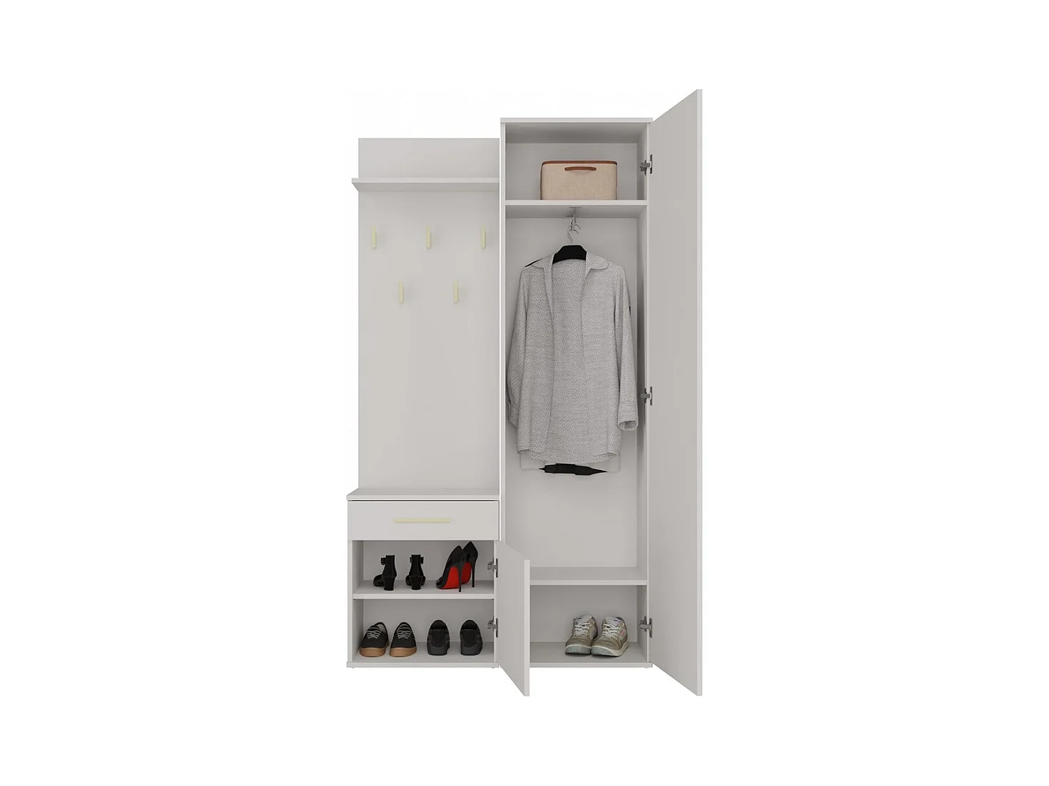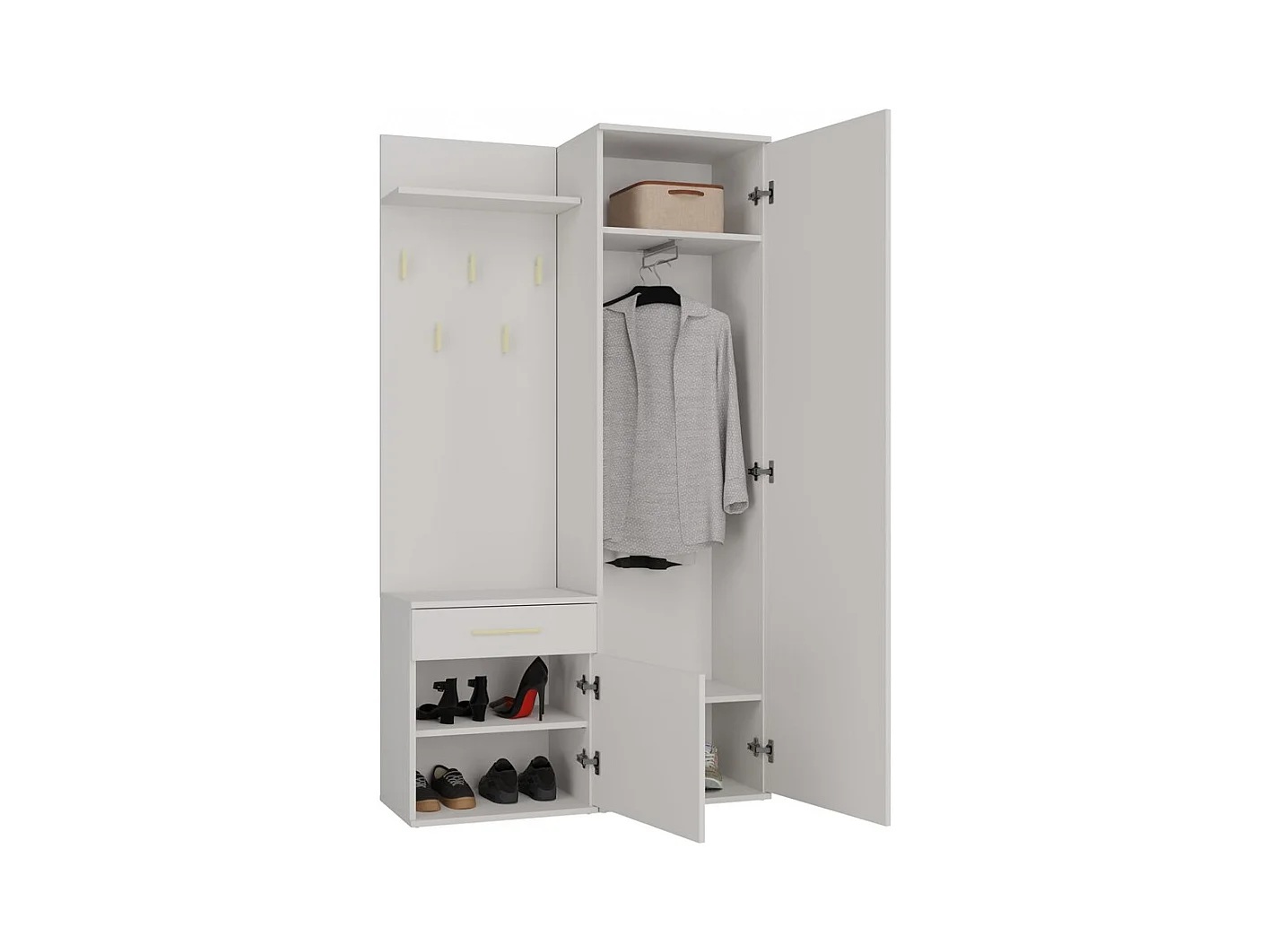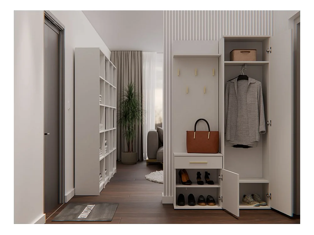 SHEILA - Vestiaire d'entrée avec miroir - Armoire + porte-manteau - Rangements chaussures - Beige