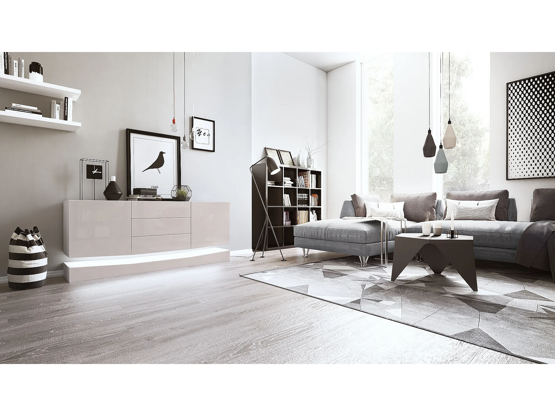 Sideboard City, blanc mat/gris sable haute brillance y compris LED - Commode moderne pour votre salon (178 x 72 x 38 cm)