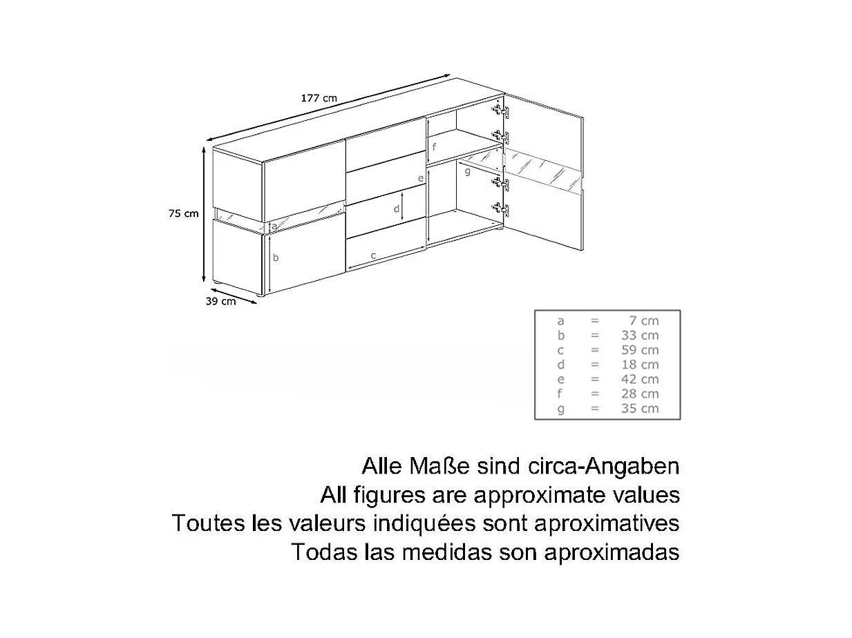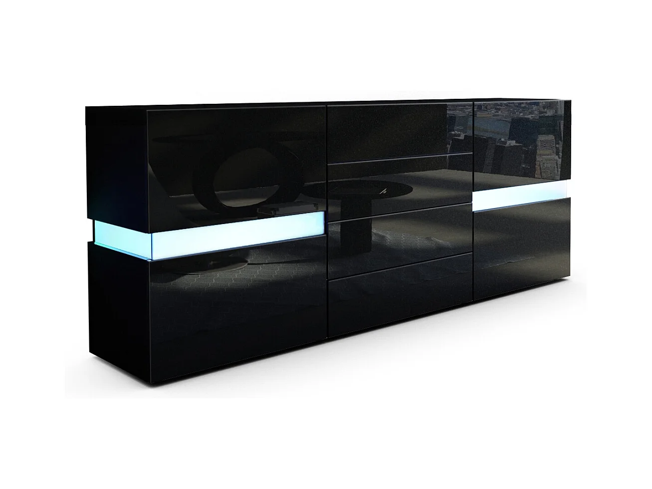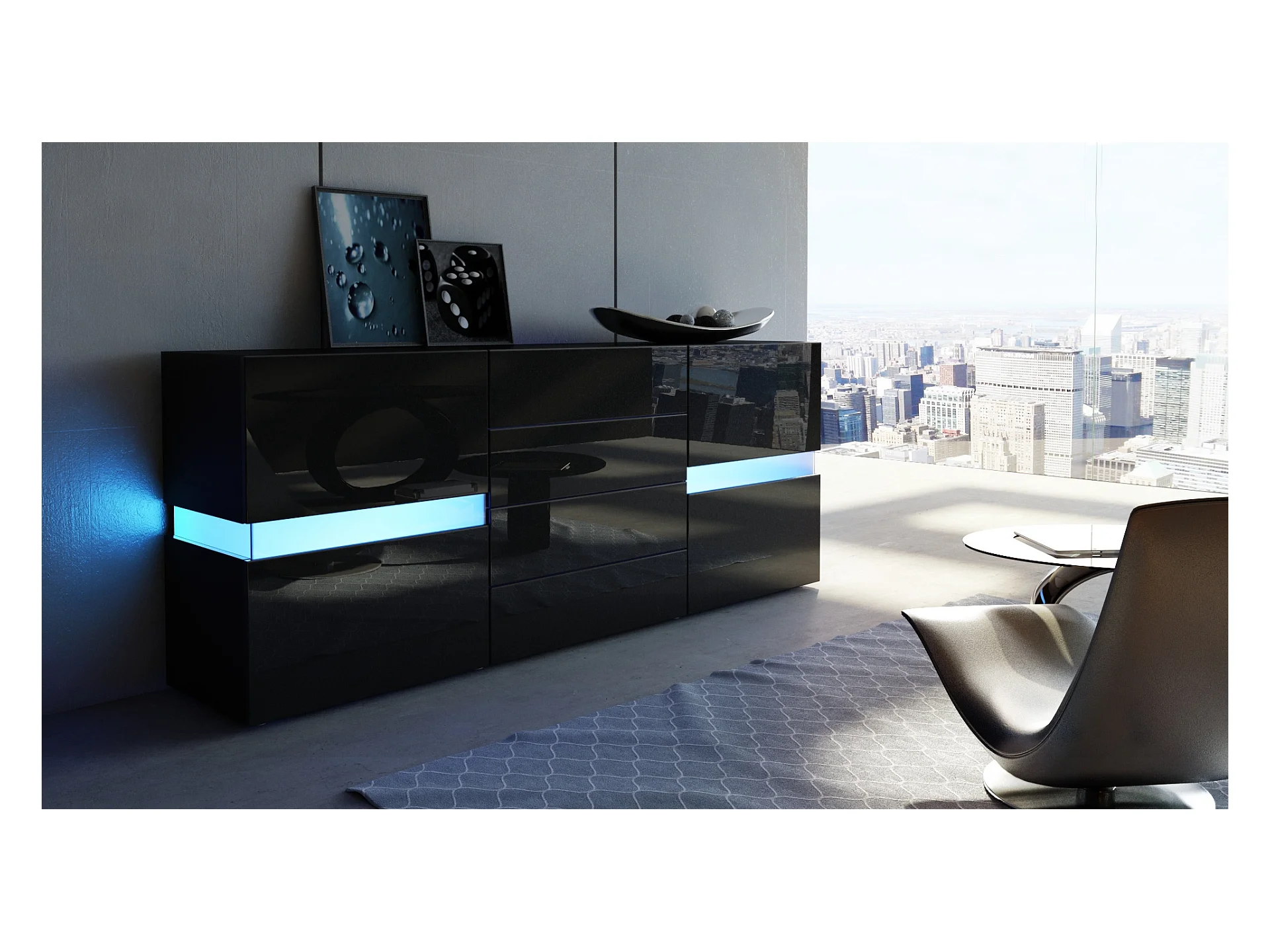 Sideboard Flow, noir mat/noir haute brillance y compris LED - Commode moderne avec vitrage Ambient Light pour votre espace de vie (177 x 75 x 39 cm)
