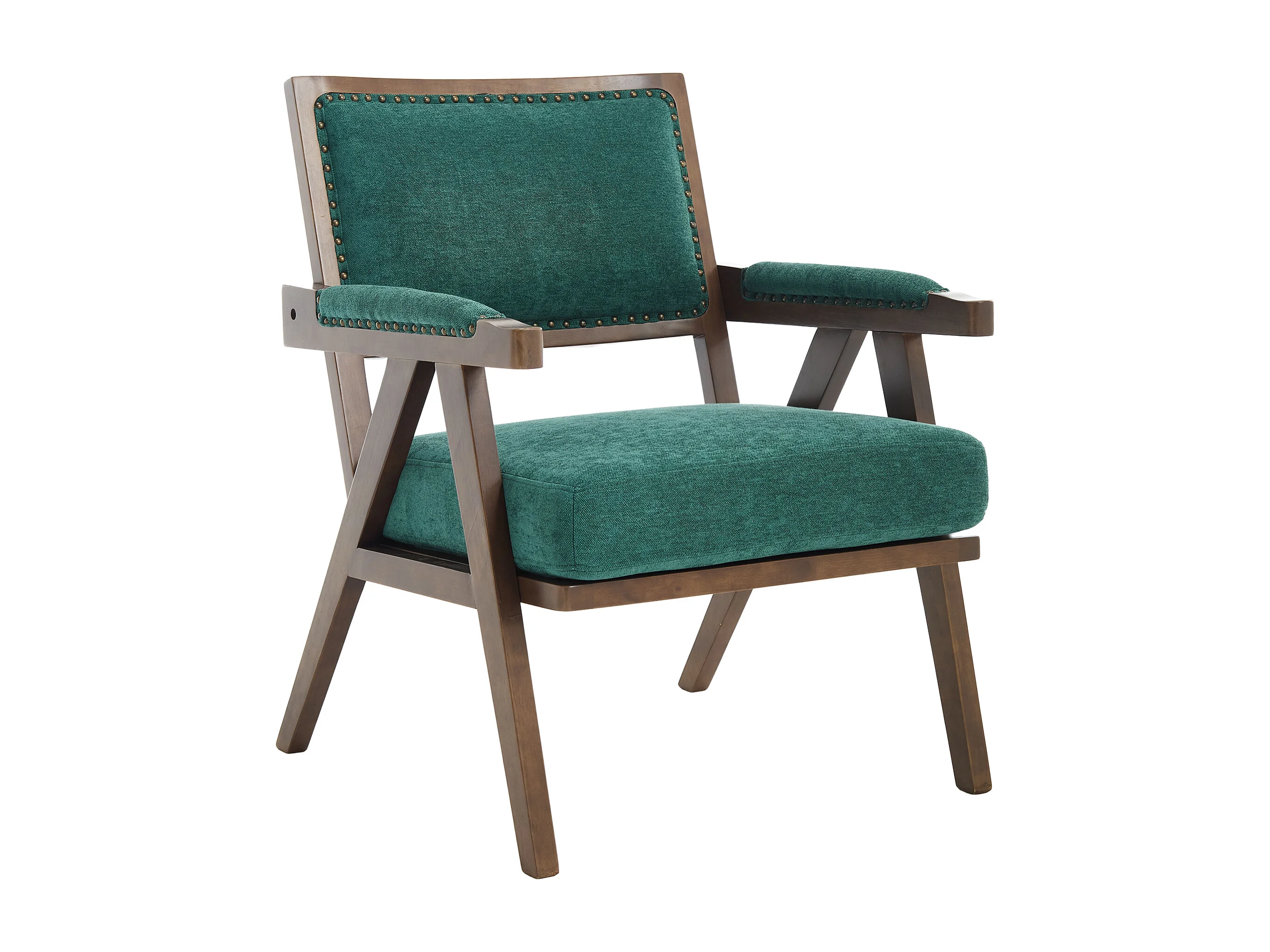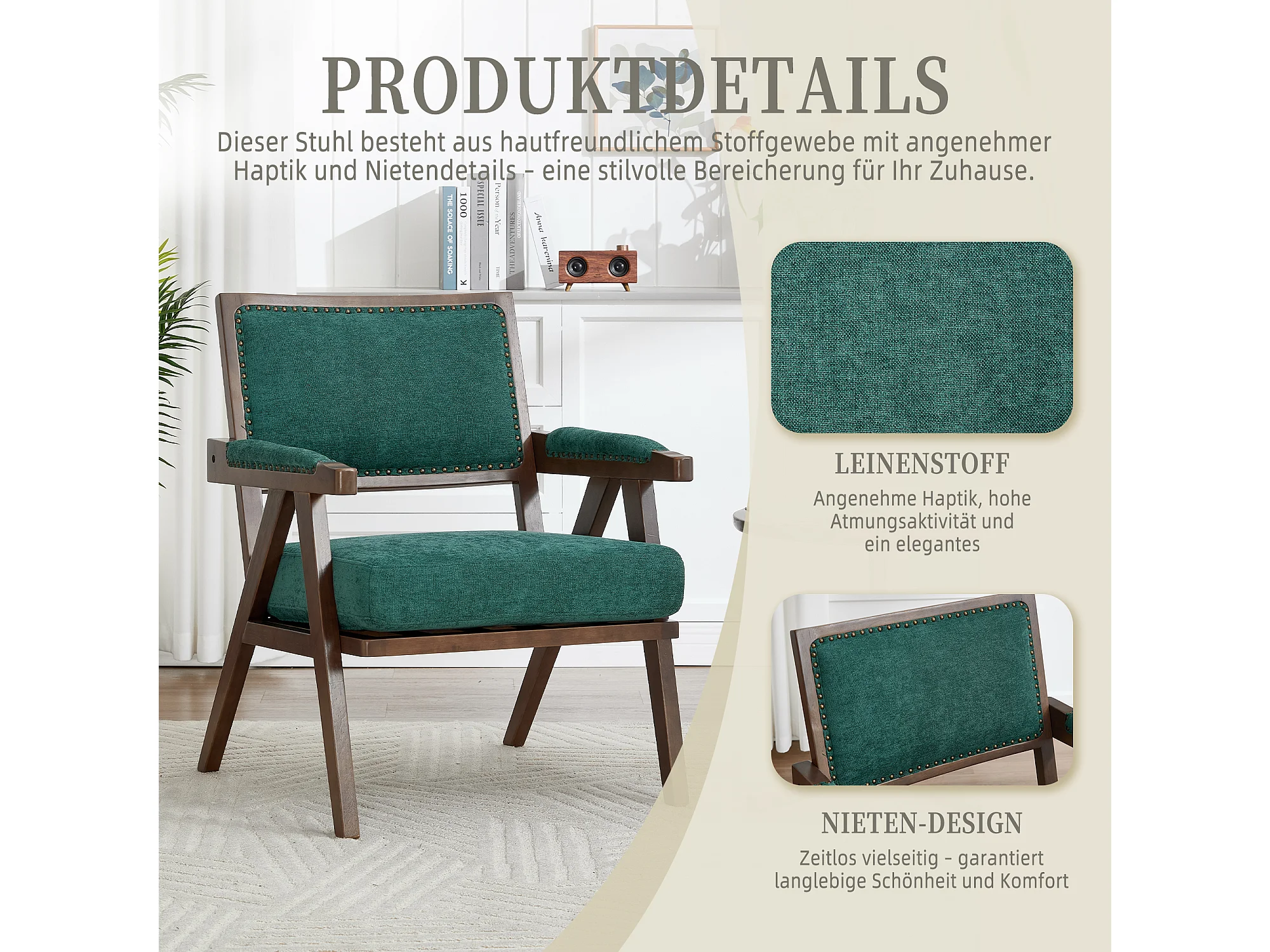 Sienna - Fauteuil Droit en Coton-Lin et Bois Massif - Fauteuil Vintage avec Dossier Ergonomique - Vert - Confortable pour Salon/Chambre/Bureau