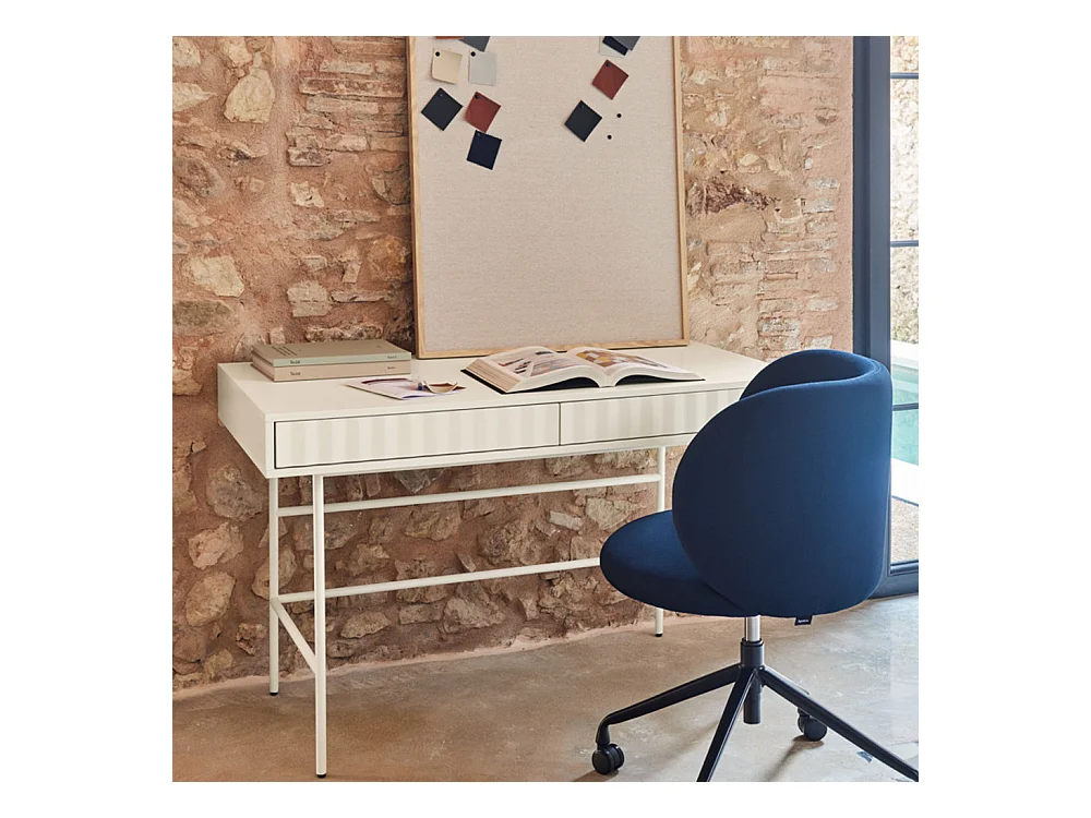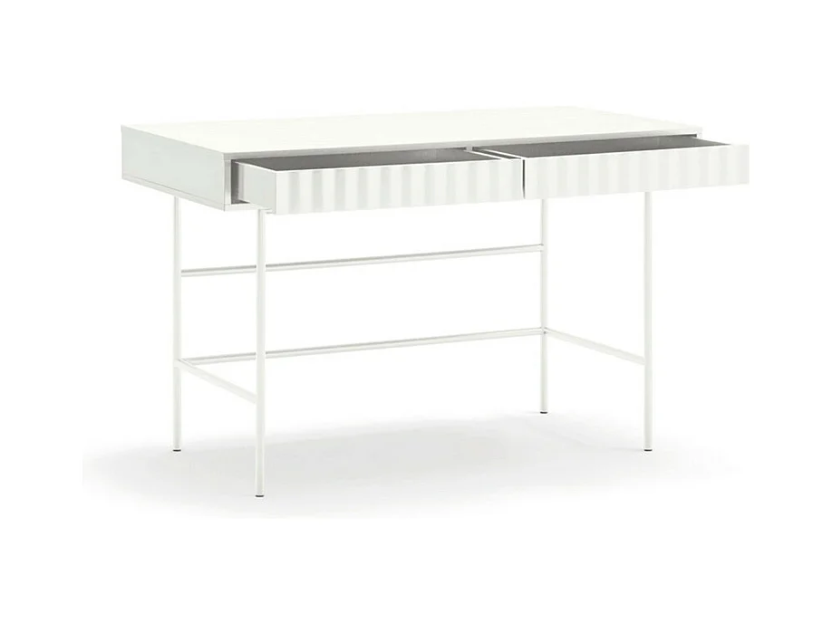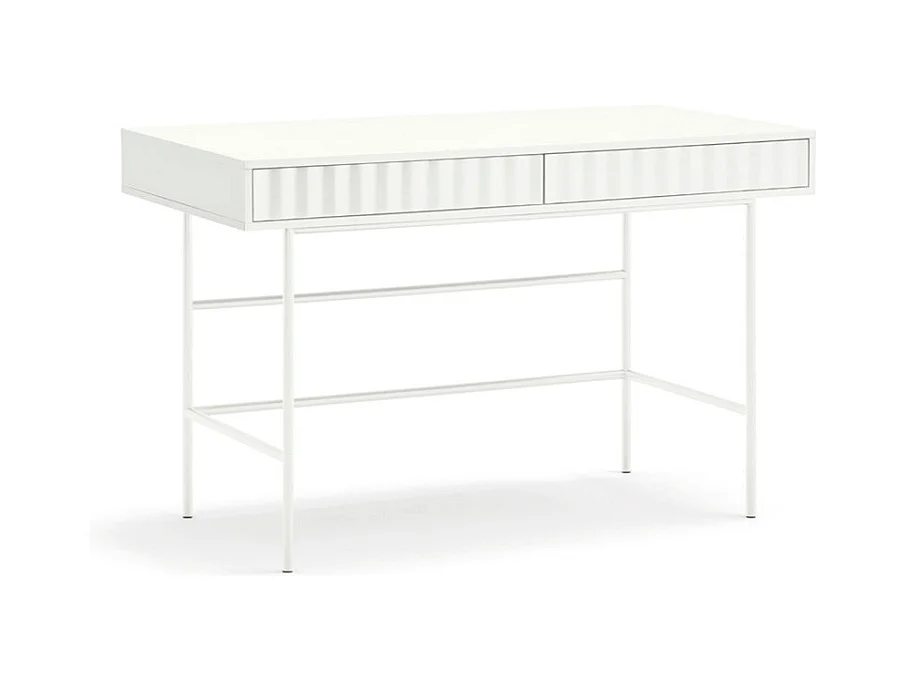 Sierra - Bureau 2 tiroirs en bois et métal L120cm - Blanc